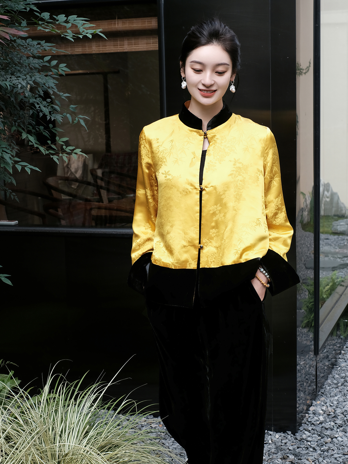 盛唐婧 |新中式丝绒微喇裤黑色
