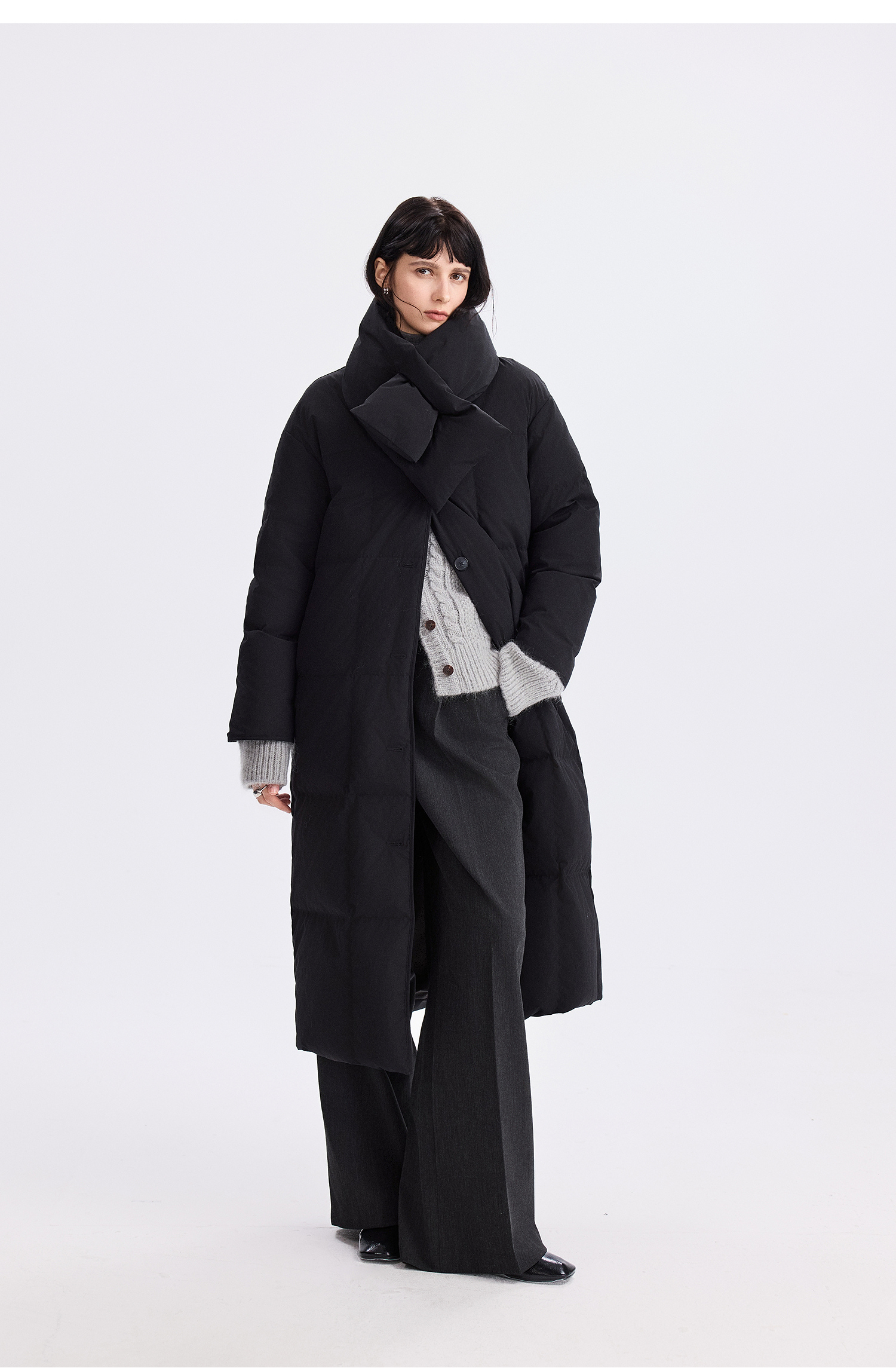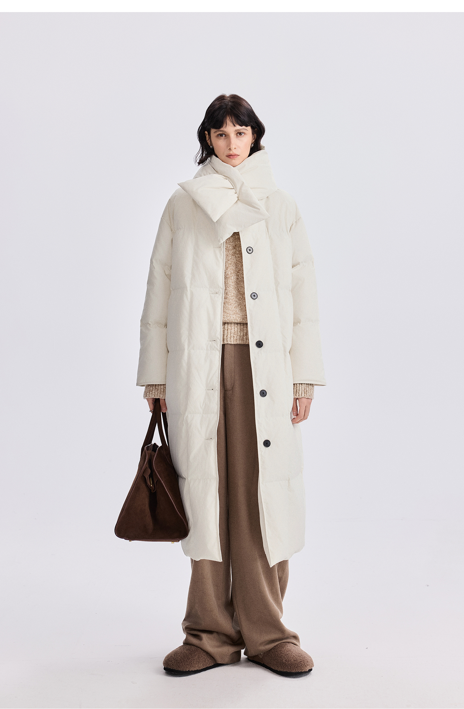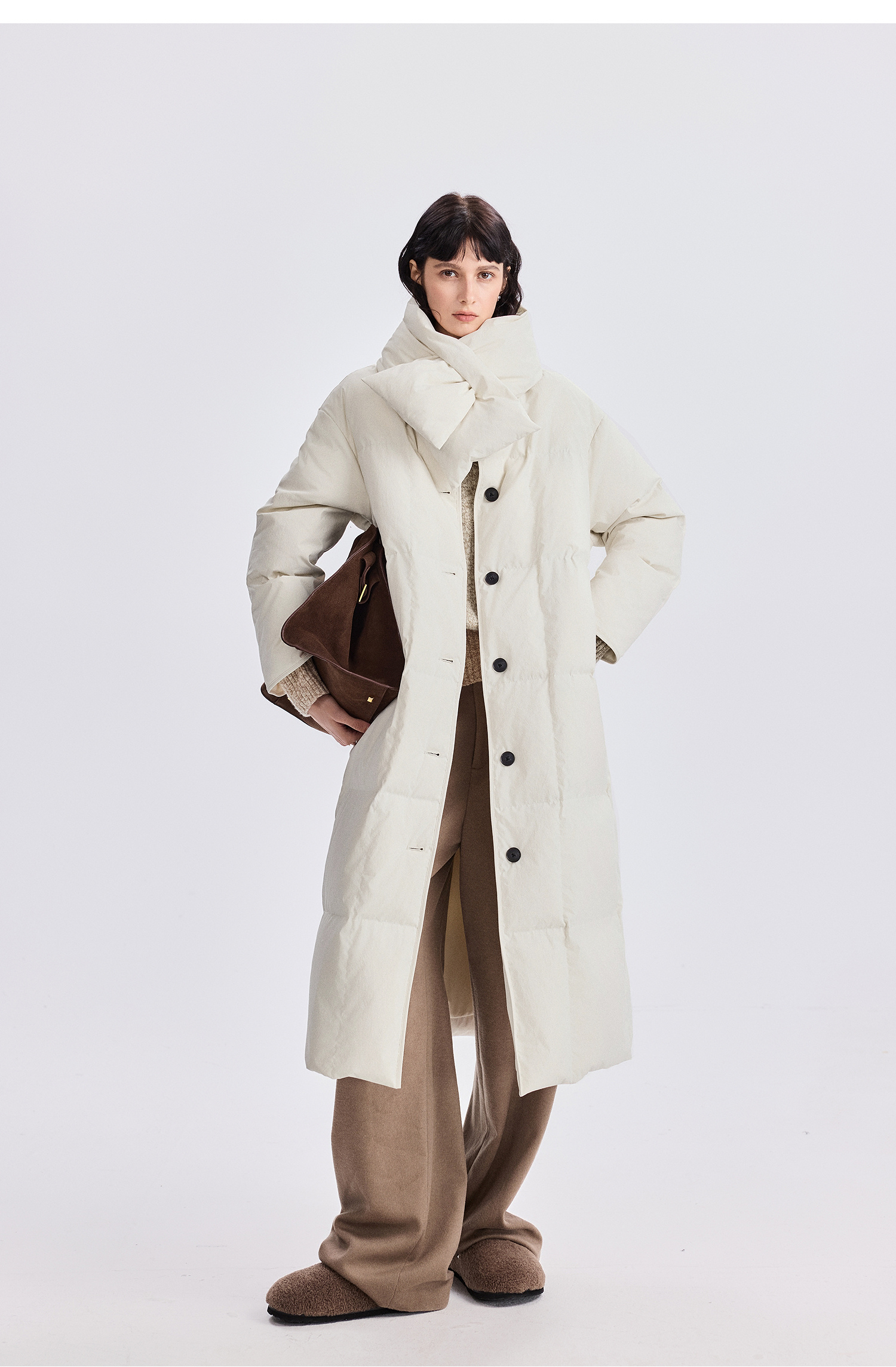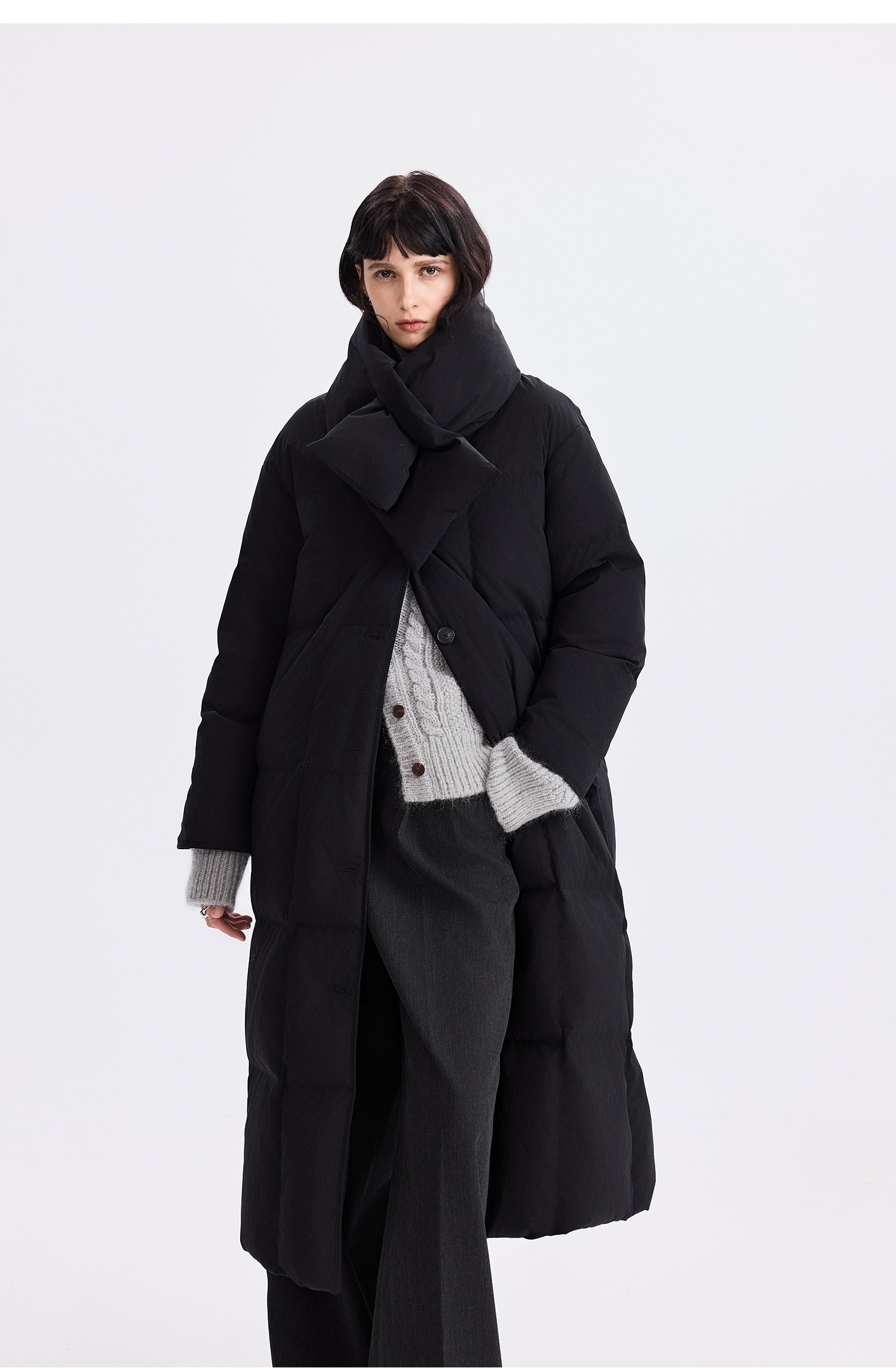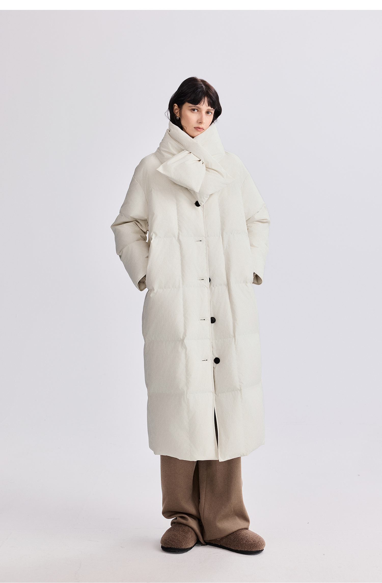 棉仓367615012-【90白鹅绒】长款方格羽绒服女25冬新款可拆卸围脖保暖外套