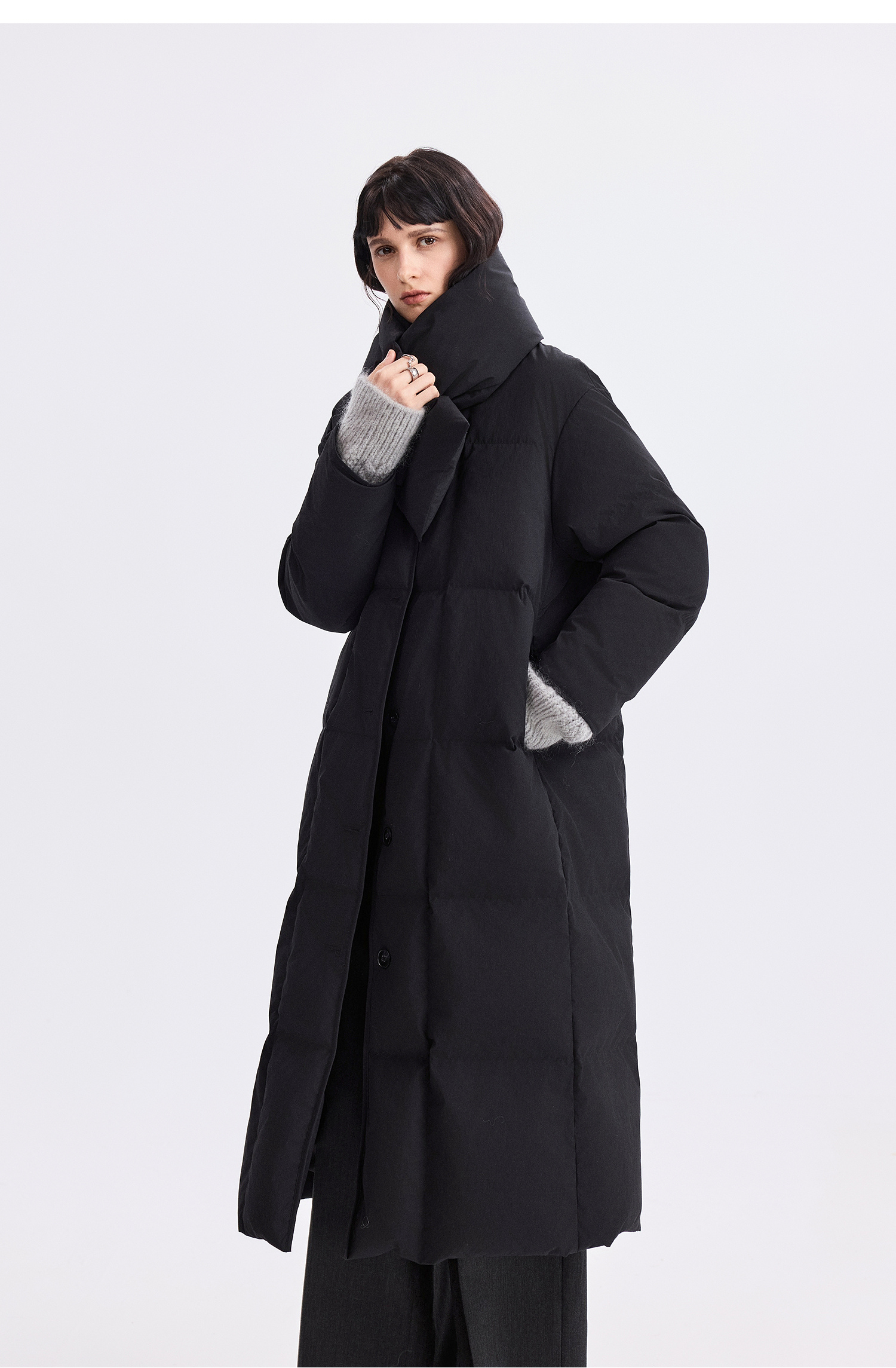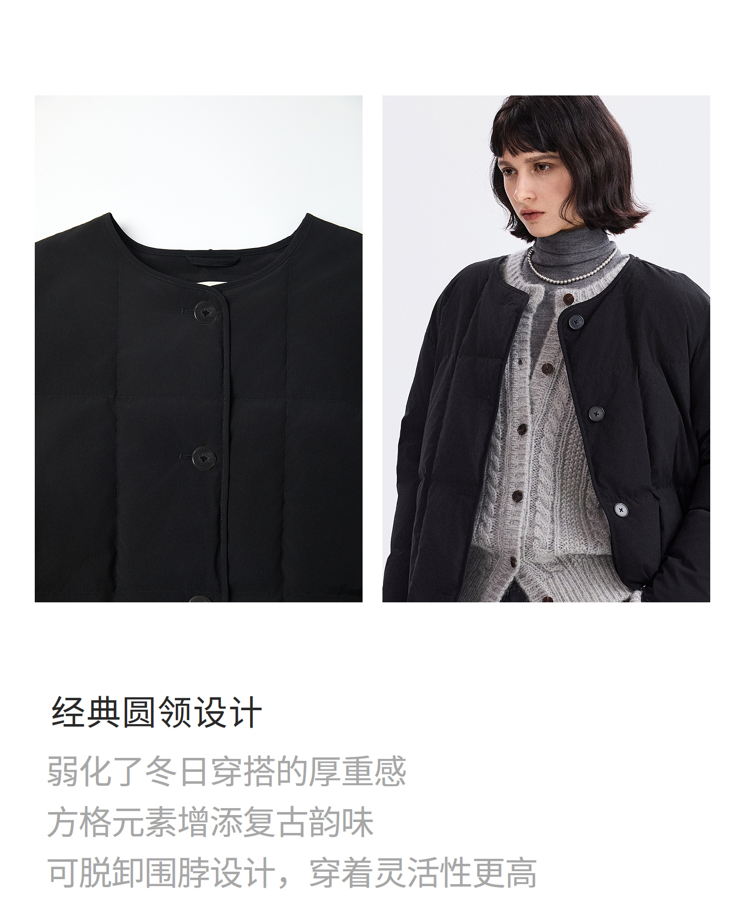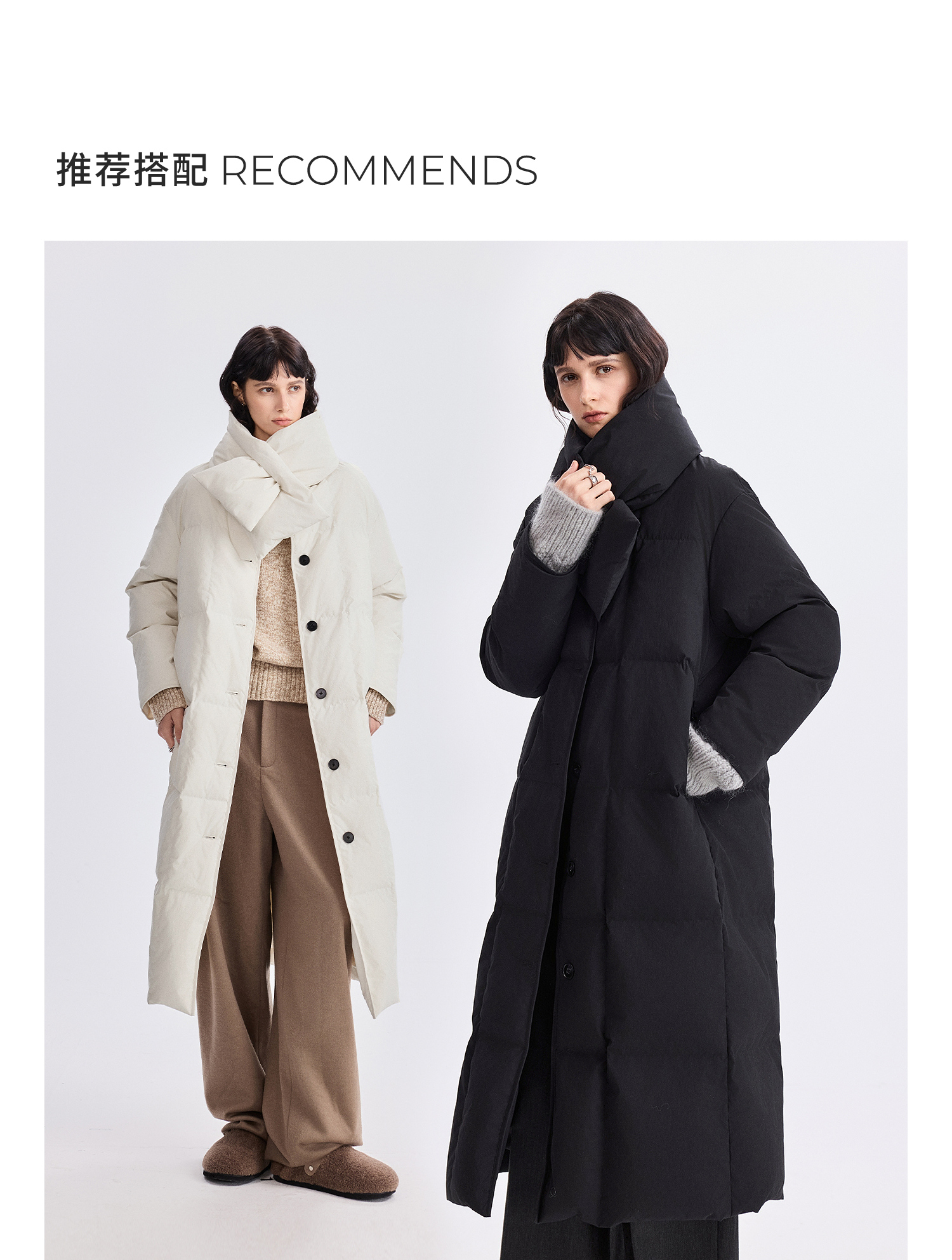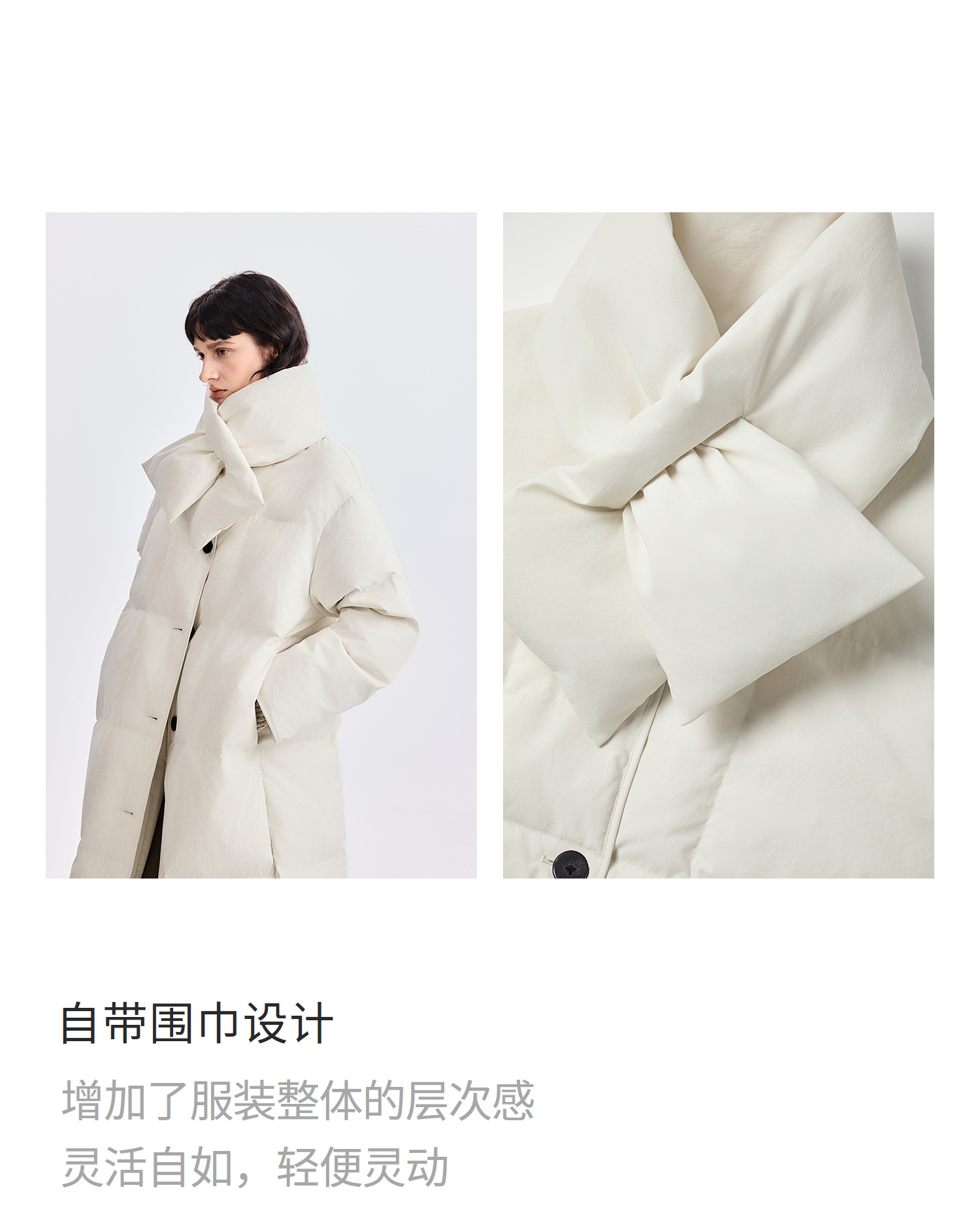 棉仓367615012-【90白鹅绒】长款方格羽绒服女25冬新款可拆卸围脖保暖外套