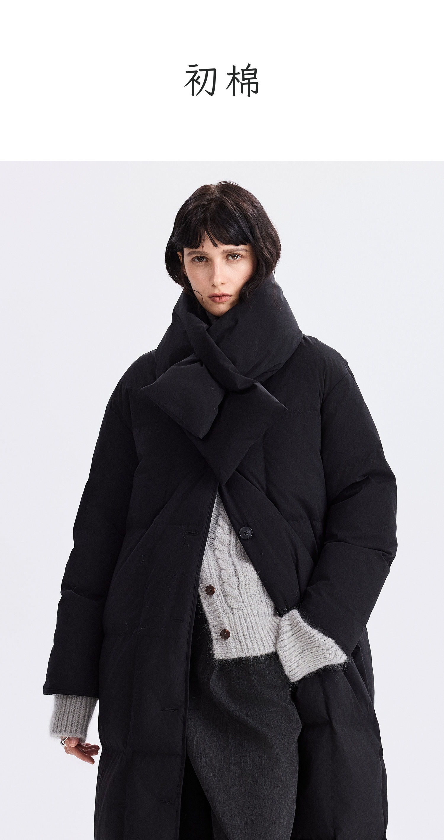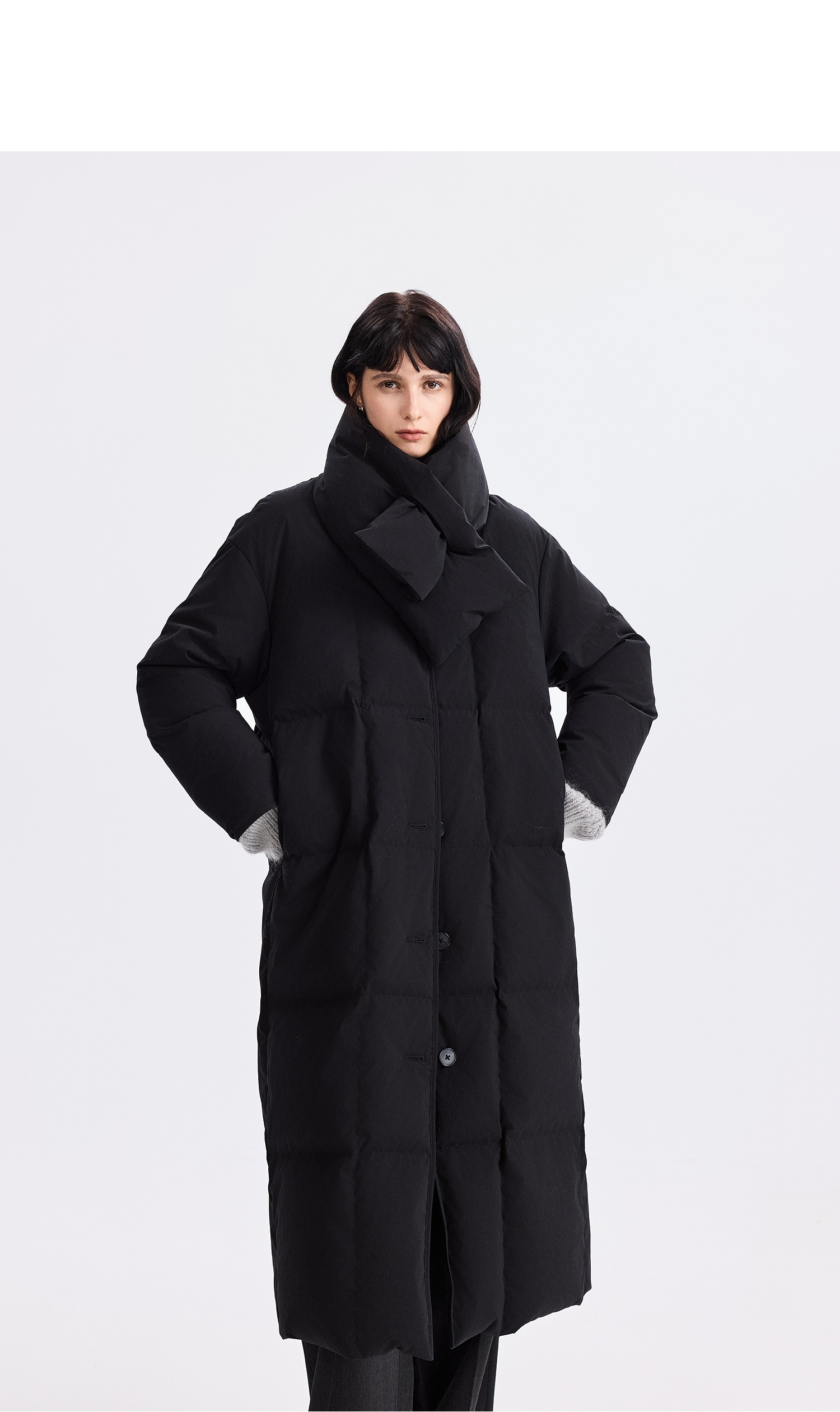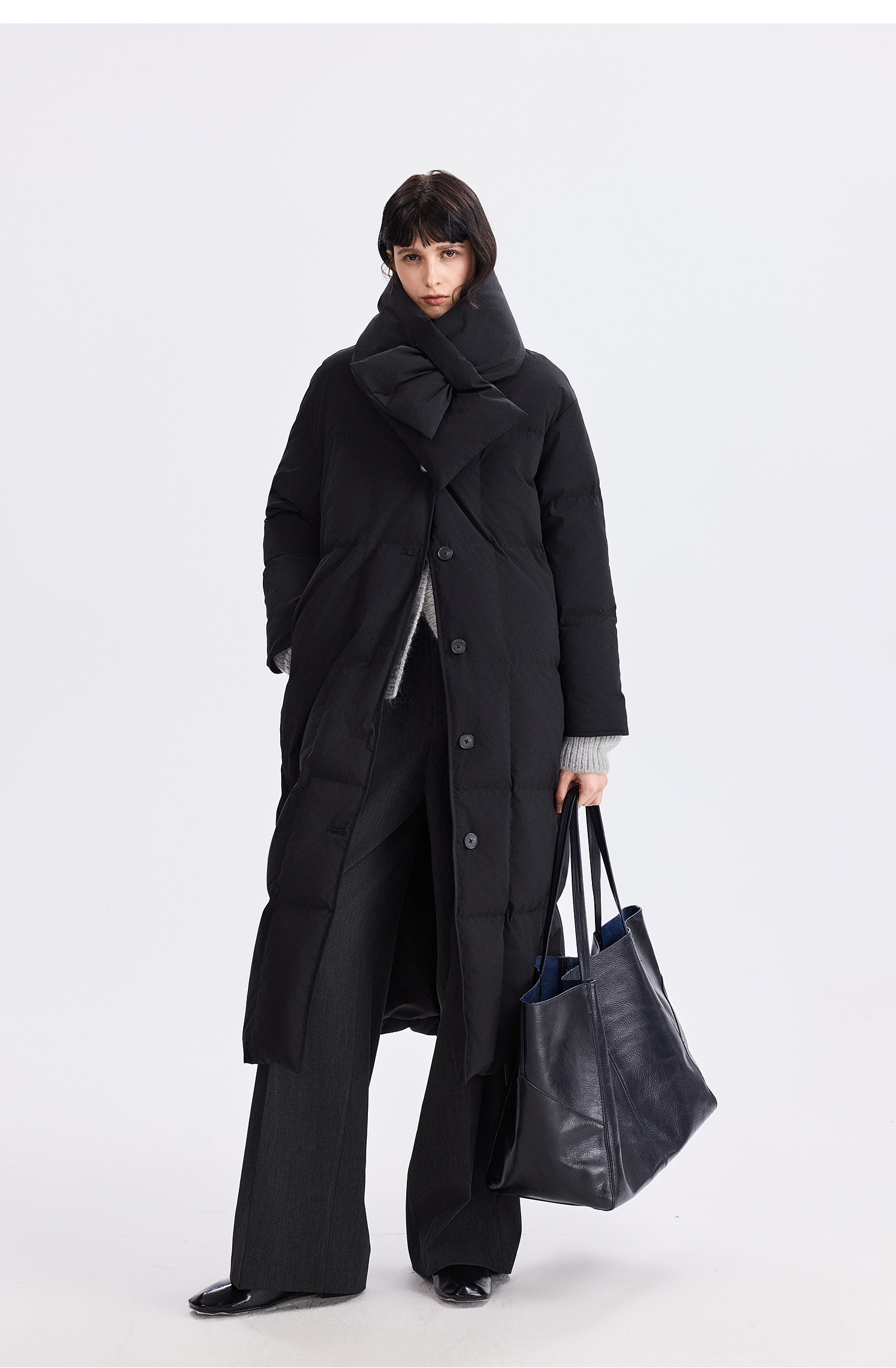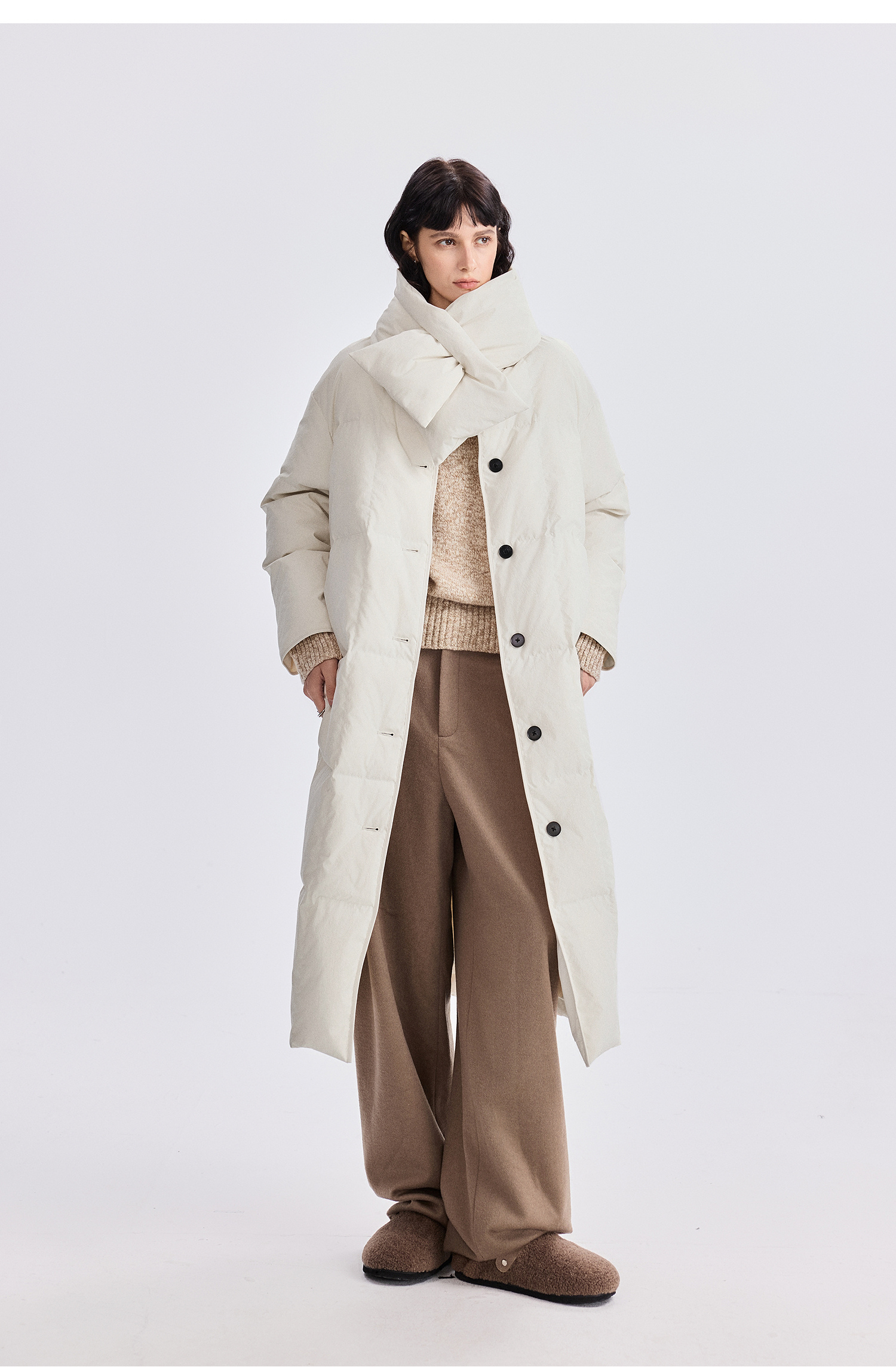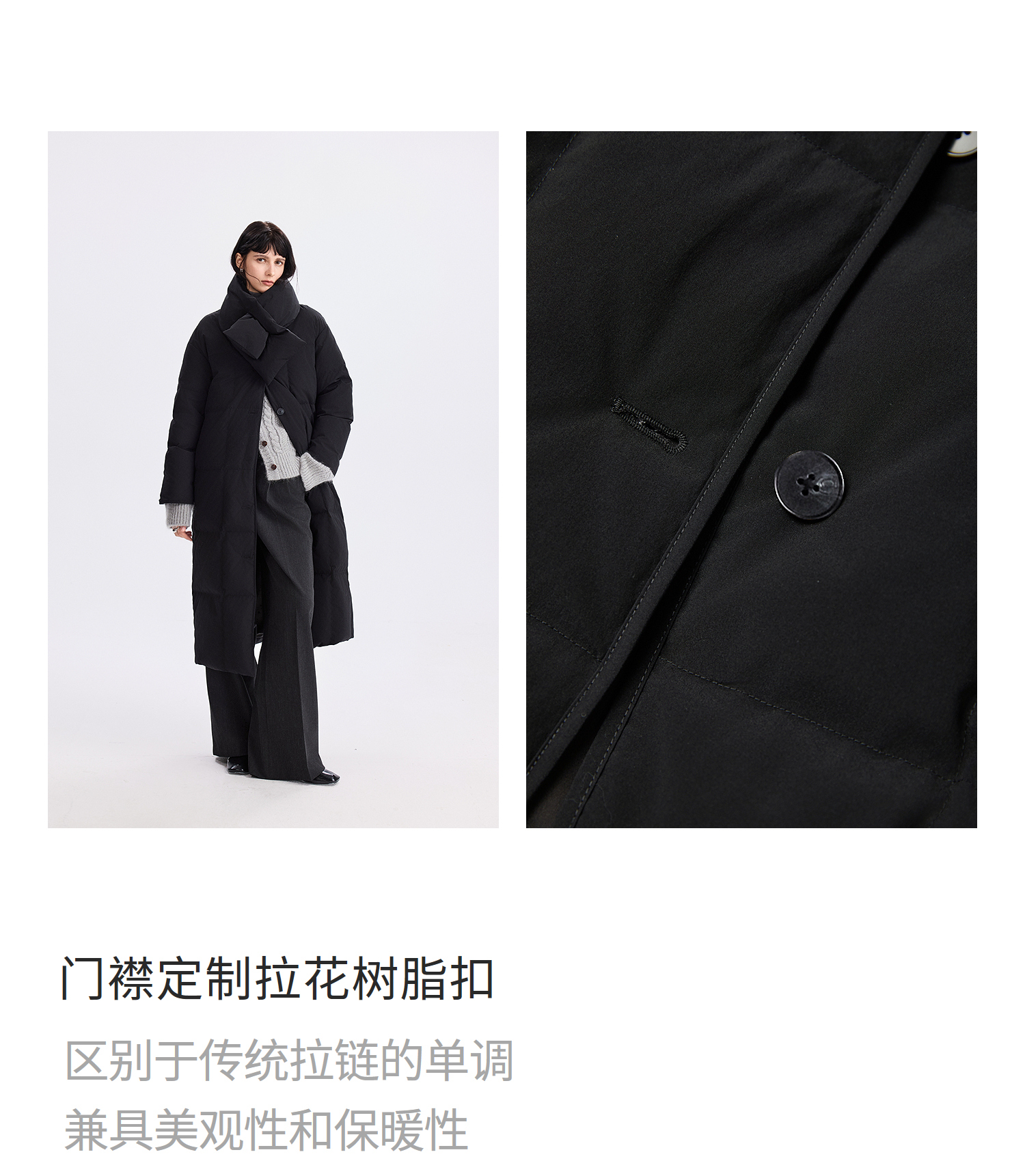 棉仓367615012-【90白鹅绒】长款方格羽绒服女25冬新款可拆卸围脖保暖外套