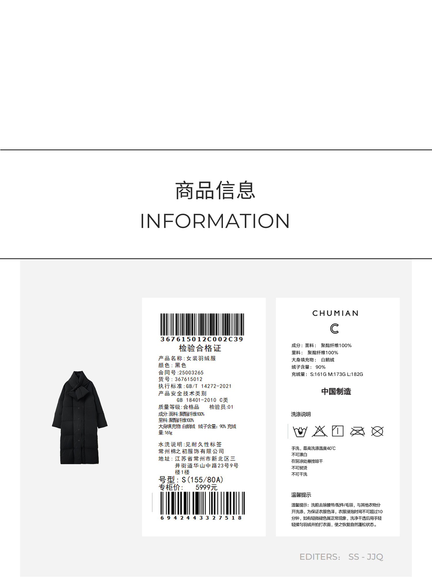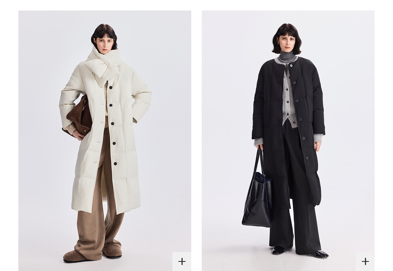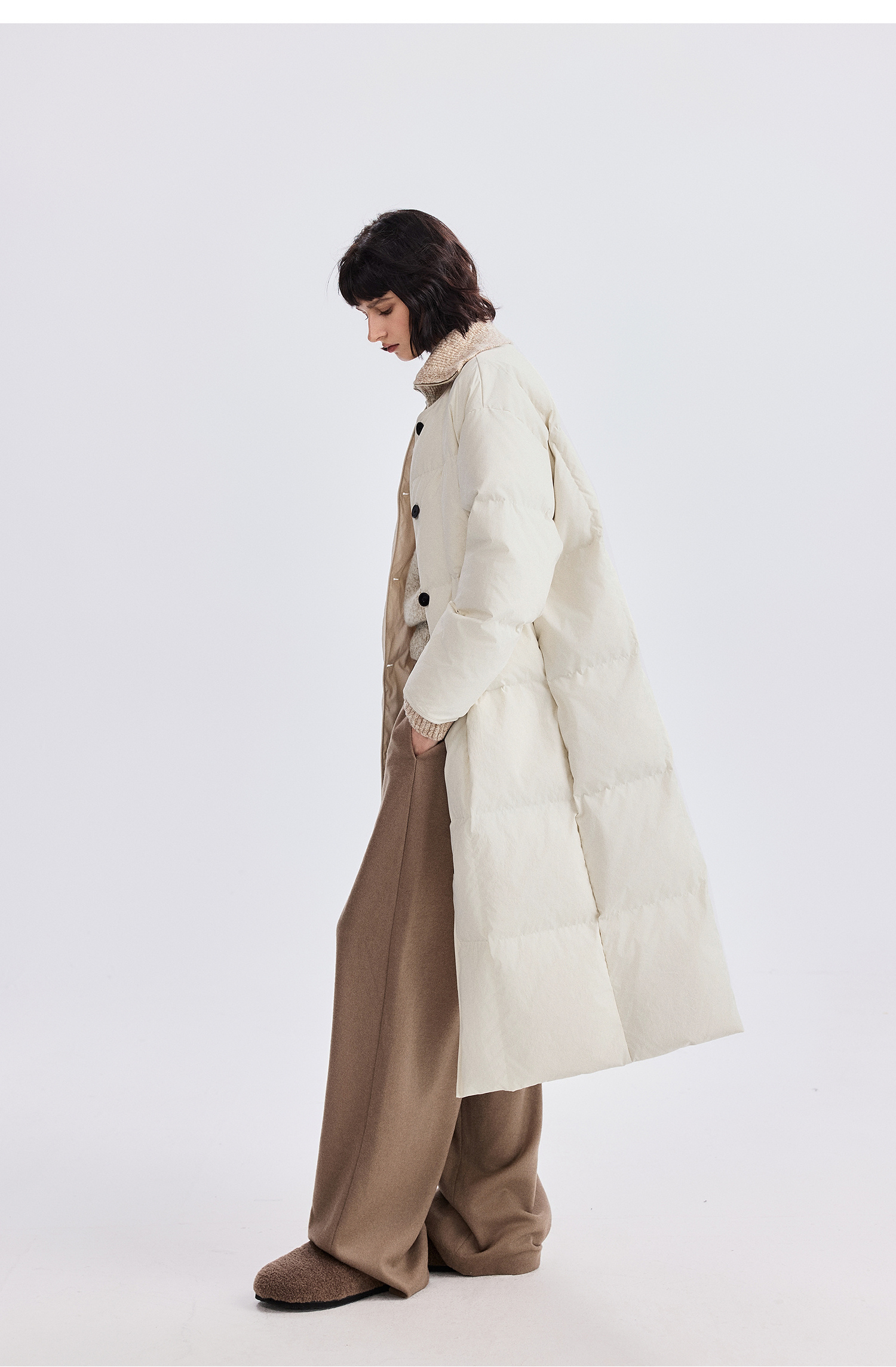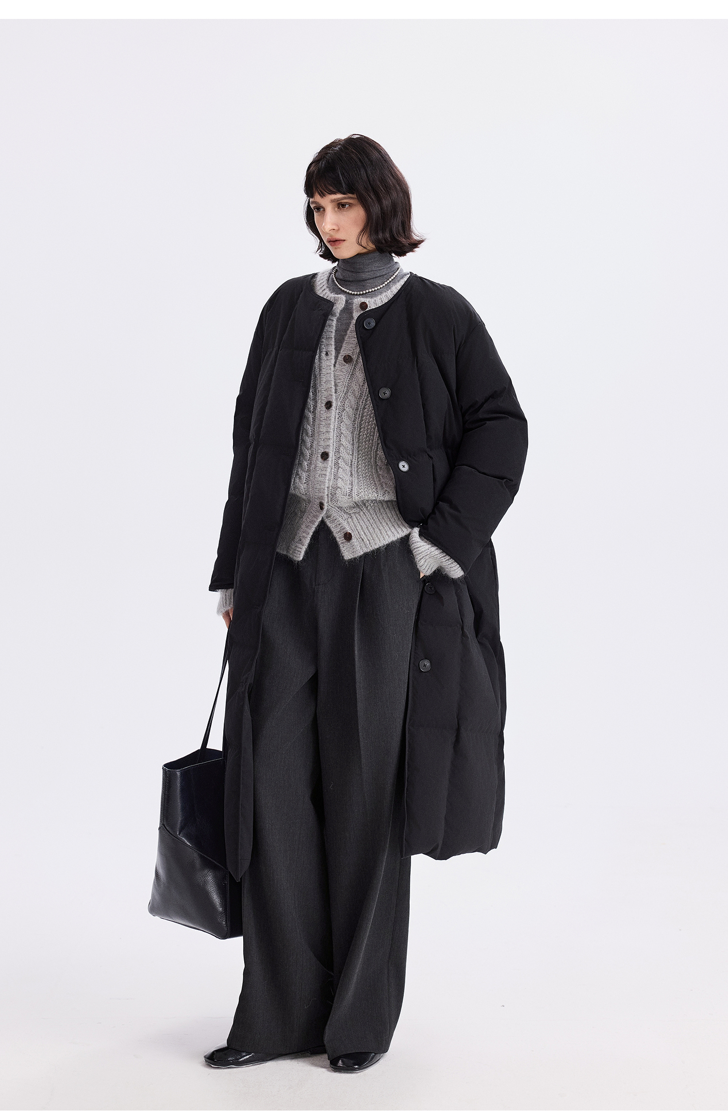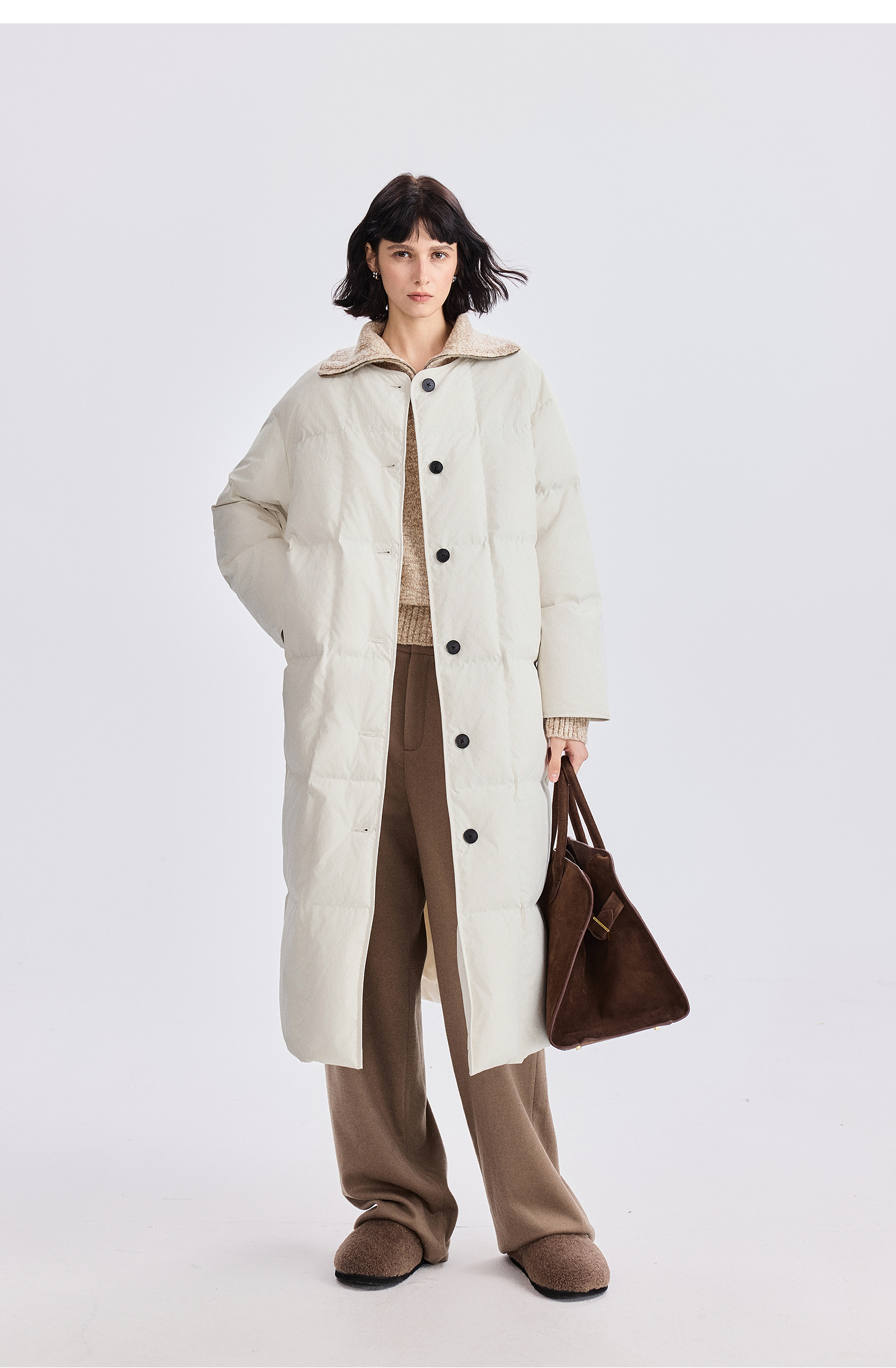 棉仓367615012-【90白鹅绒】长款方格羽绒服女25冬新款可拆卸围脖保暖外套