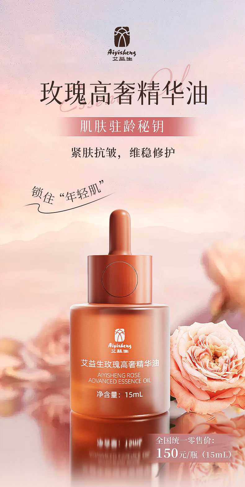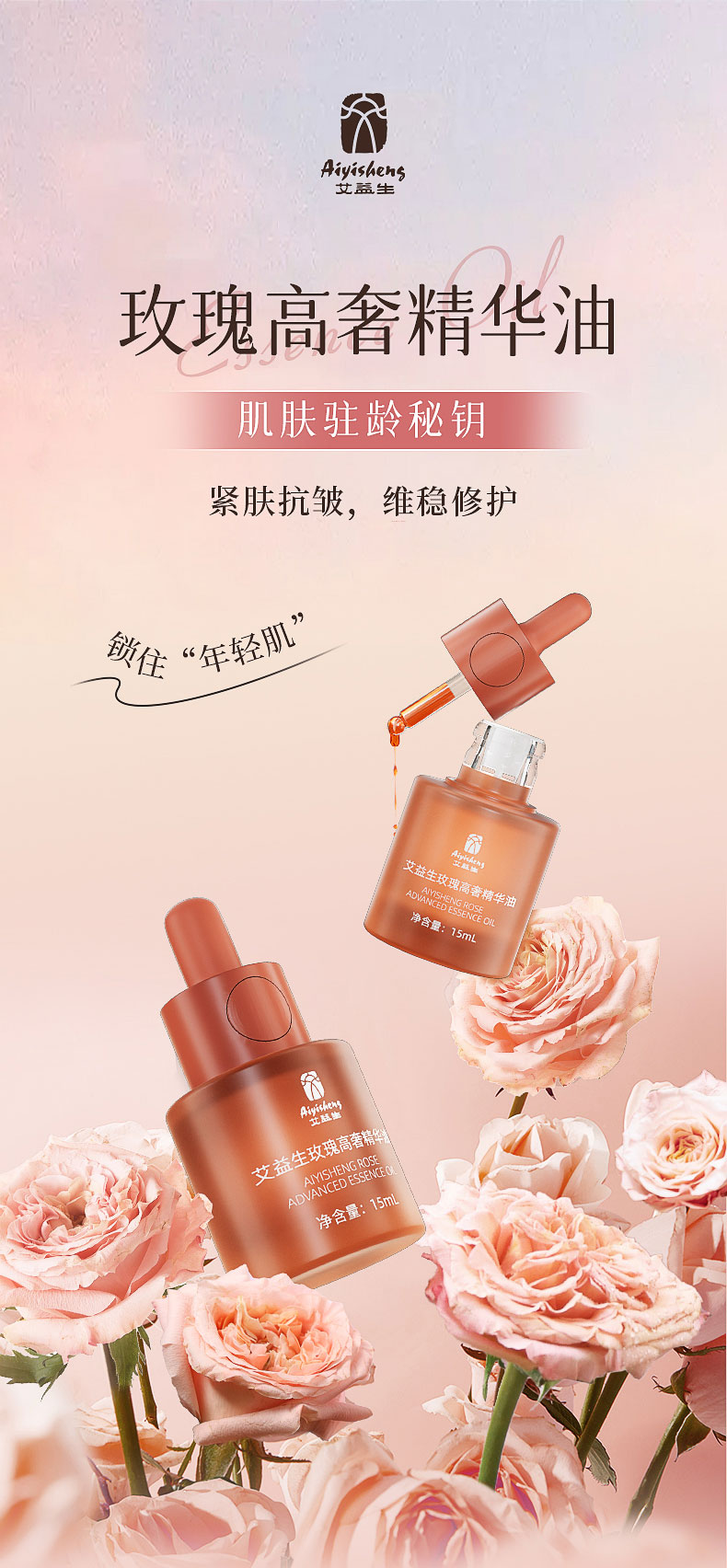 【玫瑰高奢精华油(15mL)】满满玫瑰精华,早晚护肤使用
