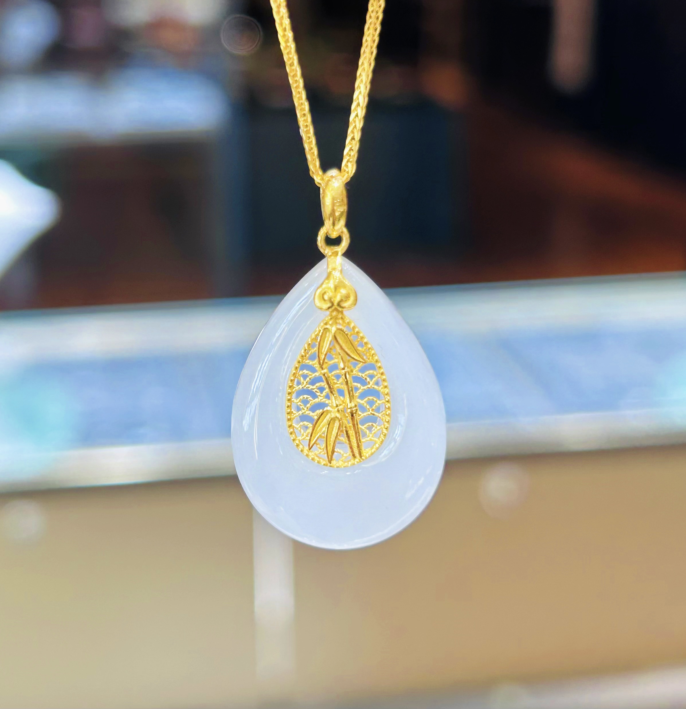 2楼老凤祥足金999镶和田玉挂件 吊牌价4557 活动价3666(不含项链)