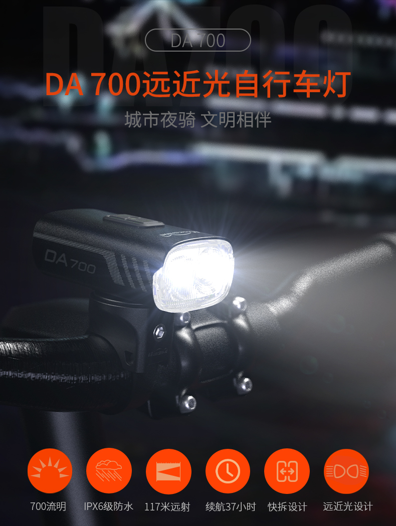 迈极炫DA700远近光自行车灯夜骑公路骑行车灯山地车灯单车灯