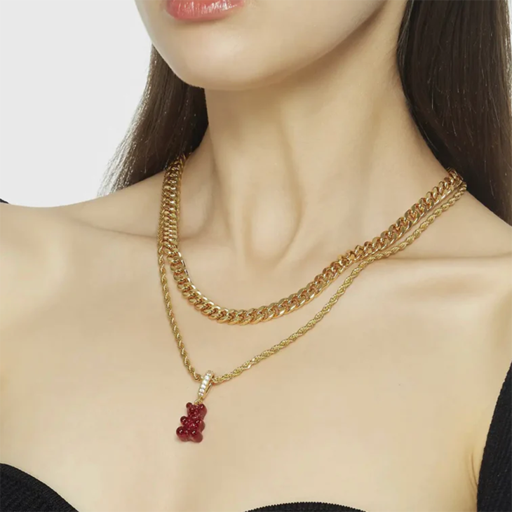 北京仓|CRYSTAL HAZE-Nostalgia Bear-pave-红丝绒色小熊 吊坠(金色环扣)[挪威设计师]