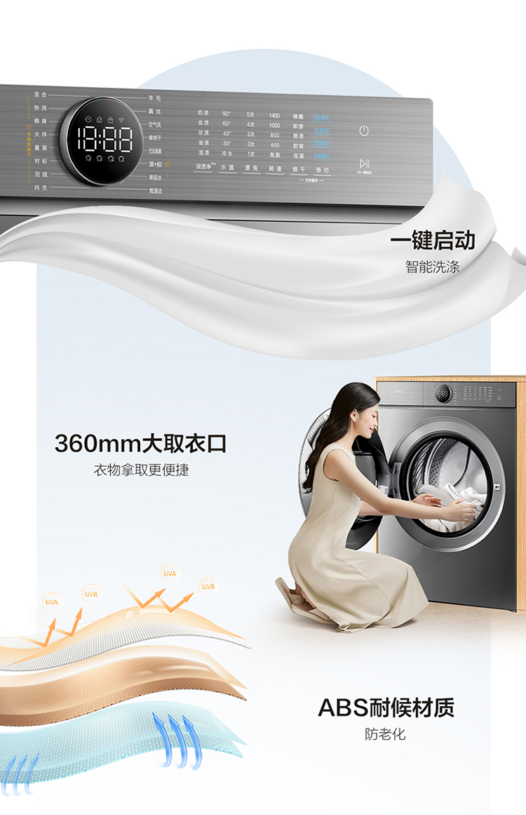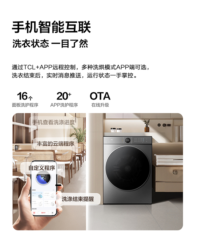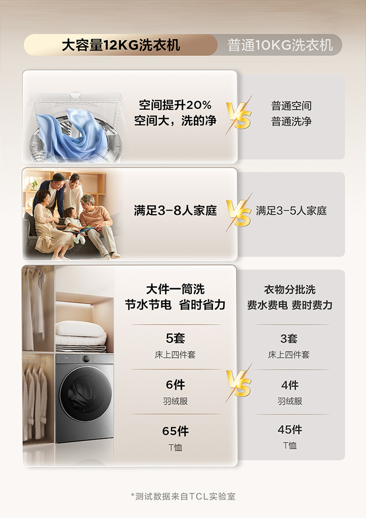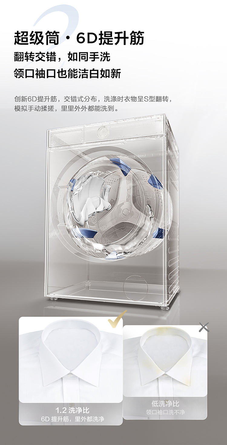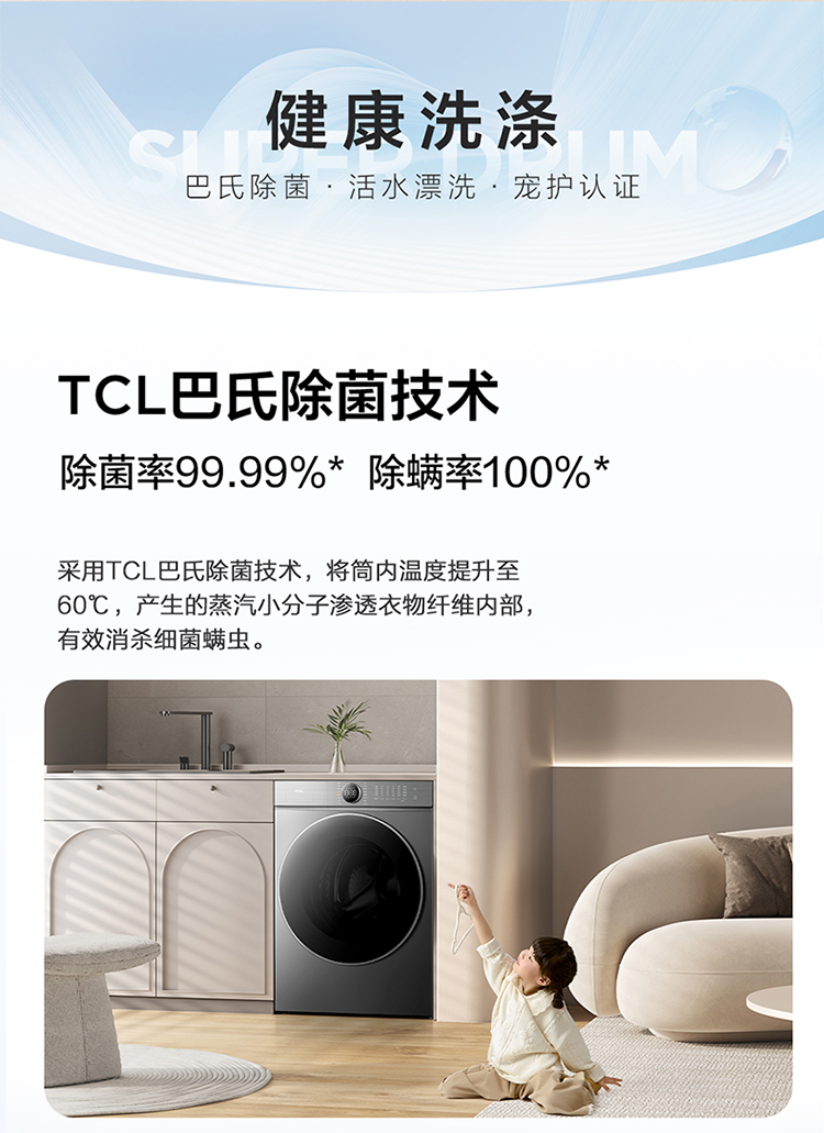 【TCL洗衣机】 TCL 12公斤超级筒T7H Pro大容量洗烘一体机 1.2洗净比 超净泡精华洗 G120T7H-HDIS
