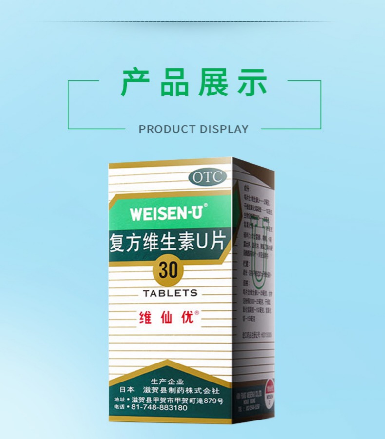 维仙优日本胃仙U复方维生素U片30片胃酸胃痛进口胃药胃仙优
