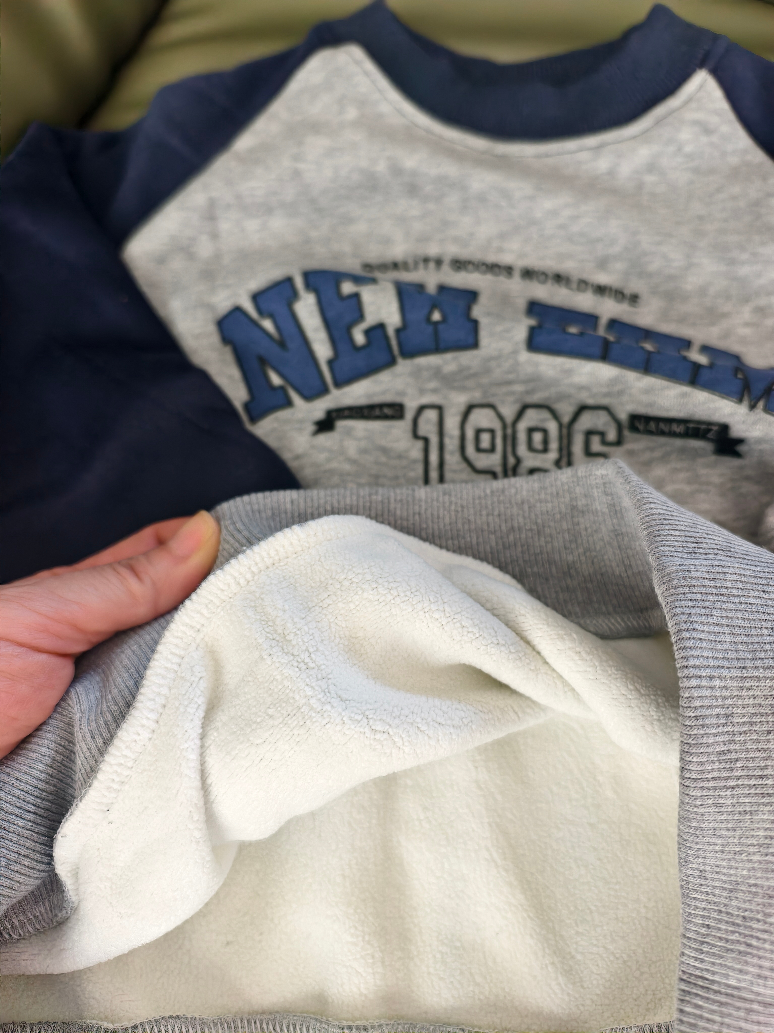 这款加绒卫衣采用一体绒,孩子怎么踢怎么造都非常服帖舒适。