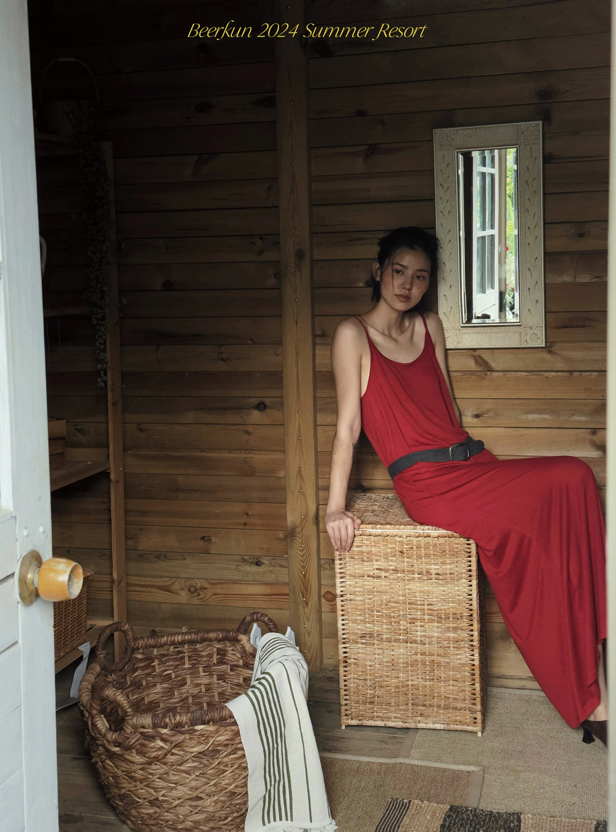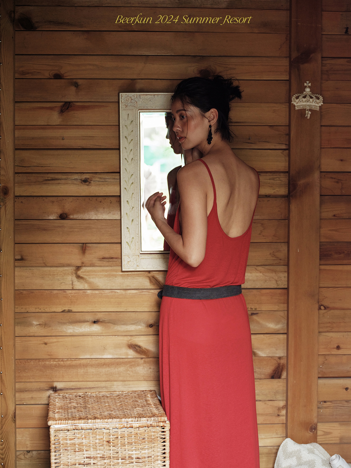 [特价]度假吊带露背连衣裙 红色/蓝色 吊带裙(预售10天)