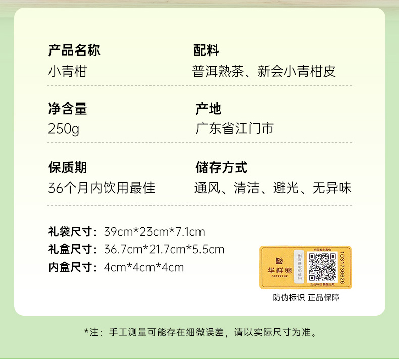 华祥苑-头采小青柑250g柑普茶礼盒云南勐海普洱熟茶