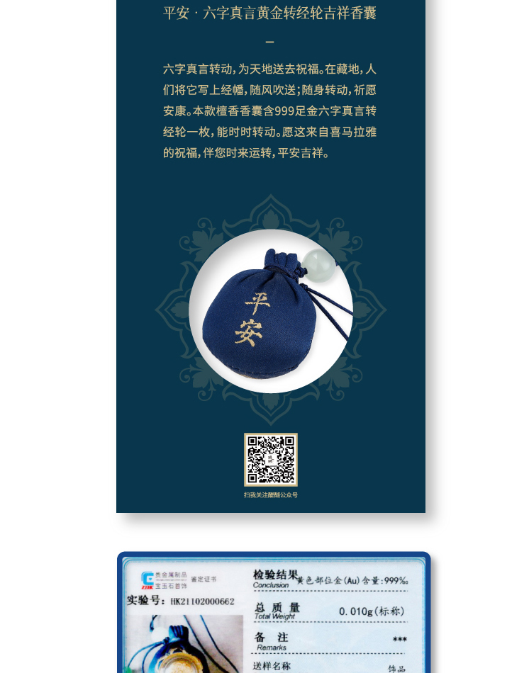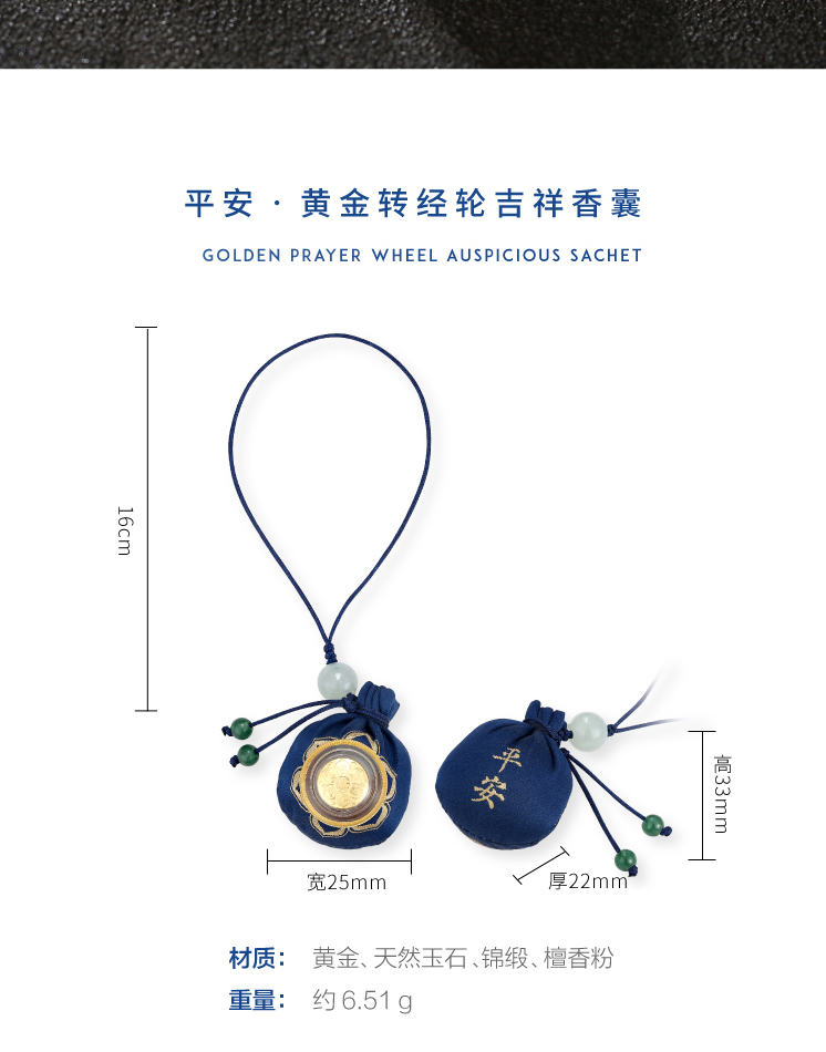 醍醐 平安 六字真言黄金转经轮檀香香囊随身挂饰 车挂 手机挂饰