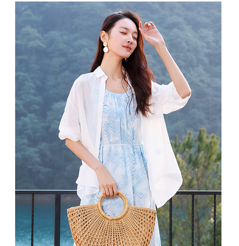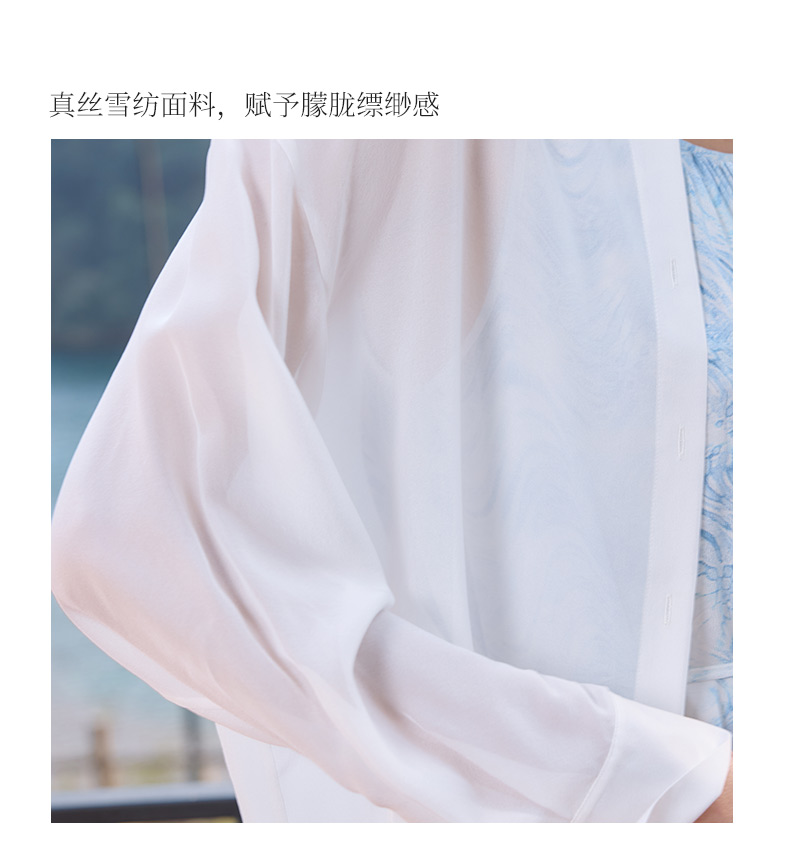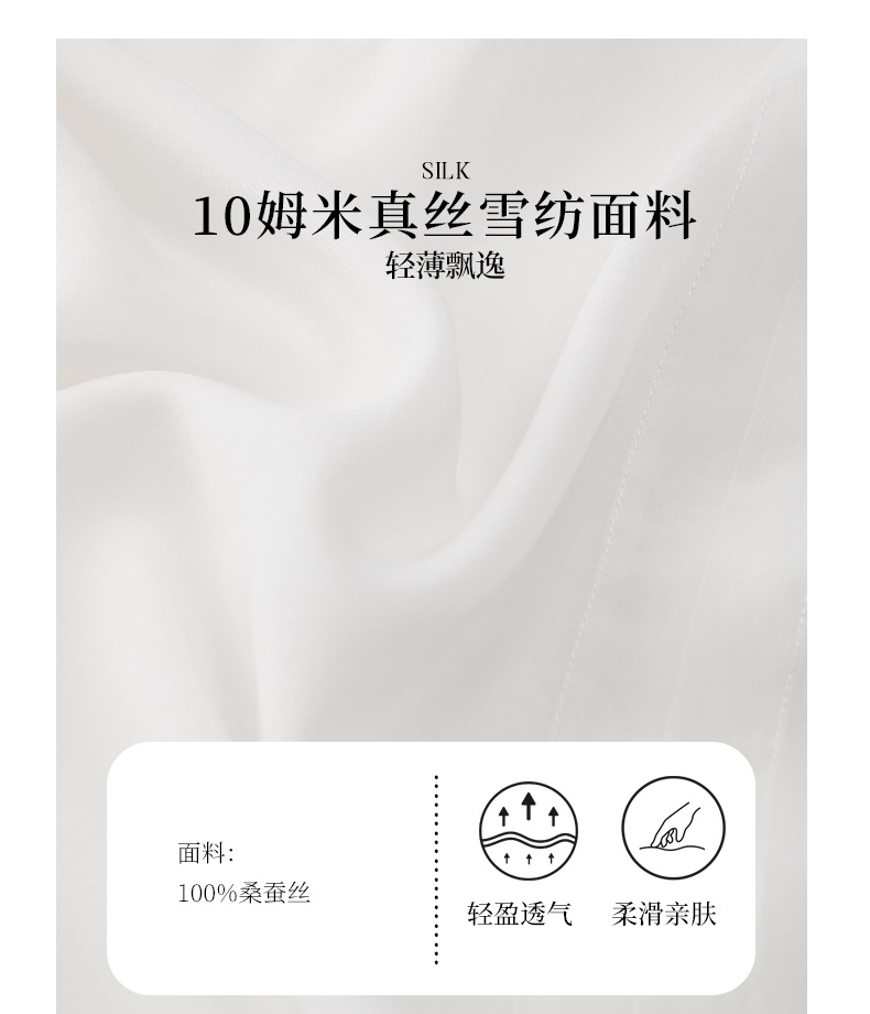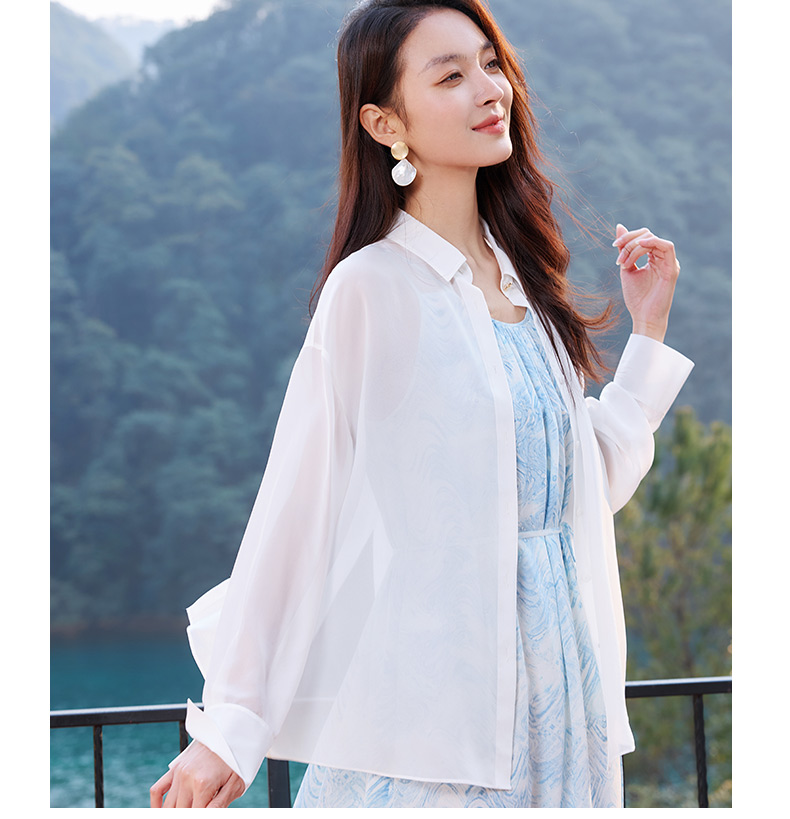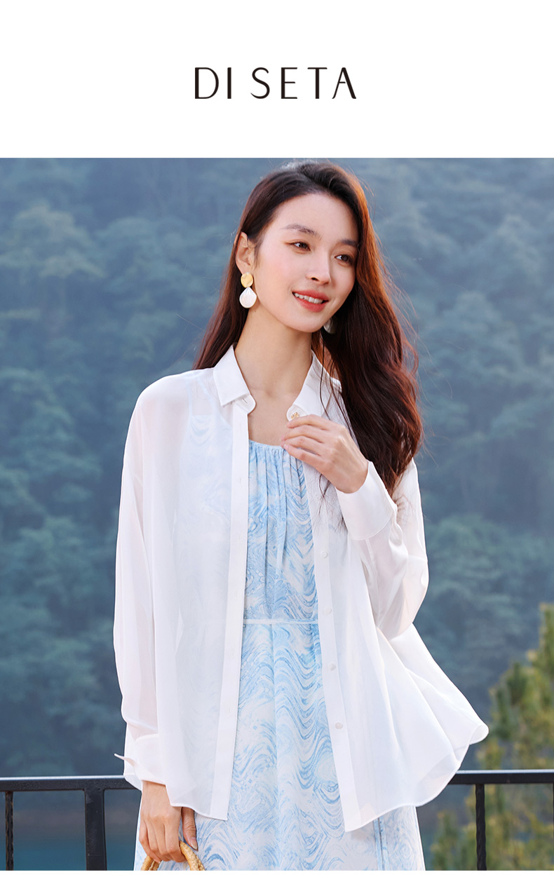 玳莎真丝雪纺衬衫女2025年夏季新款轻薄透气宽松100%桑蚕丝上衣 FB31306