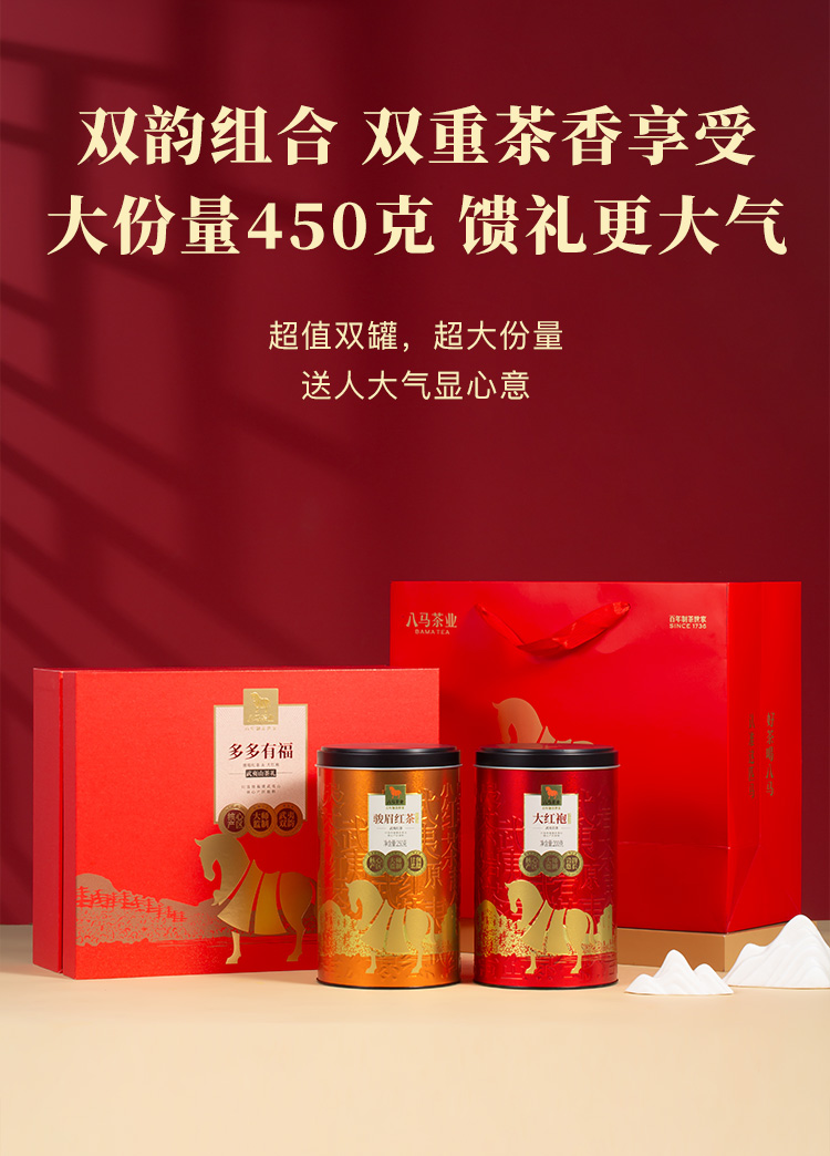 八马茶业 | 多多有福·武夷山大红袍骏眉红茶茶礼组合450g