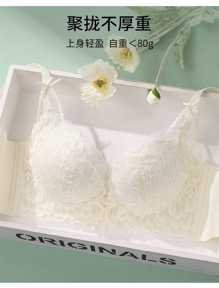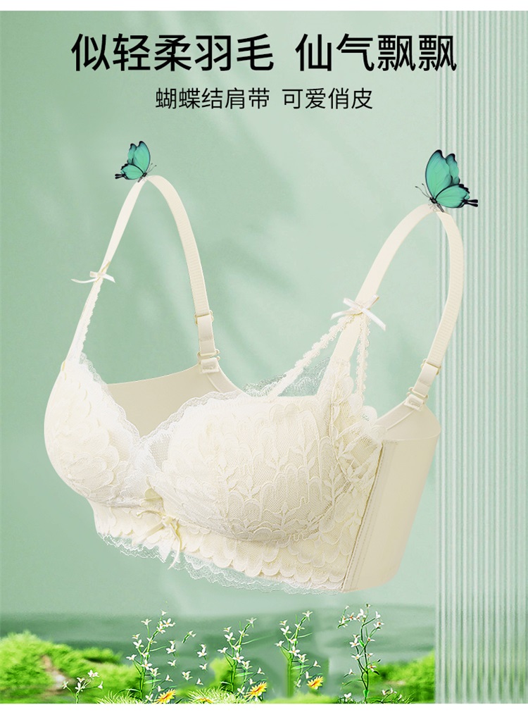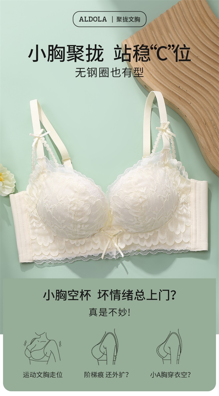 雅黛丽内衣女轻羽蕾丝小胸聚拢显大收副乳防下垂文胸无钢圈胸罩女士文胸