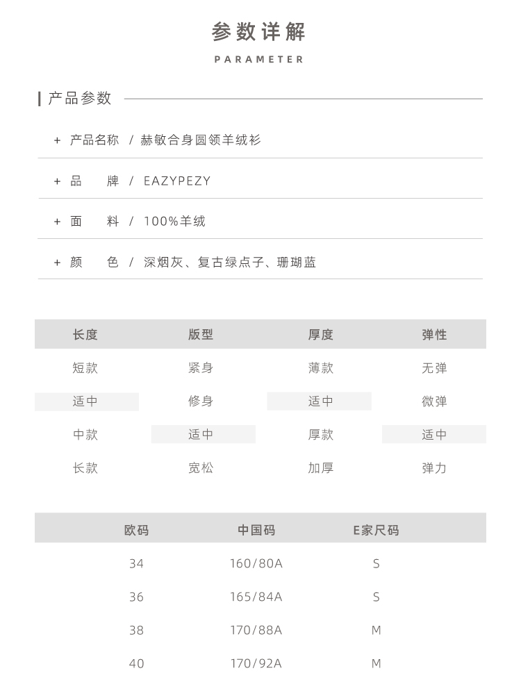 EAZYPEZY 2024AW 赫敏合身圆领羊绒衫