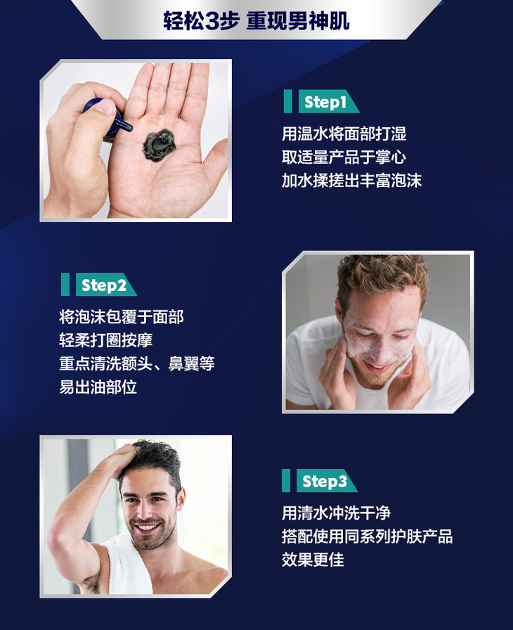 【洗面奶】男士洗面奶净油精华控油抗痘洁面炭泥补水保湿男士洁面护肤