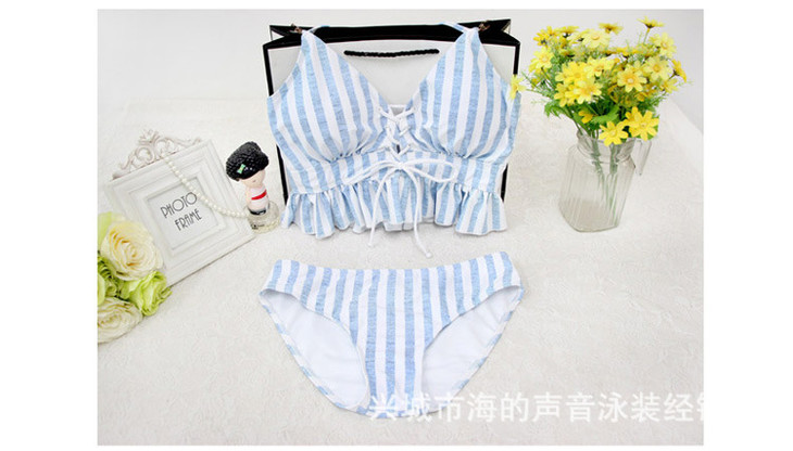 【泳衣】*性感牛仔条纹平角比基尼三件套泳衣