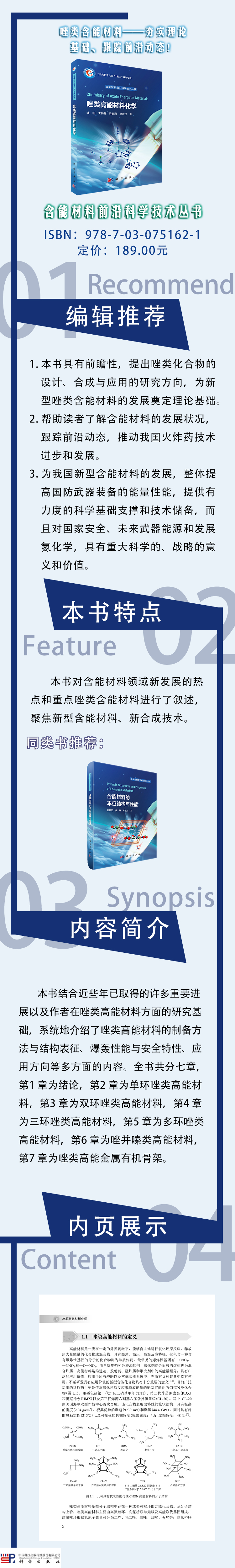 本书结合近些年已取得的许多重要进展以及作者在唑类高能材料方面的研究基础,系统地介绍了唑类高能材料的制备方法与结构表征、爆轰性能与安全特性、应用方向等多方面的内容。全书共分七章,第1章为绪论,第2章为单环唑类高能材料,第3章为双环唑类高能材料,第4章为三环唑类高能材料,第5章为多环唑类高能材料,第6章为唑并嗪类高能材料,第7章为唑类高能金属有机骨架。