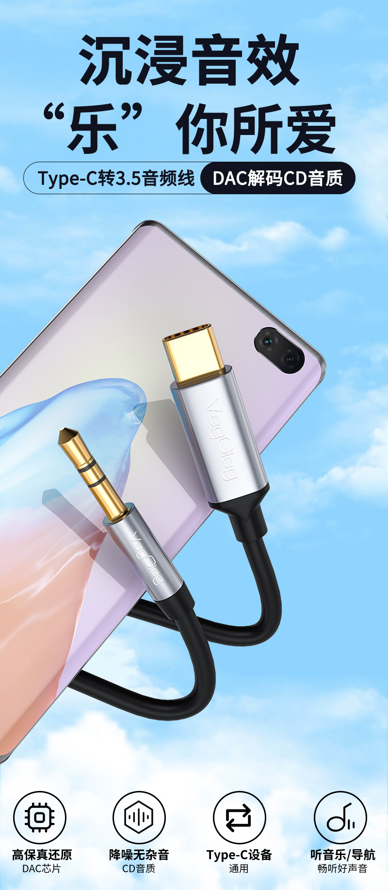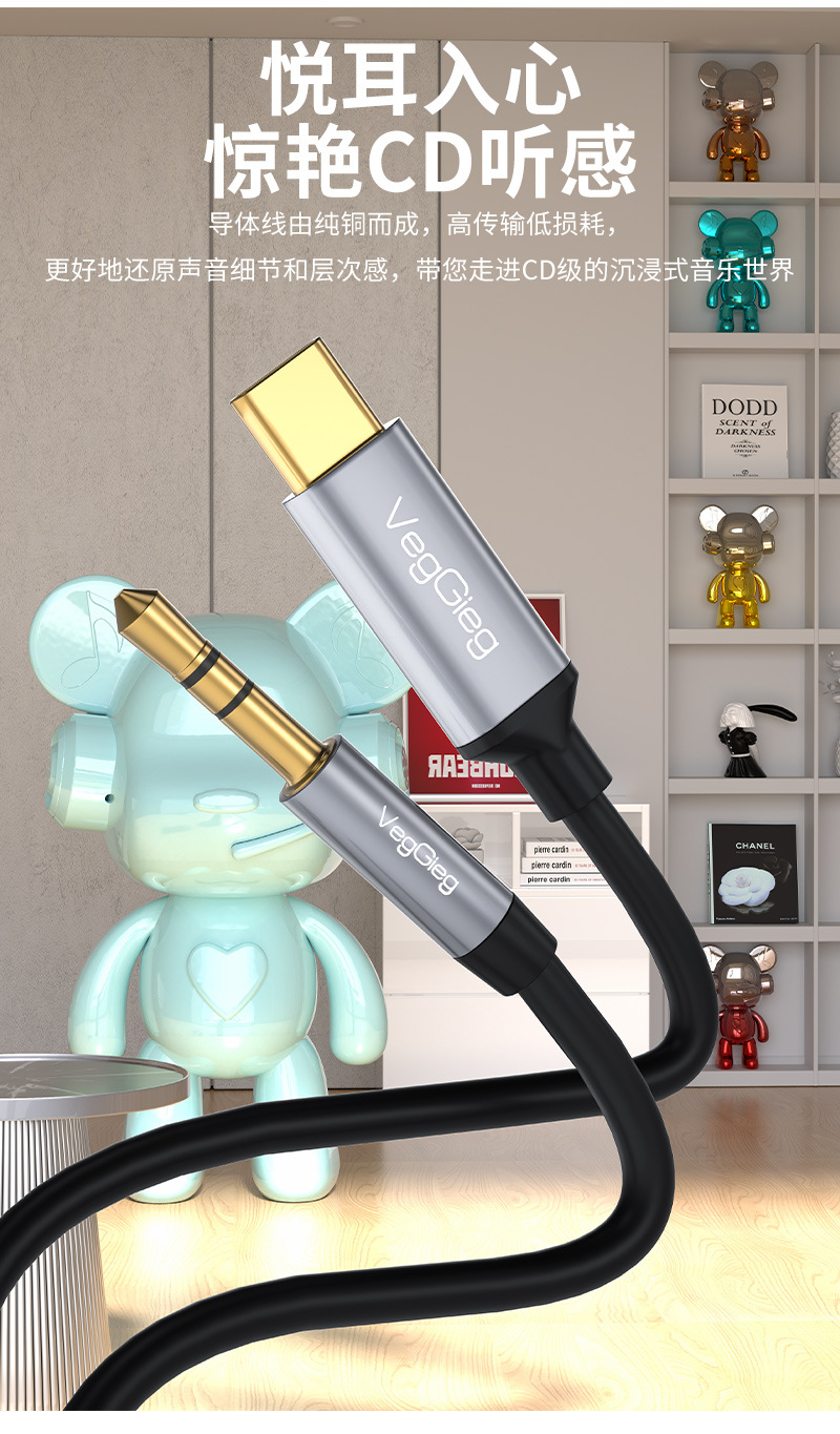 严选【type-C转双莲花线1.5米】音频线手机转车载音箱无损音质AUX接口转接线1根