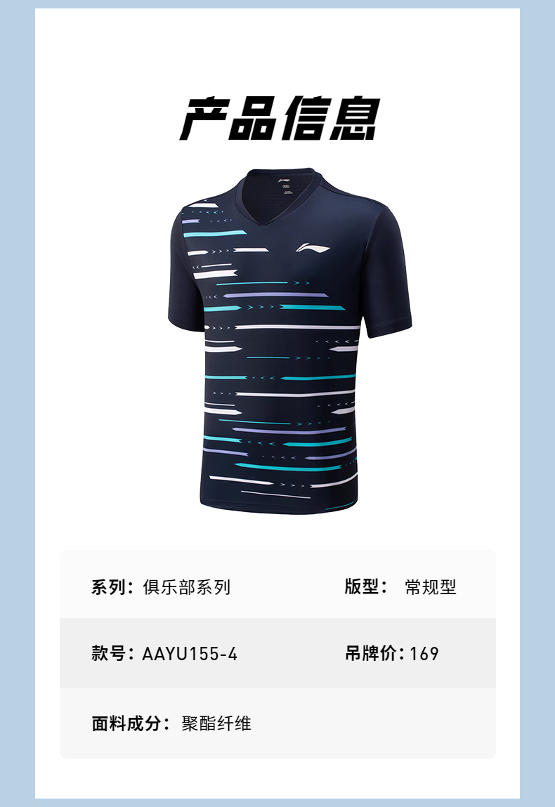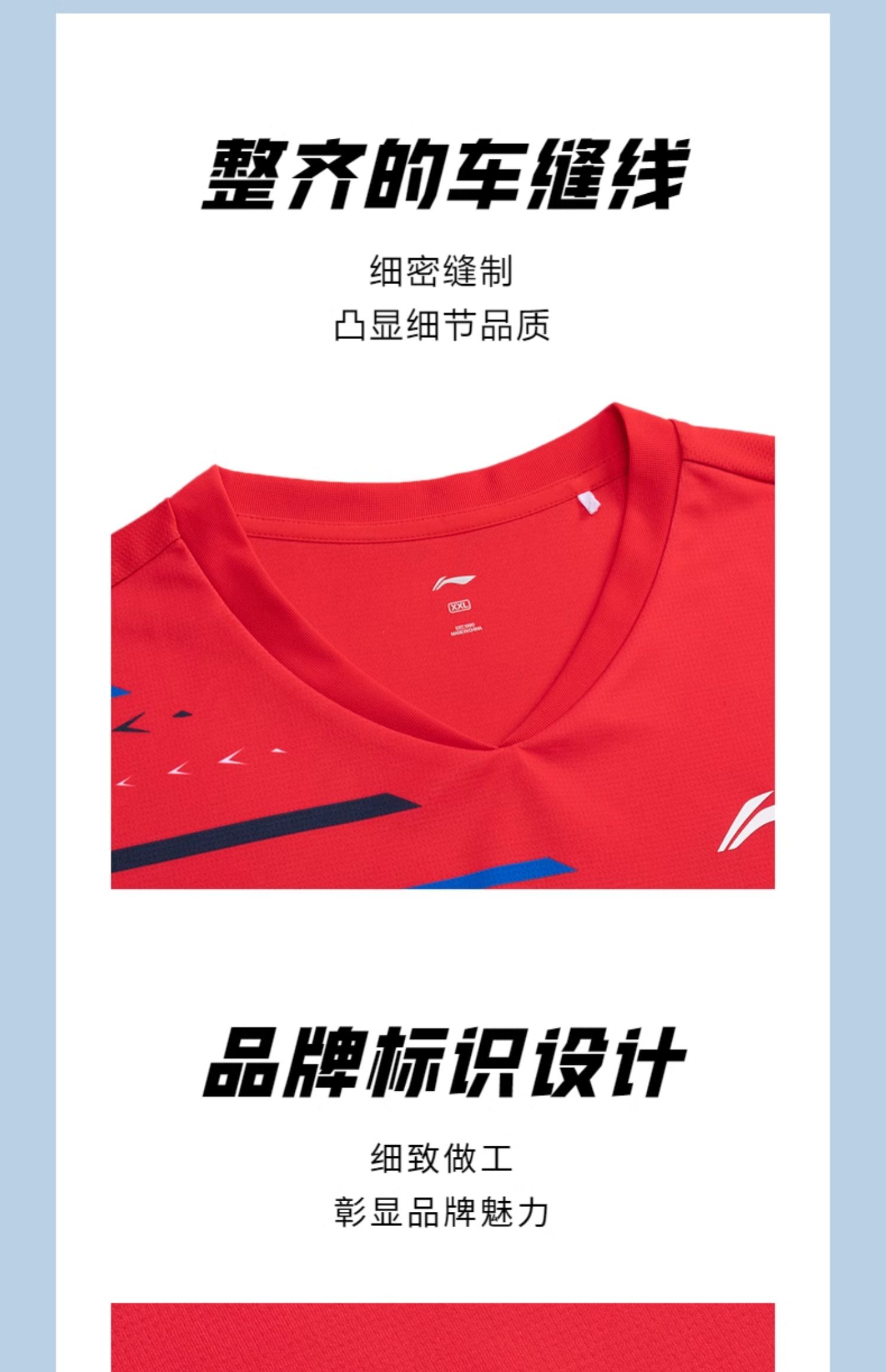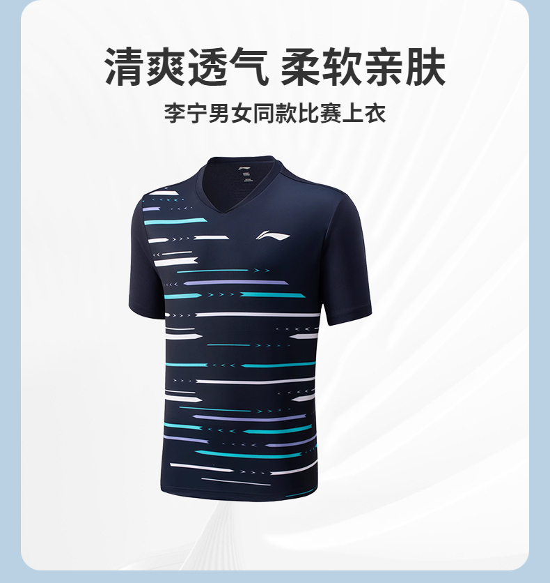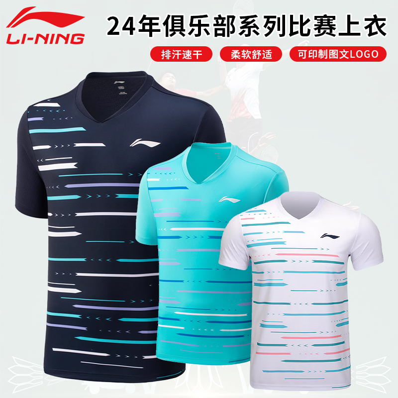 李宁 羽毛球服俱乐部比赛速干短袖 男女同款 AAYU155