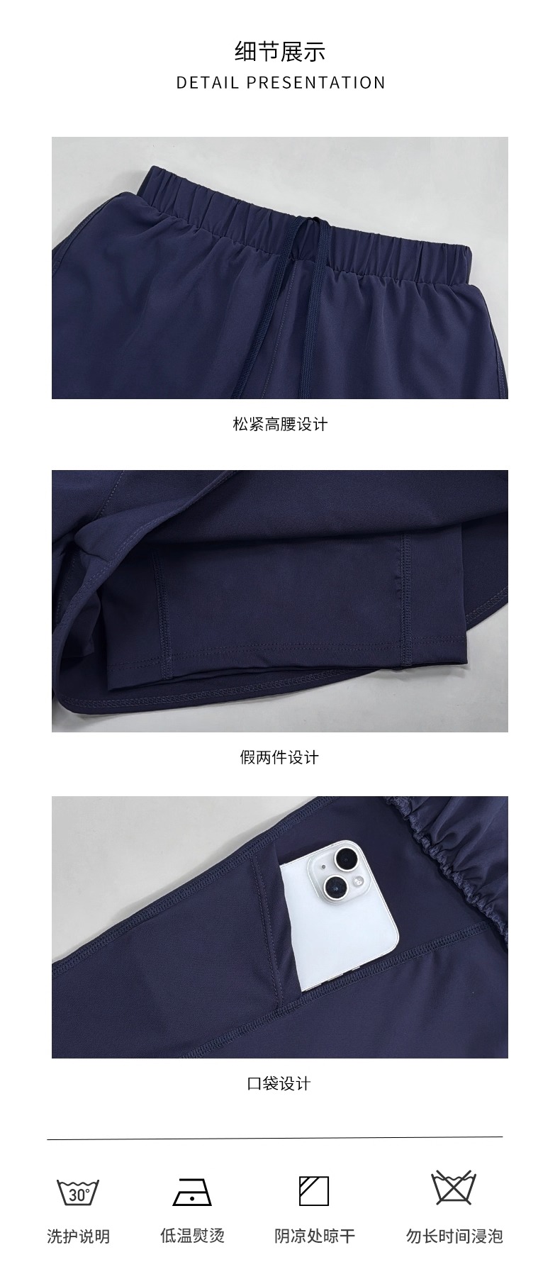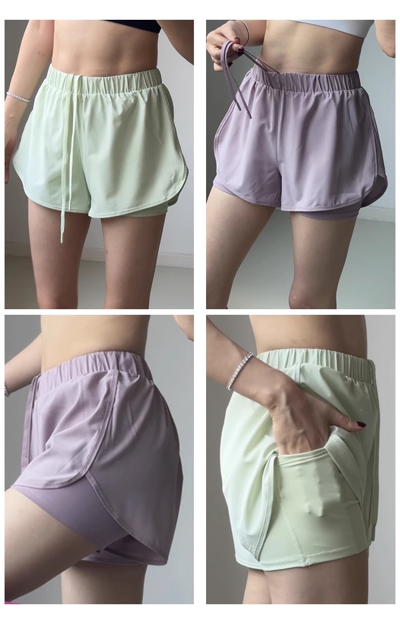 跃牌【安琪拉系列】凉感假两件跑步短裤女带口袋放手机防走光三分裤DK-5005
