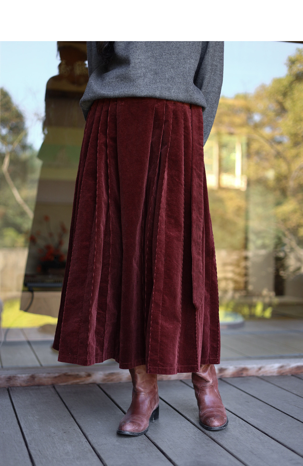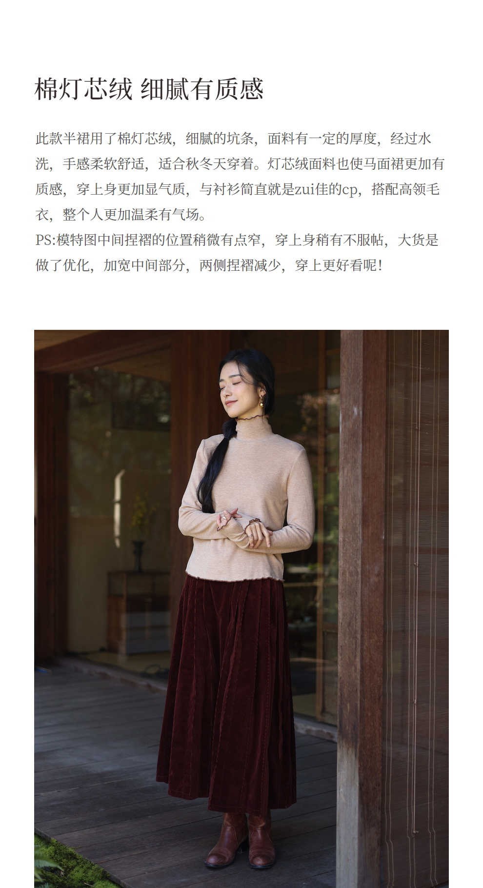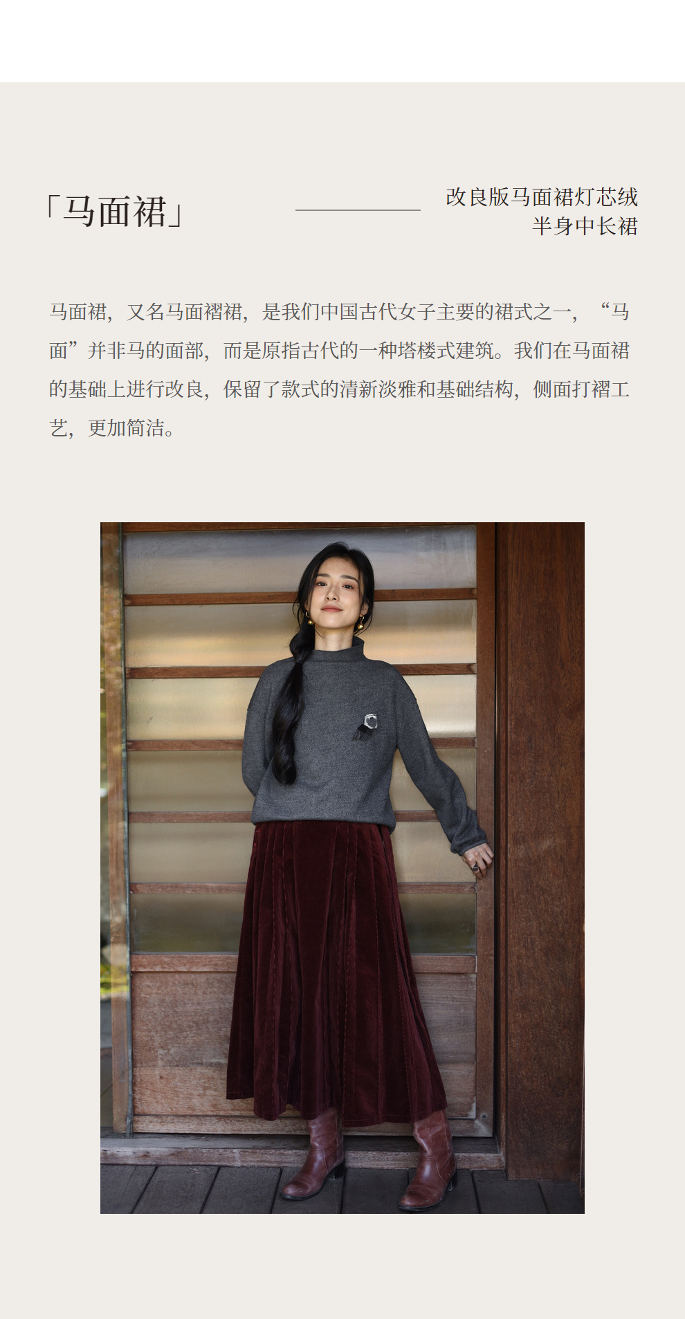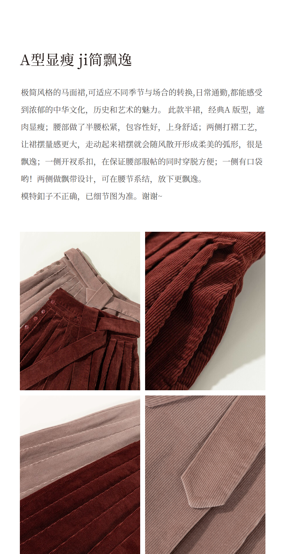 绽放931朵/改良版马面裙A字遮肉显瘦飘逸红棕色灯芯绒长款半身裙