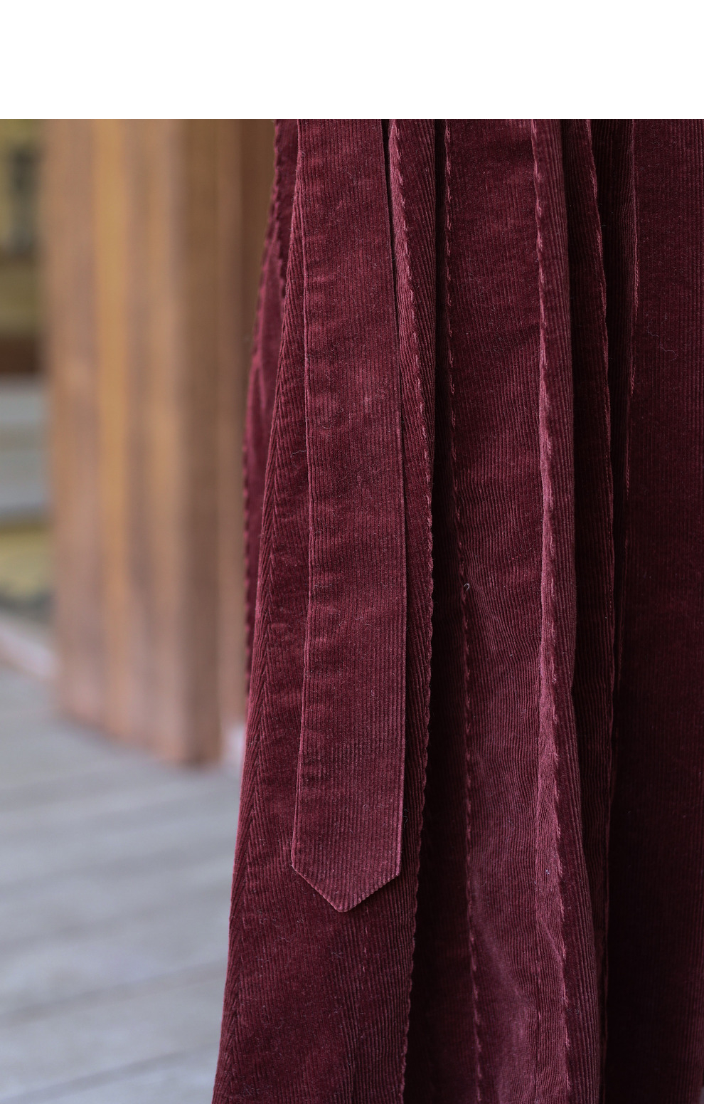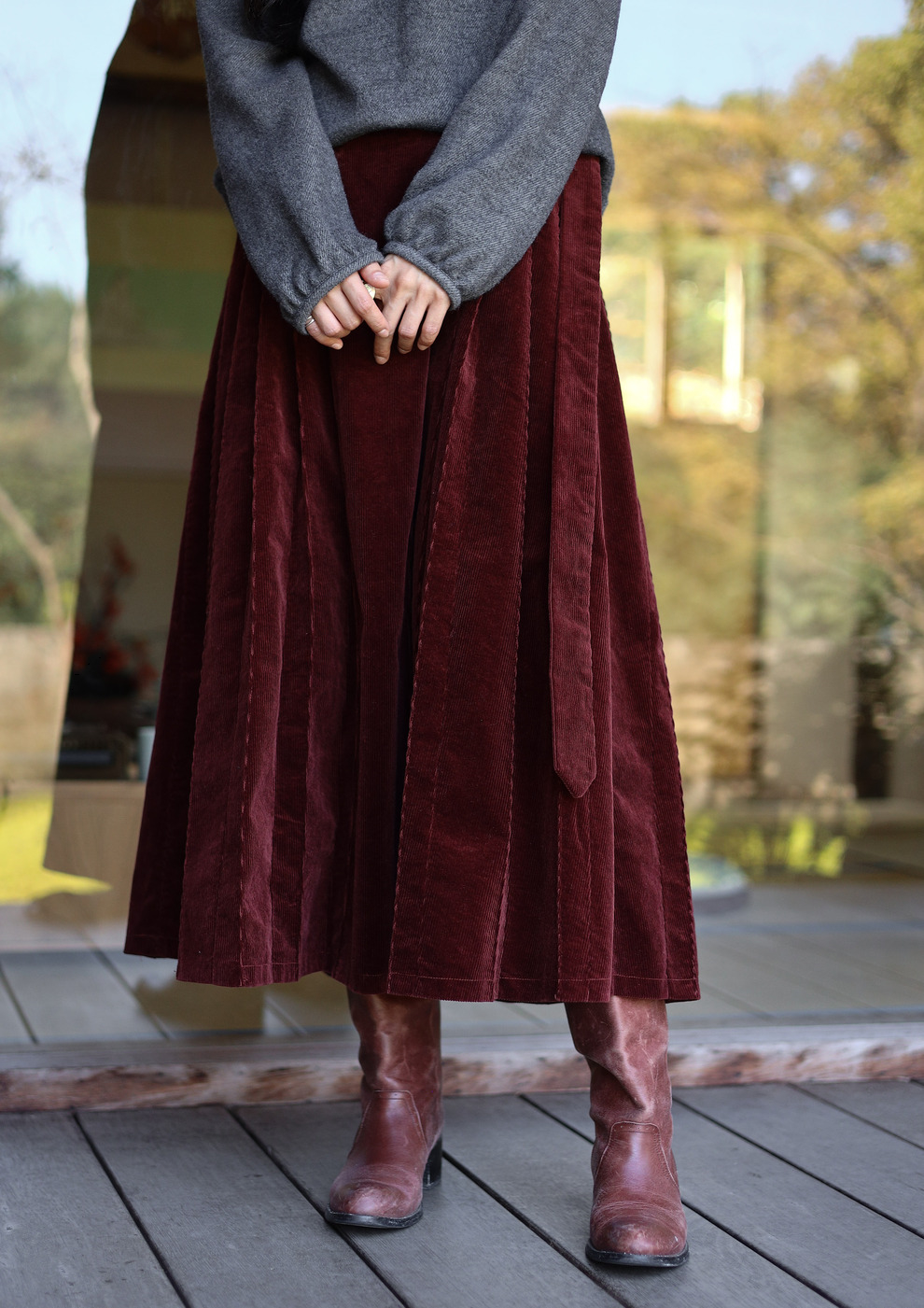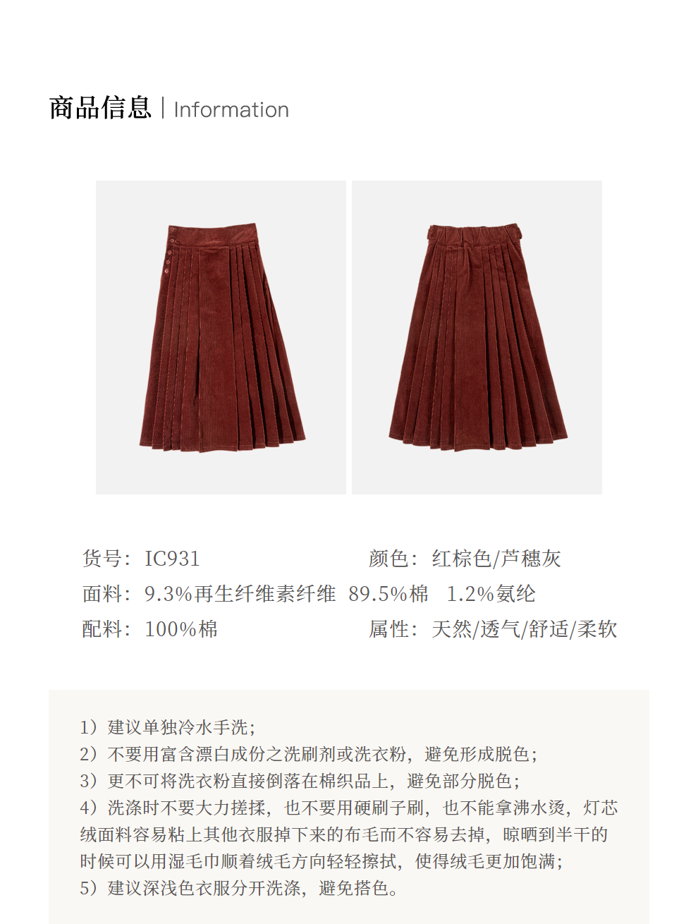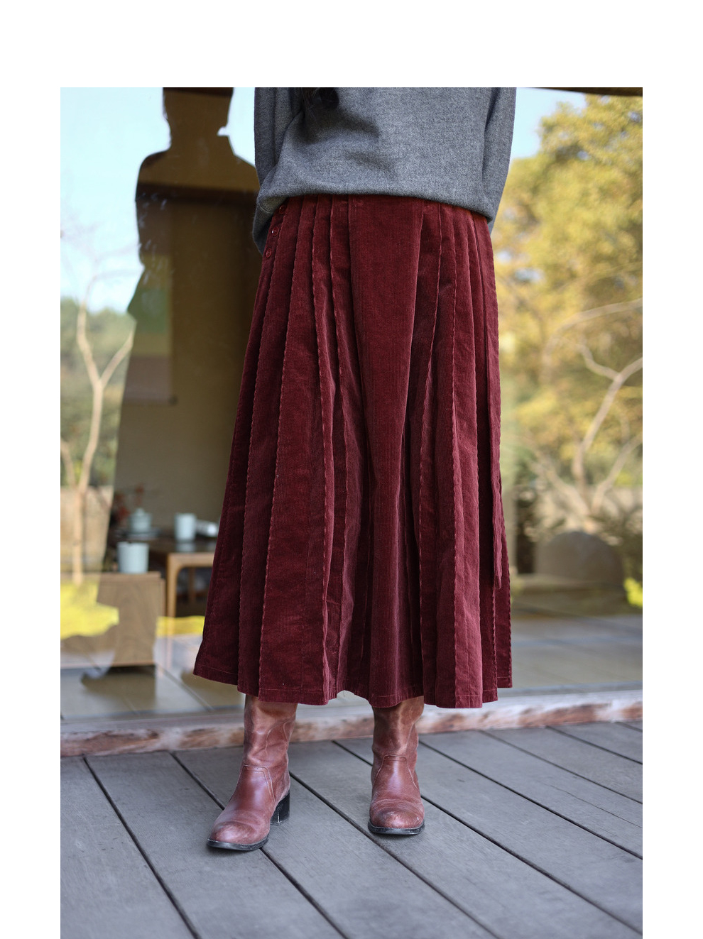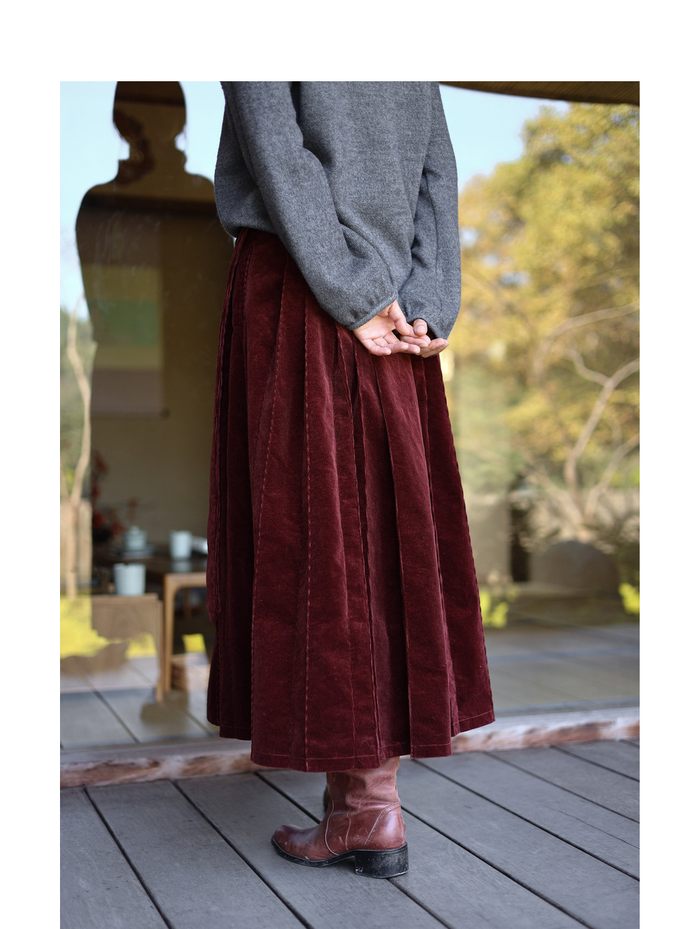 绽放931朵/改良版马面裙A字遮肉显瘦飘逸红棕色灯芯绒长款半身裙