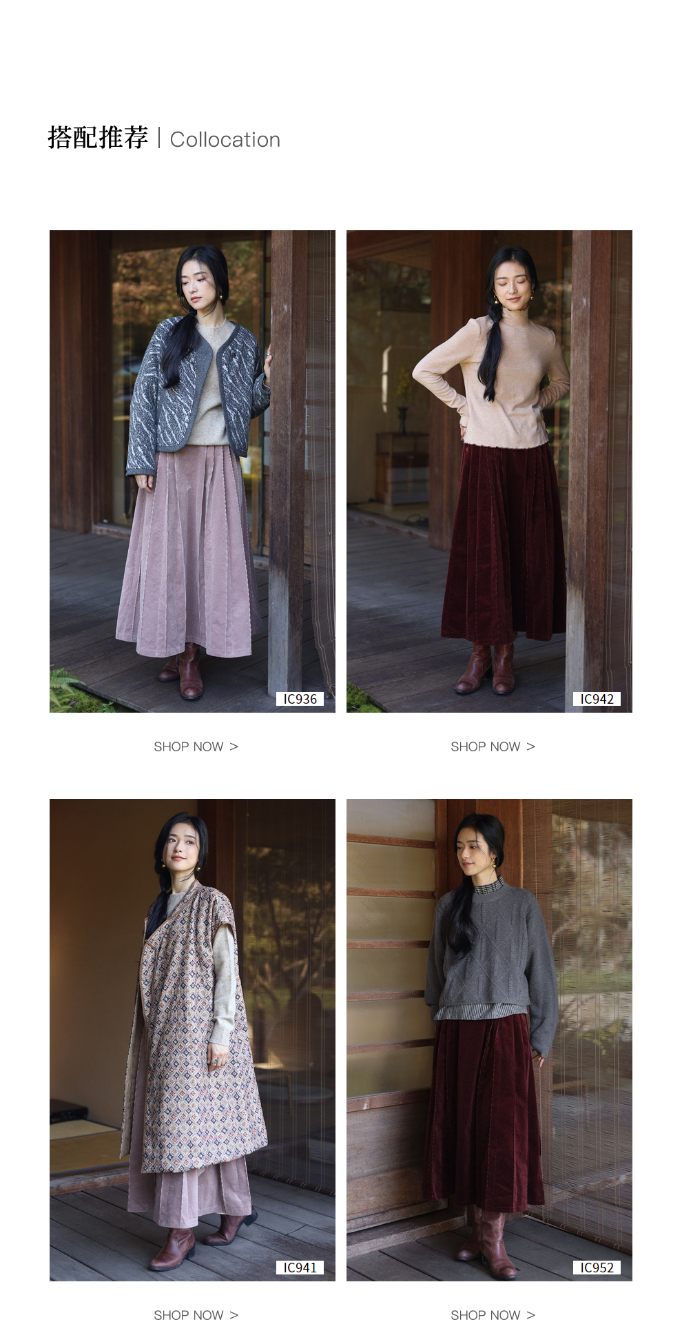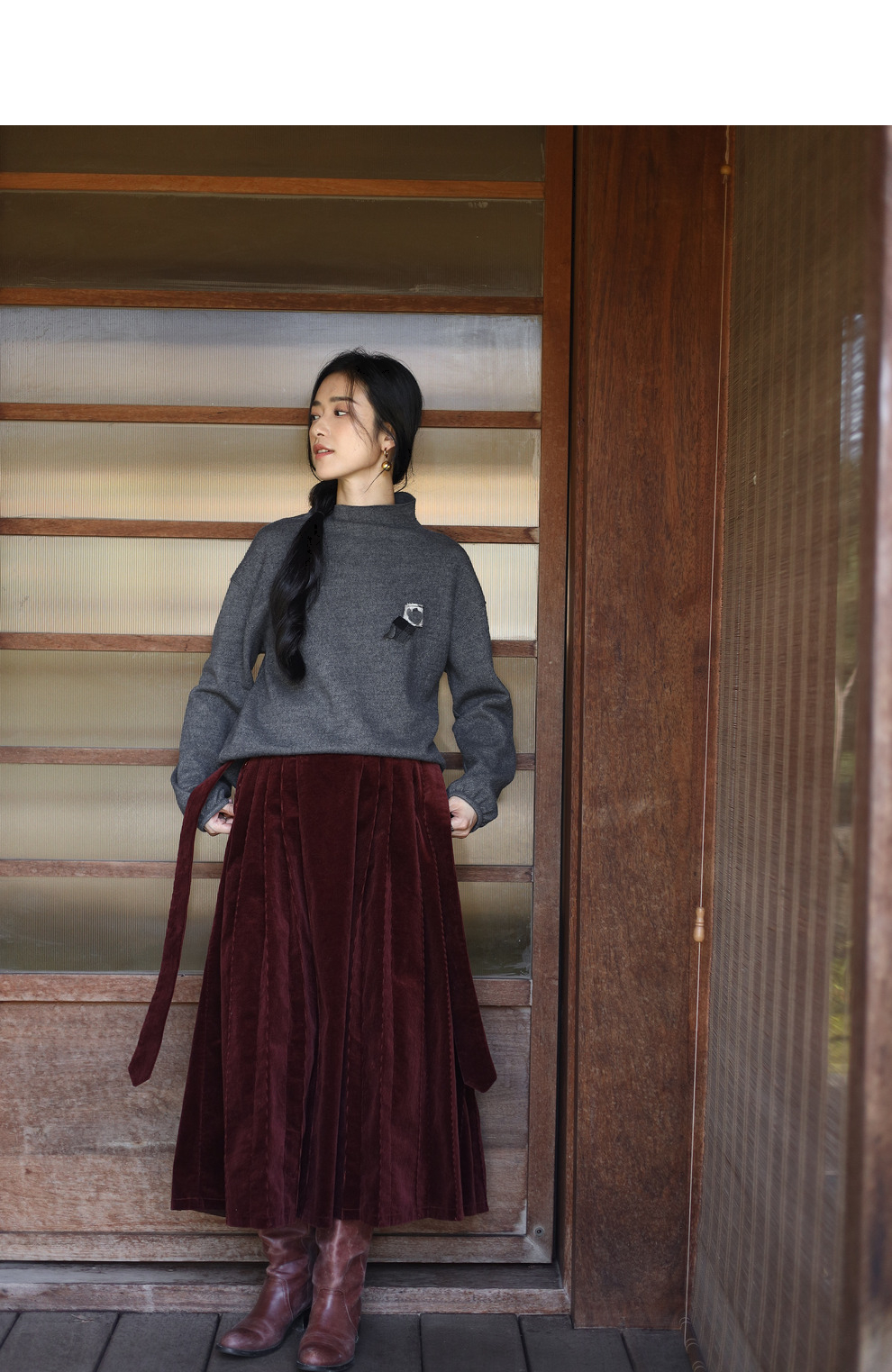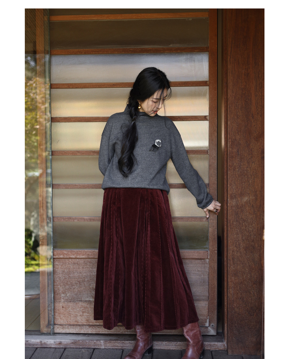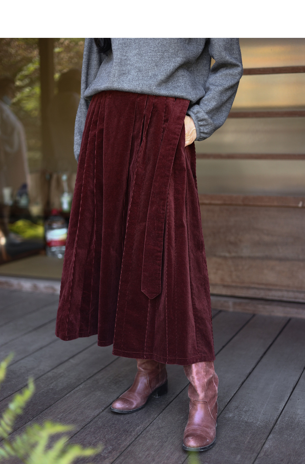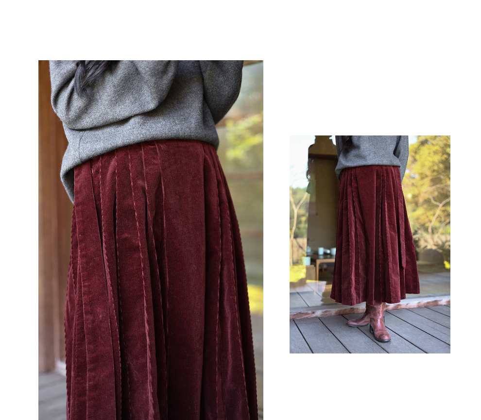 绽放931朵/改良版马面裙A字遮肉显瘦飘逸红棕色灯芯绒长款半身裙