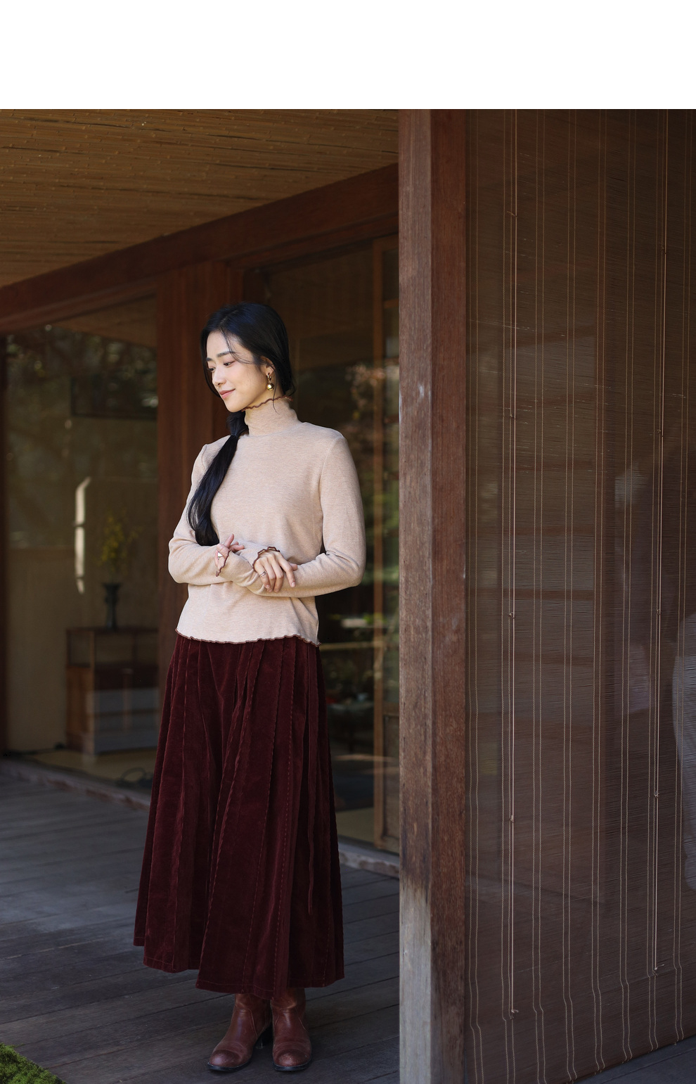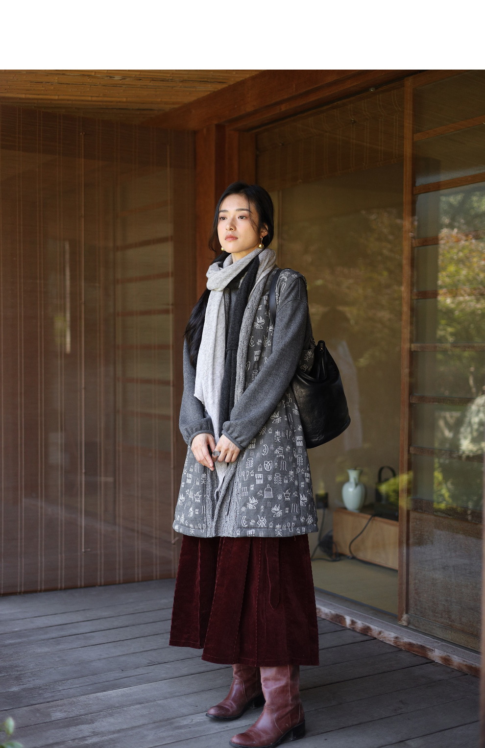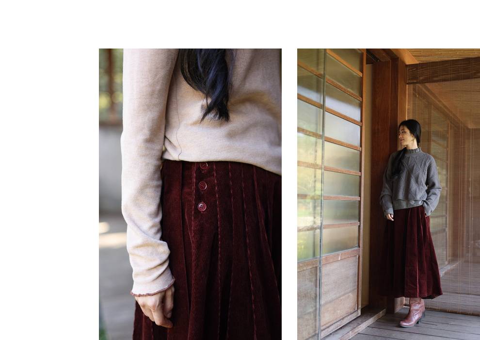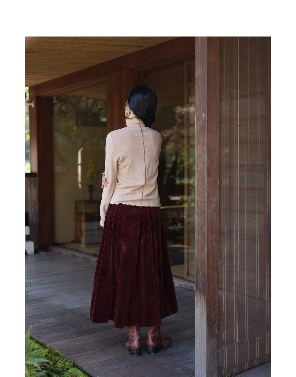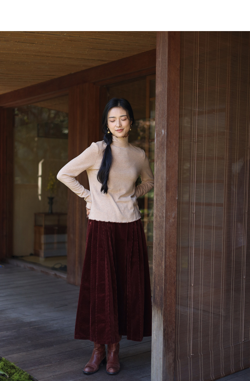 绽放931朵/改良版马面裙A字遮肉显瘦飘逸红棕色灯芯绒长款半身裙