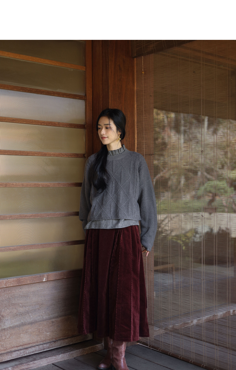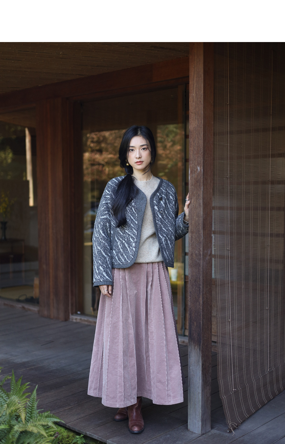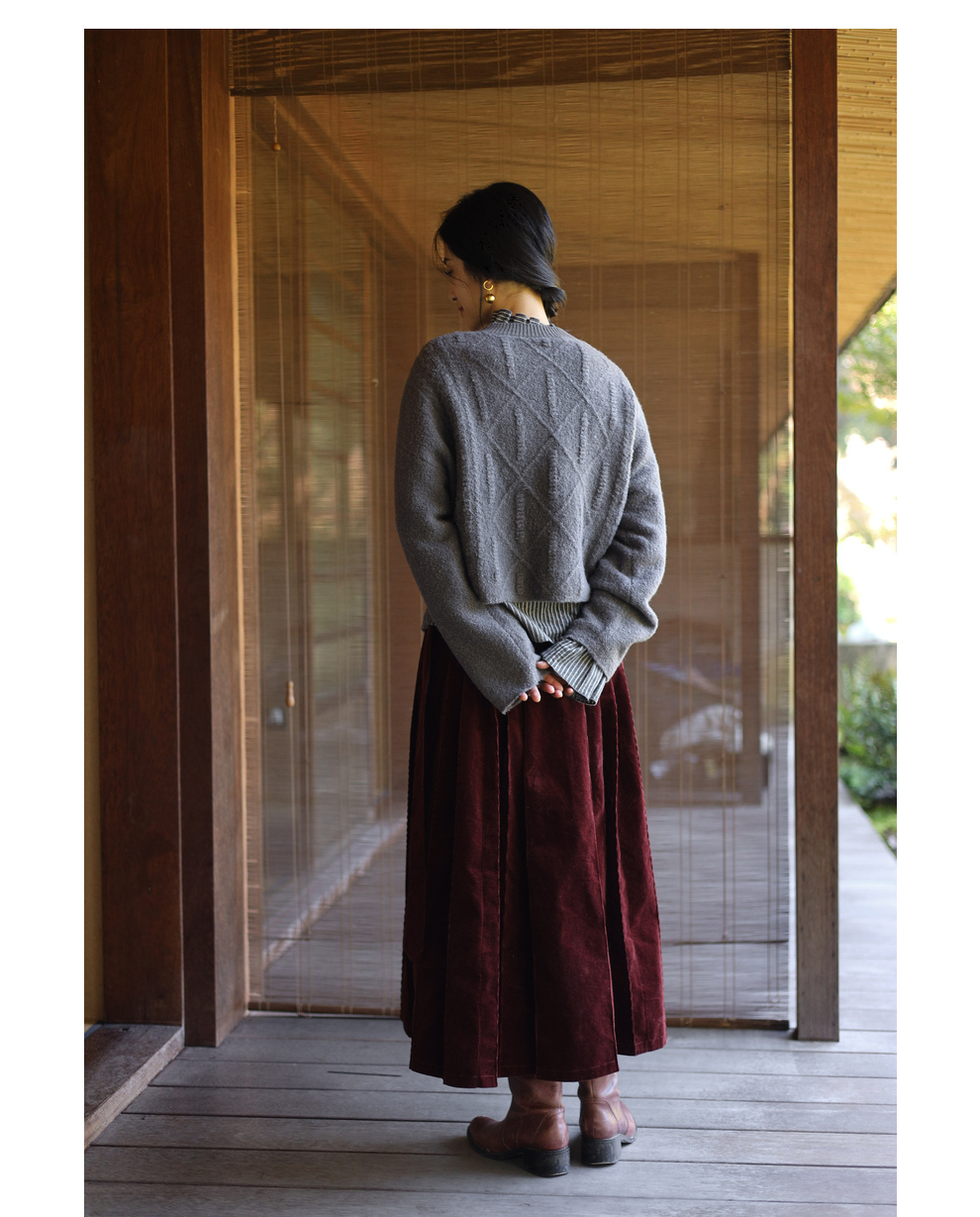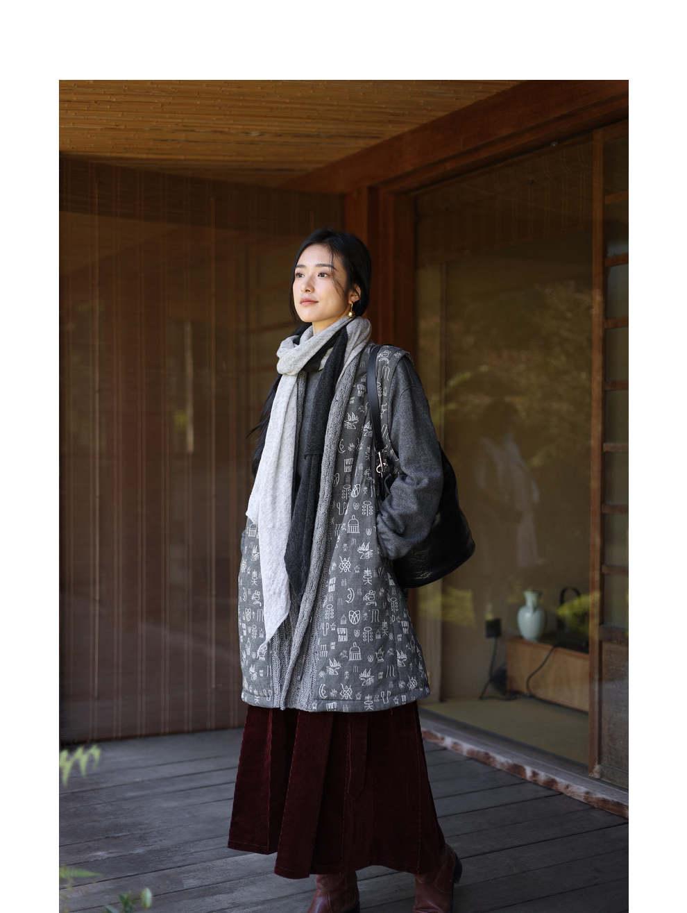 绽放931朵/改良版马面裙A字遮肉显瘦飘逸红棕色灯芯绒长款半身裙