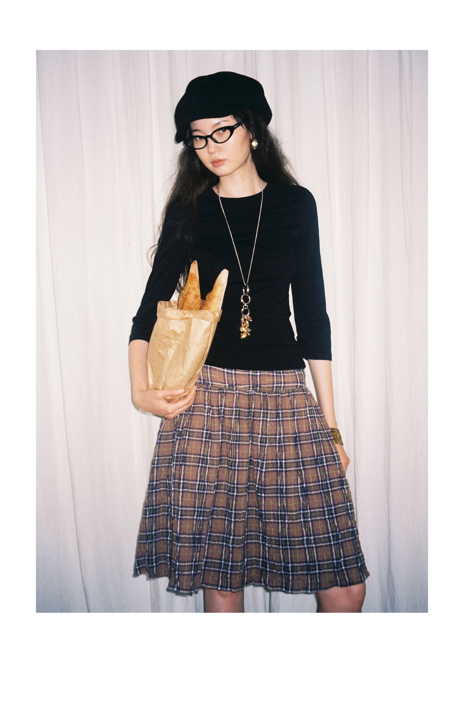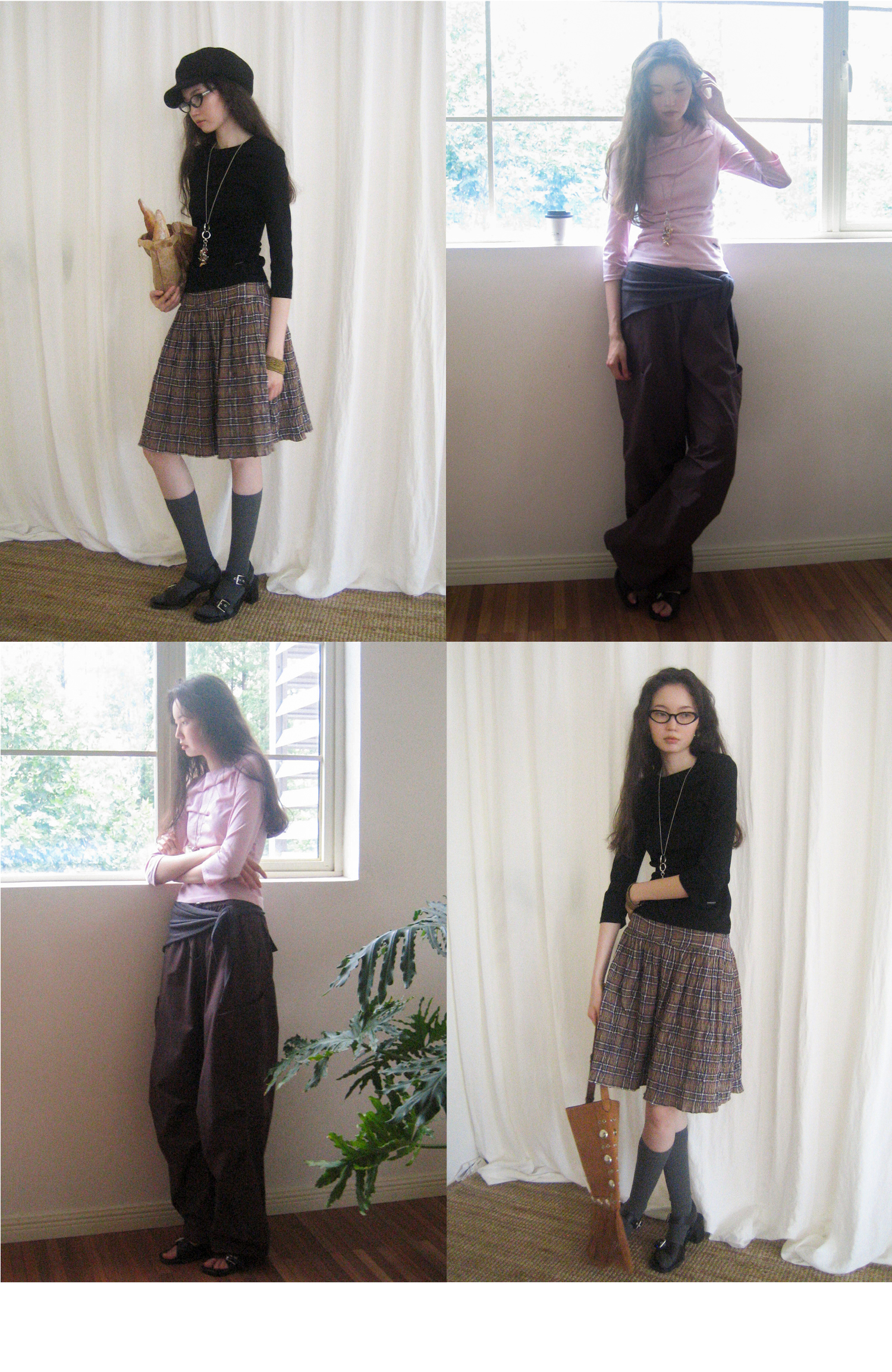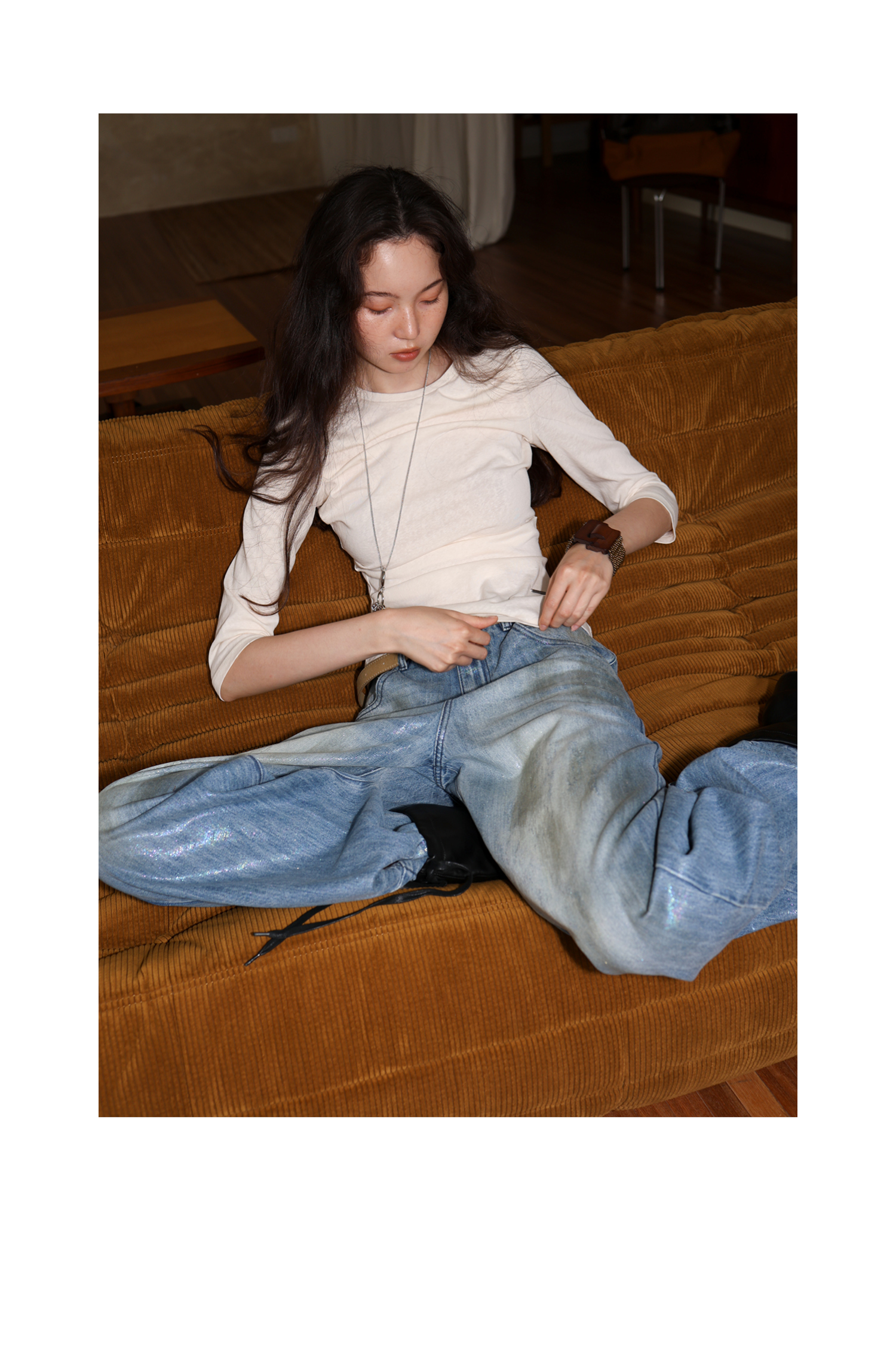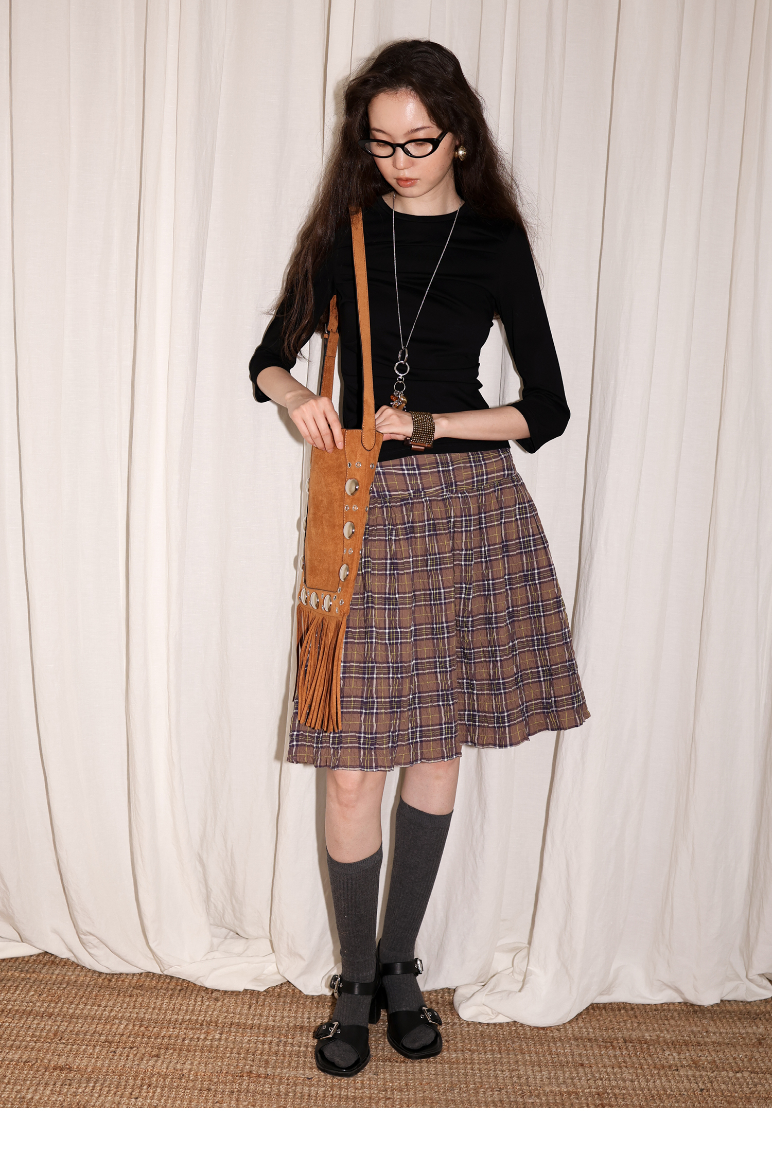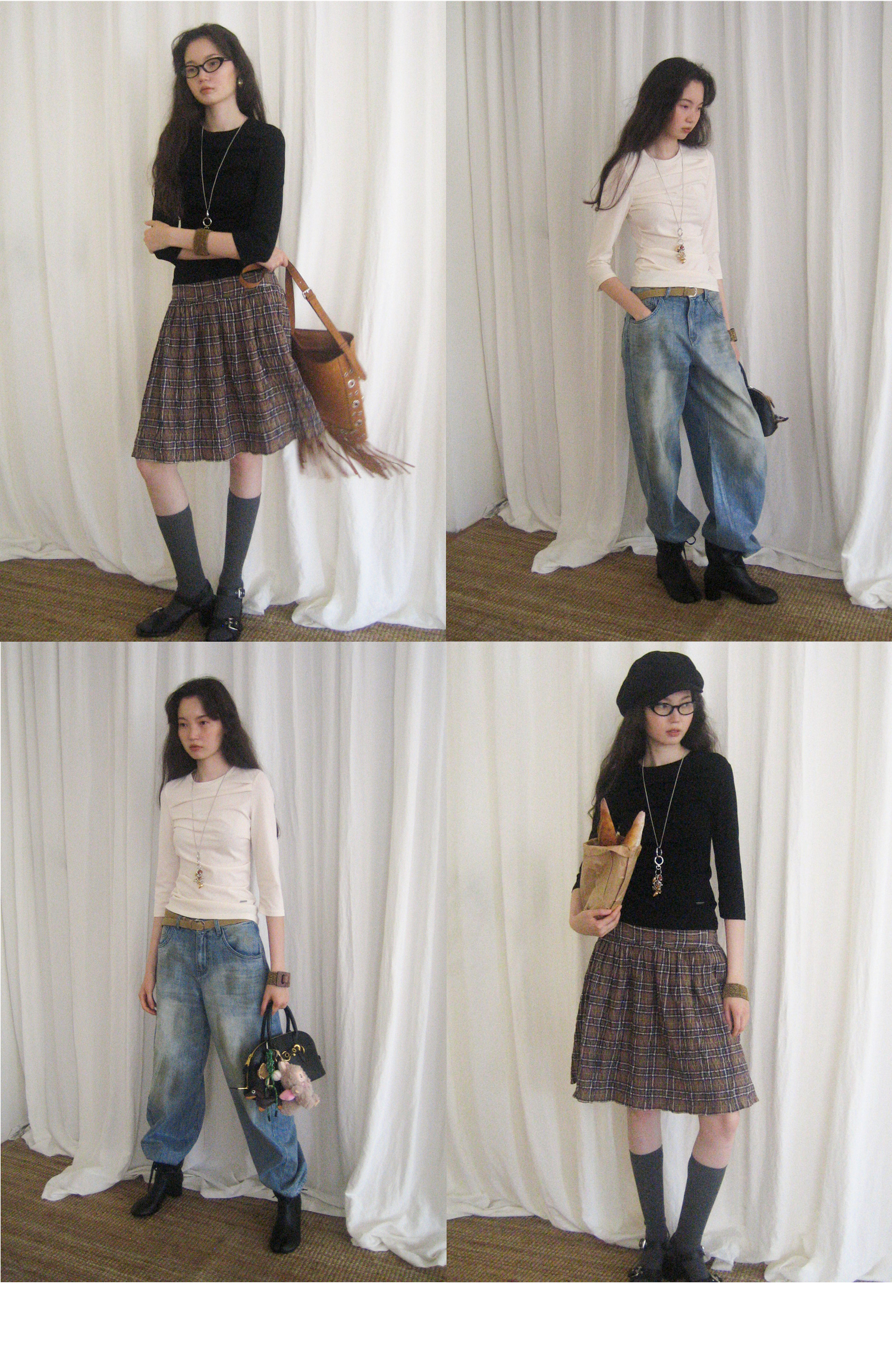 【8/6新品】素舶四季舒适棉感圆领竹节棉褶皱撞色装饰线七分袖T恤