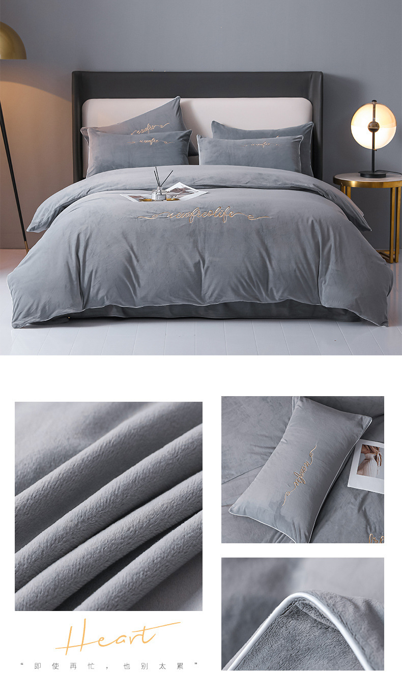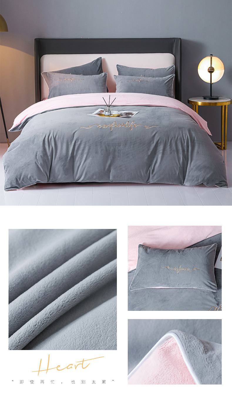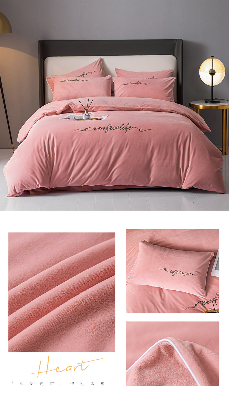 冬季【A类加厚宝宝绒床上四件套】婴儿绒保暖刺绣被套 牛奶绒床单床笠床品