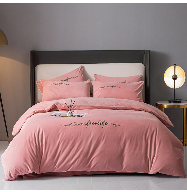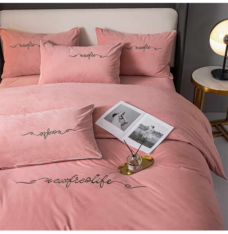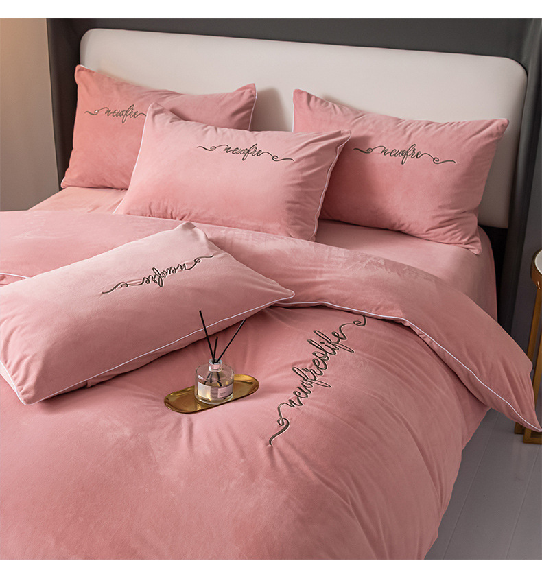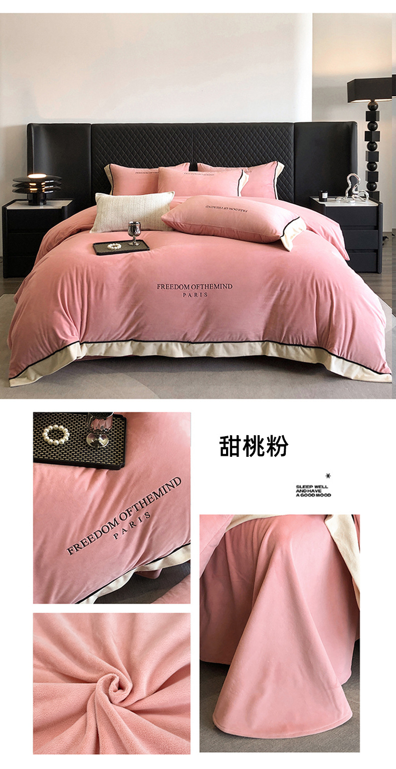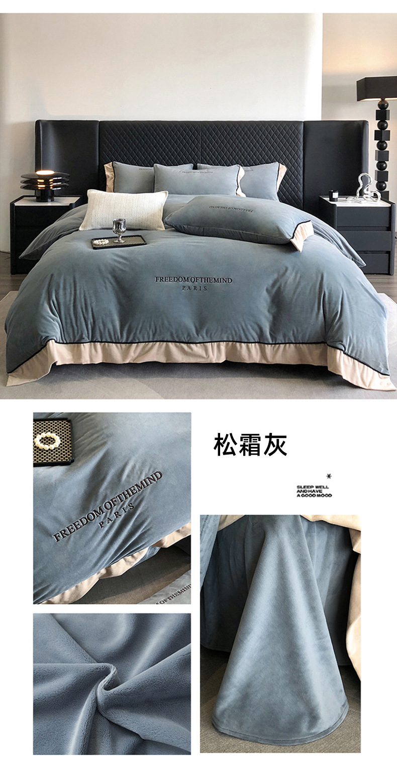冬季【A类加厚宝宝绒床上四件套】婴儿绒保暖刺绣被套 牛奶绒床单床笠床品