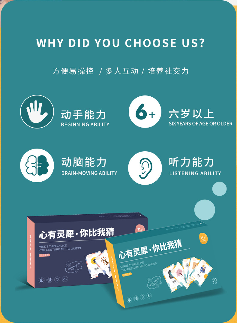 你比我猜题卡心有灵犀儿童玩具益智思维训练亲子互动网红游戏桌游
