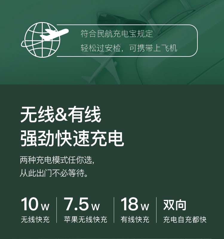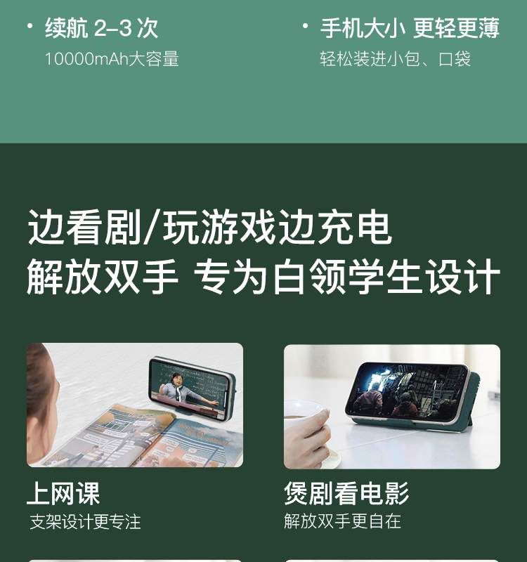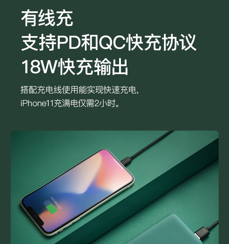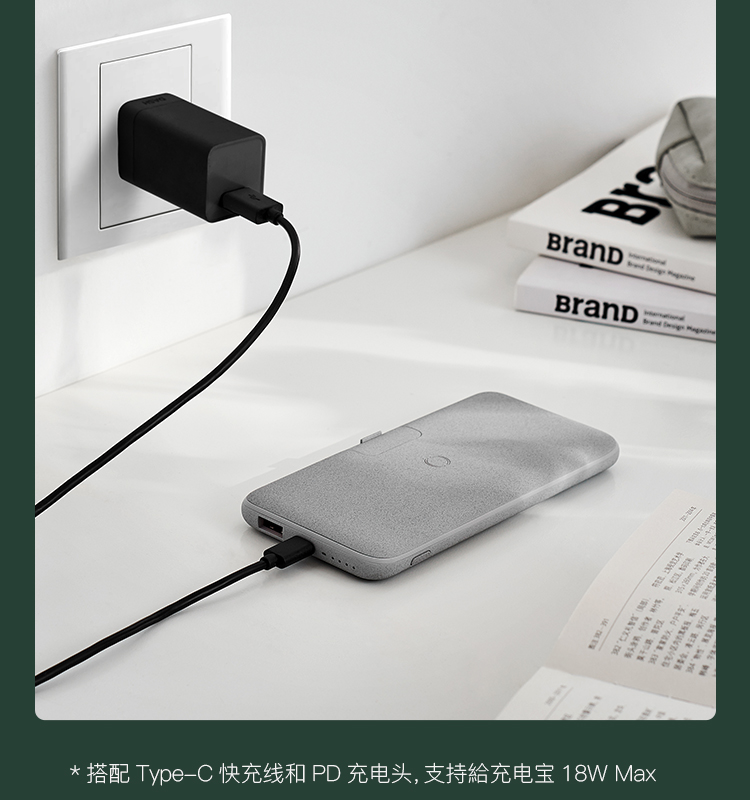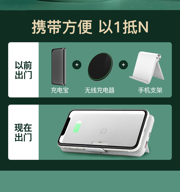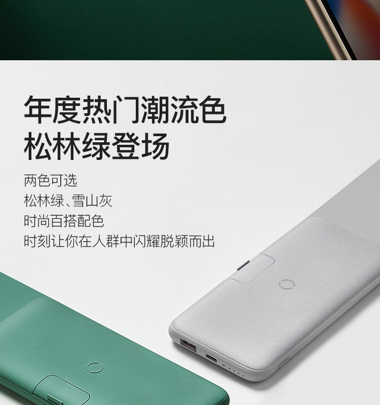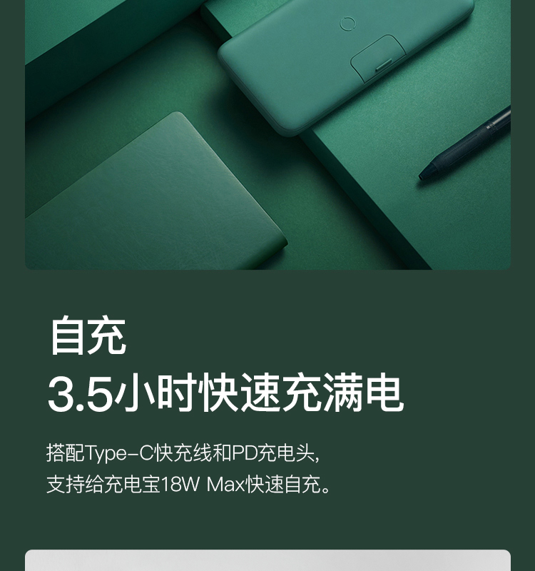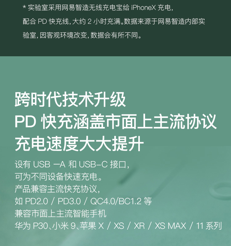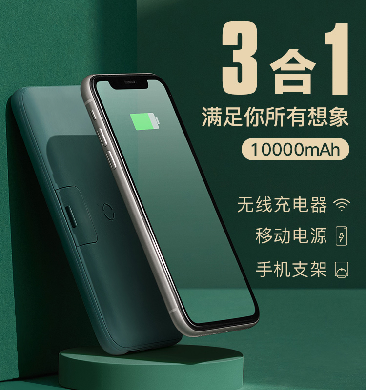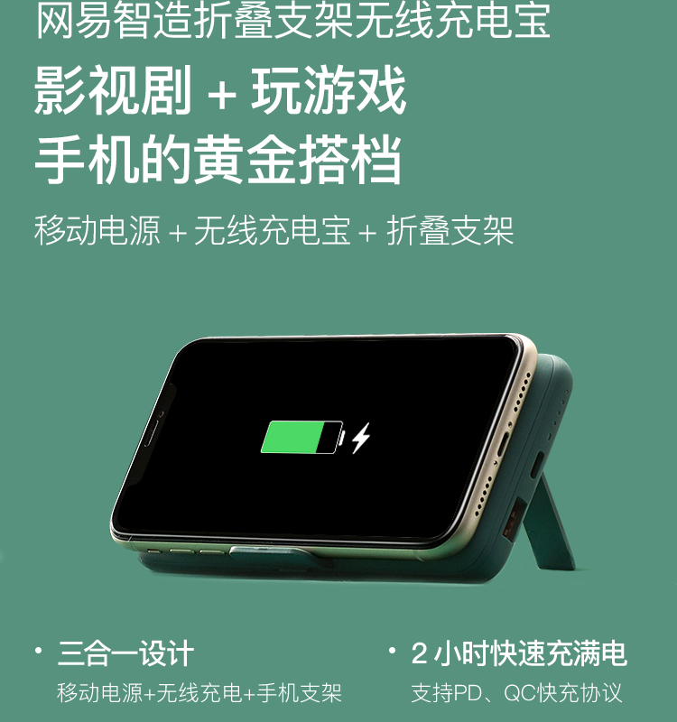 网易严选 智造 10000毫安时无线 18W PD/QC移动电源充电宝 带手机支架 双向快充 轻薄便携华为小米苹果 绿