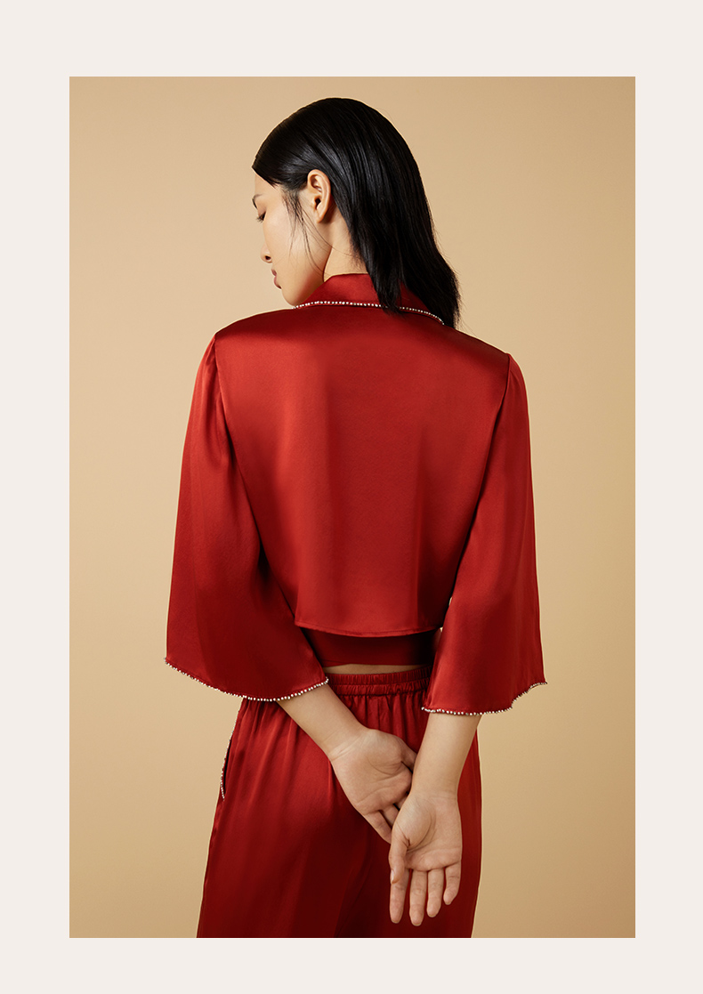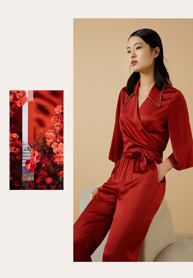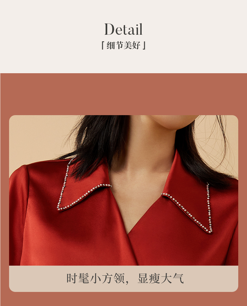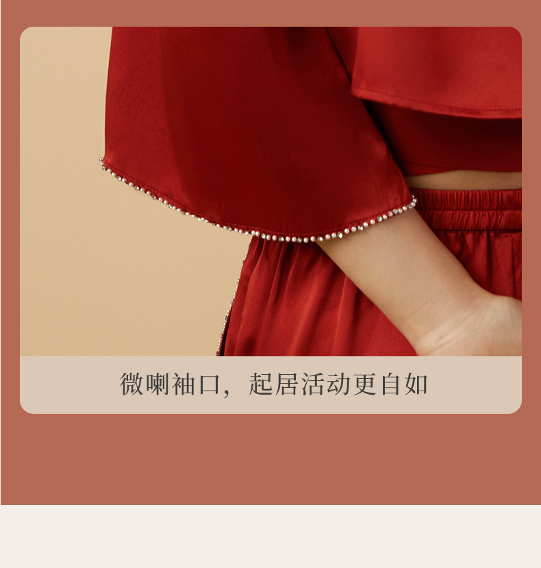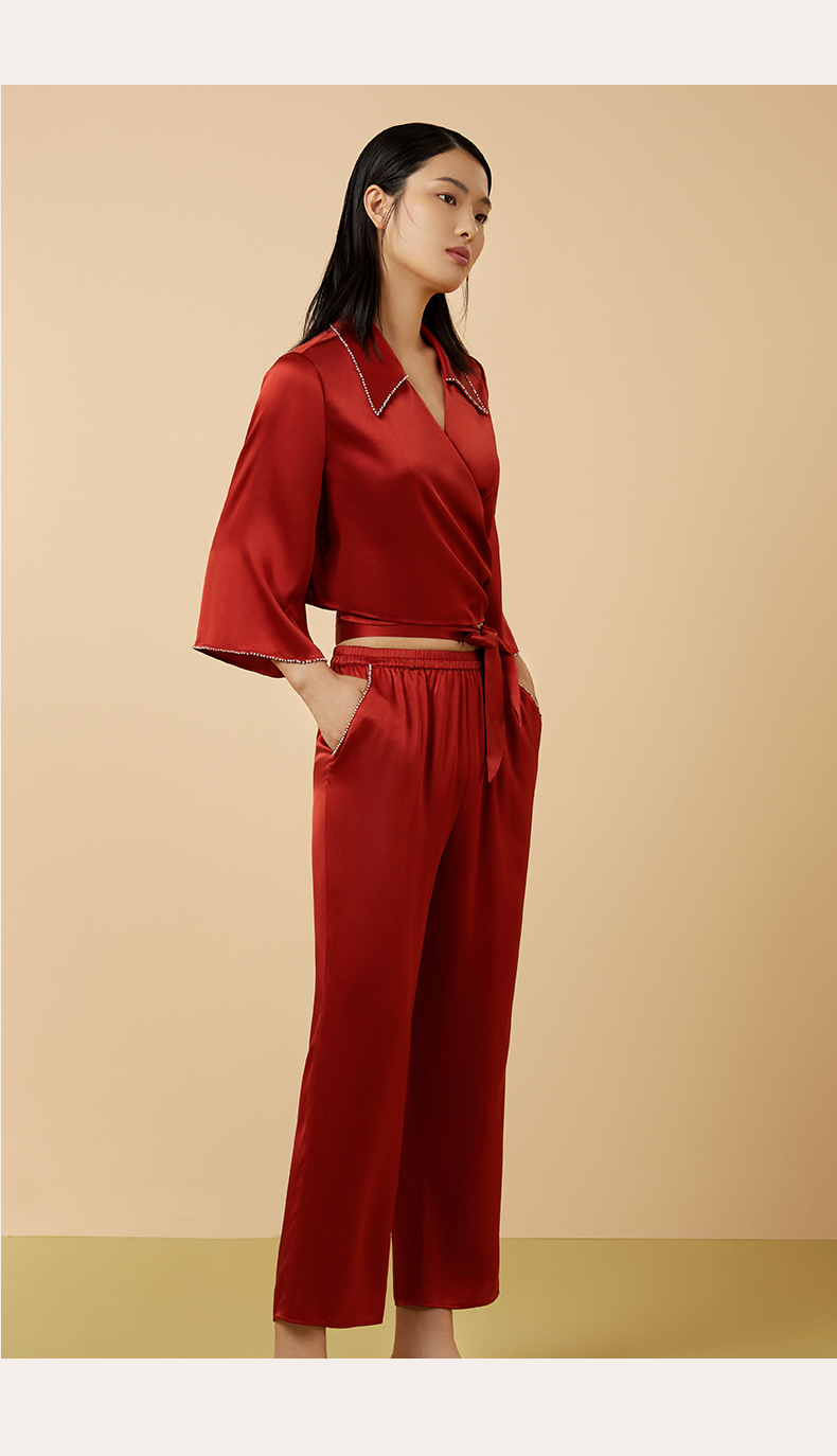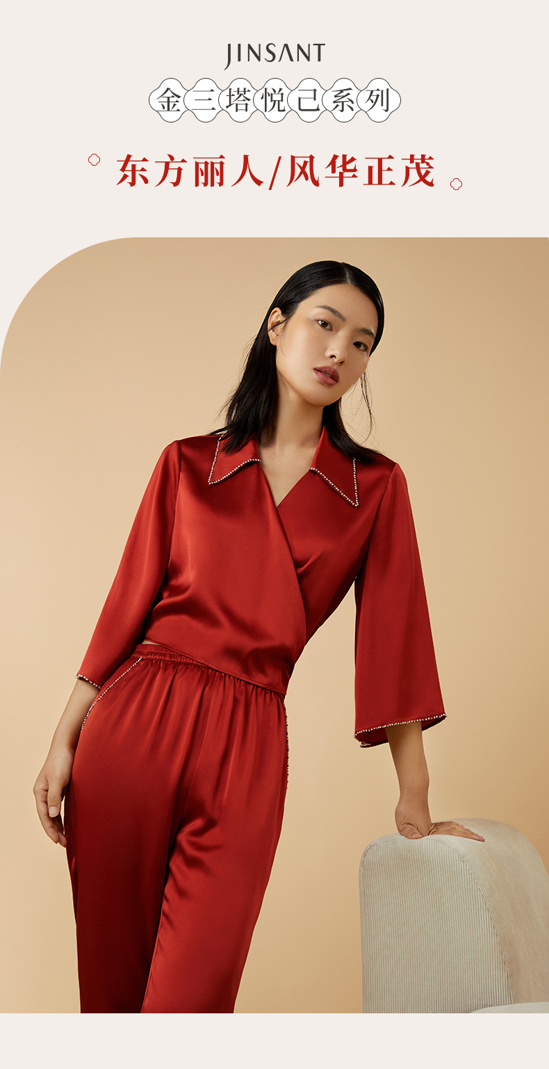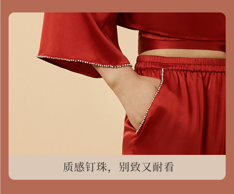金三塔19姆米重磅100%桑蚕丝真丝红色婚庆本命年衣裤套睡衣女 YSFCA201