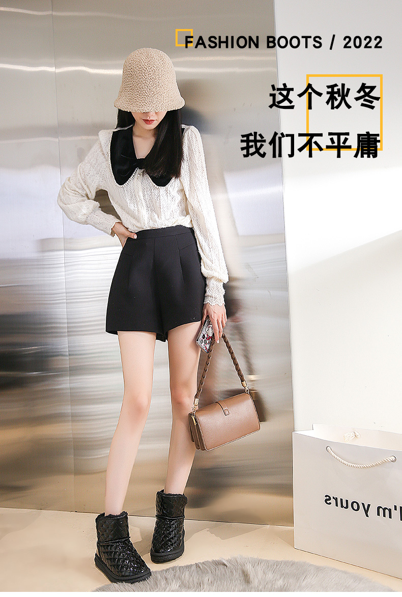 雪地靴女2023年新款皮面防水棉鞋冬季女鞋加绒加厚短靴子xdd01