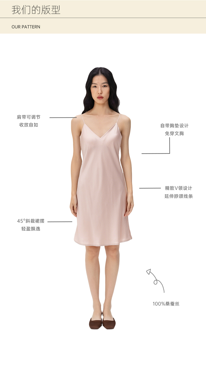 【百搭好穿Slip 】桑罗睡衣带胸垫简约打底内搭吊带裙睡袍
