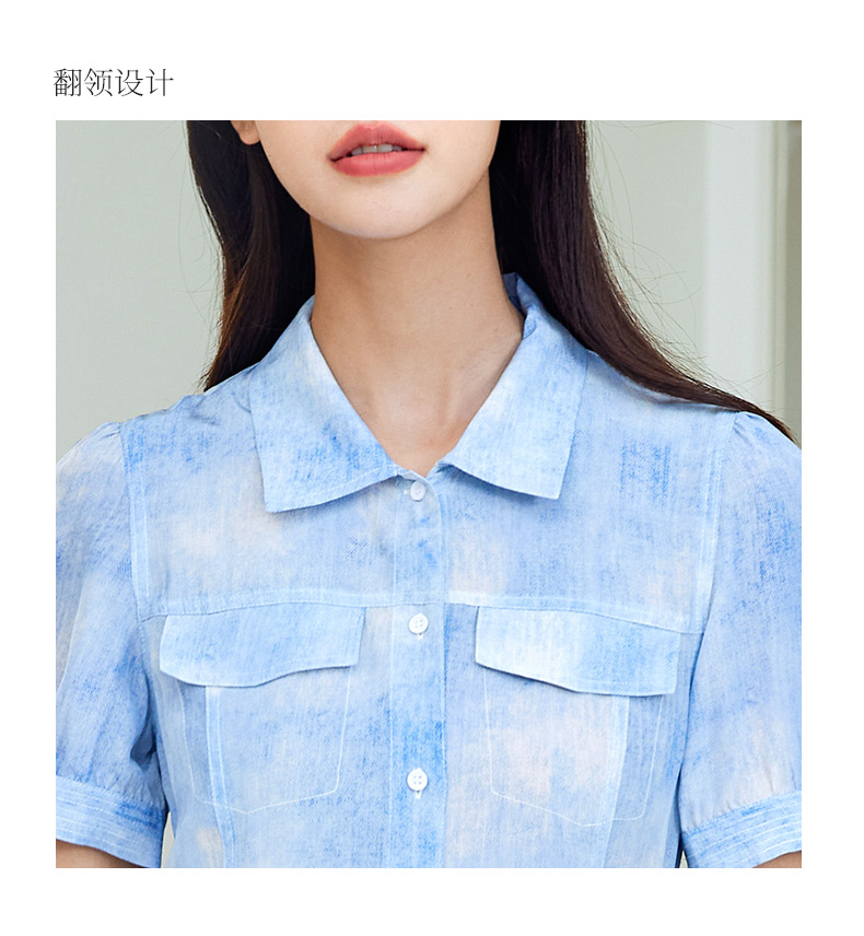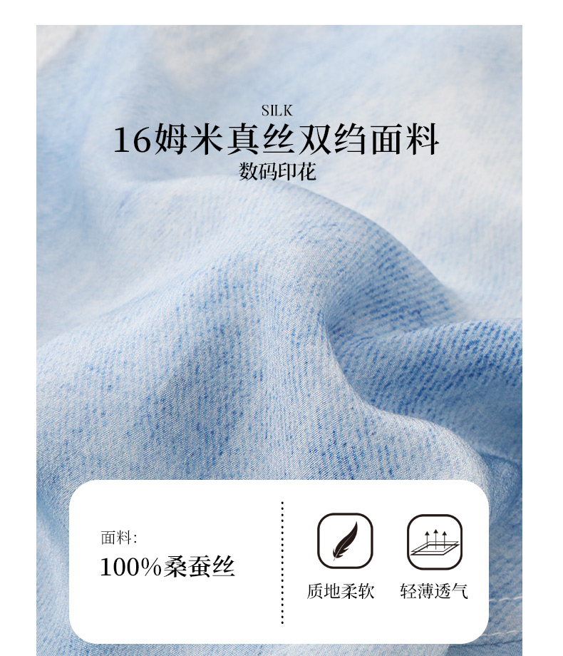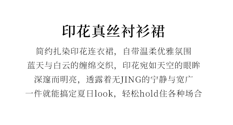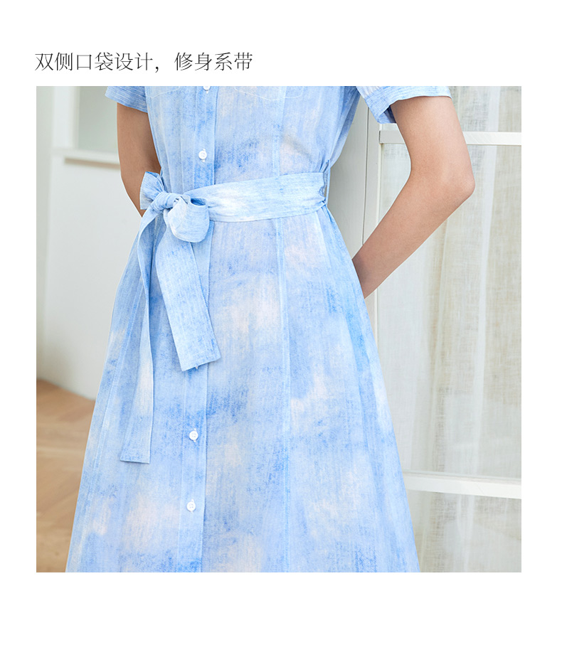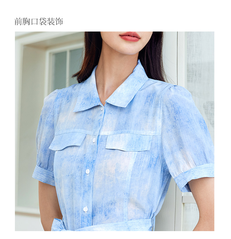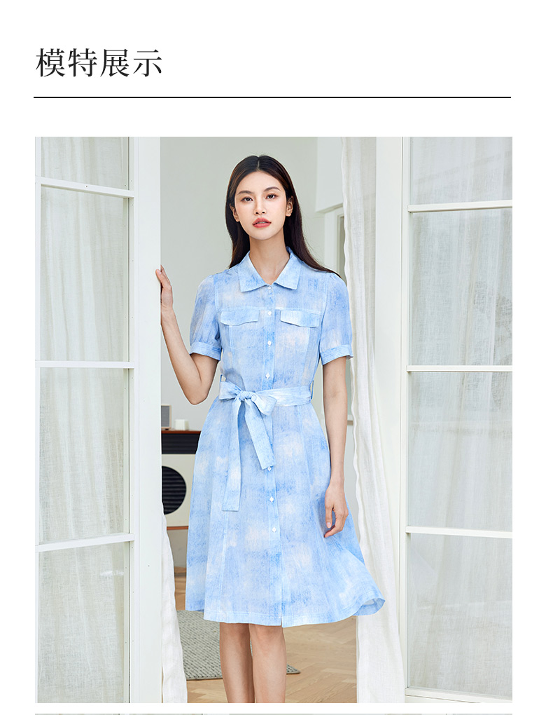 玳莎印花真丝连衣裙2024年夏季新款清新时尚系带收腰中长款衬衫裙 EB35108