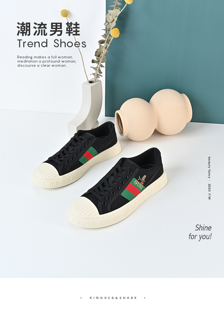 2024年经典鲨男士韩版拼色系带平底日常休闲板鞋KG378-D14011