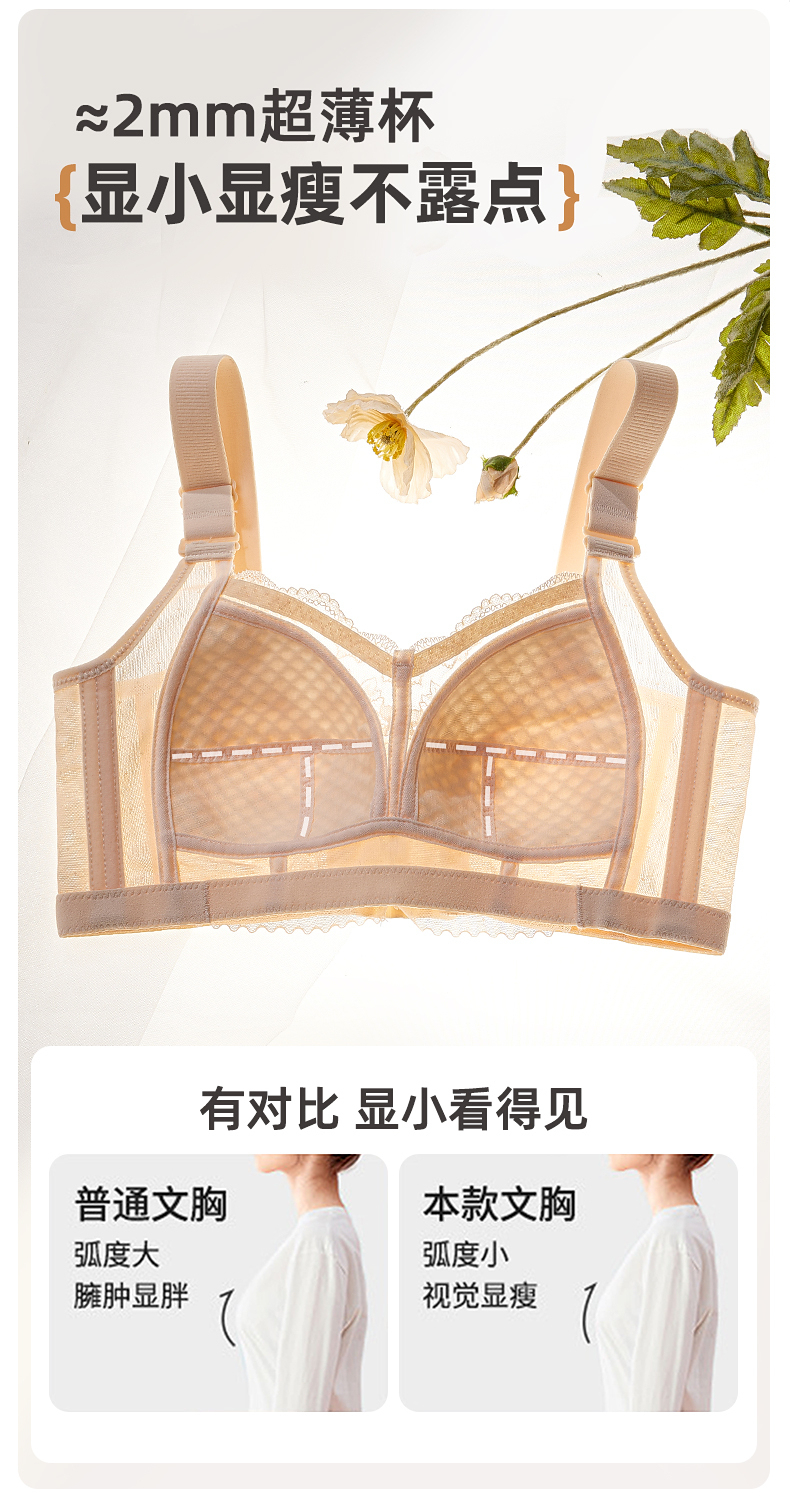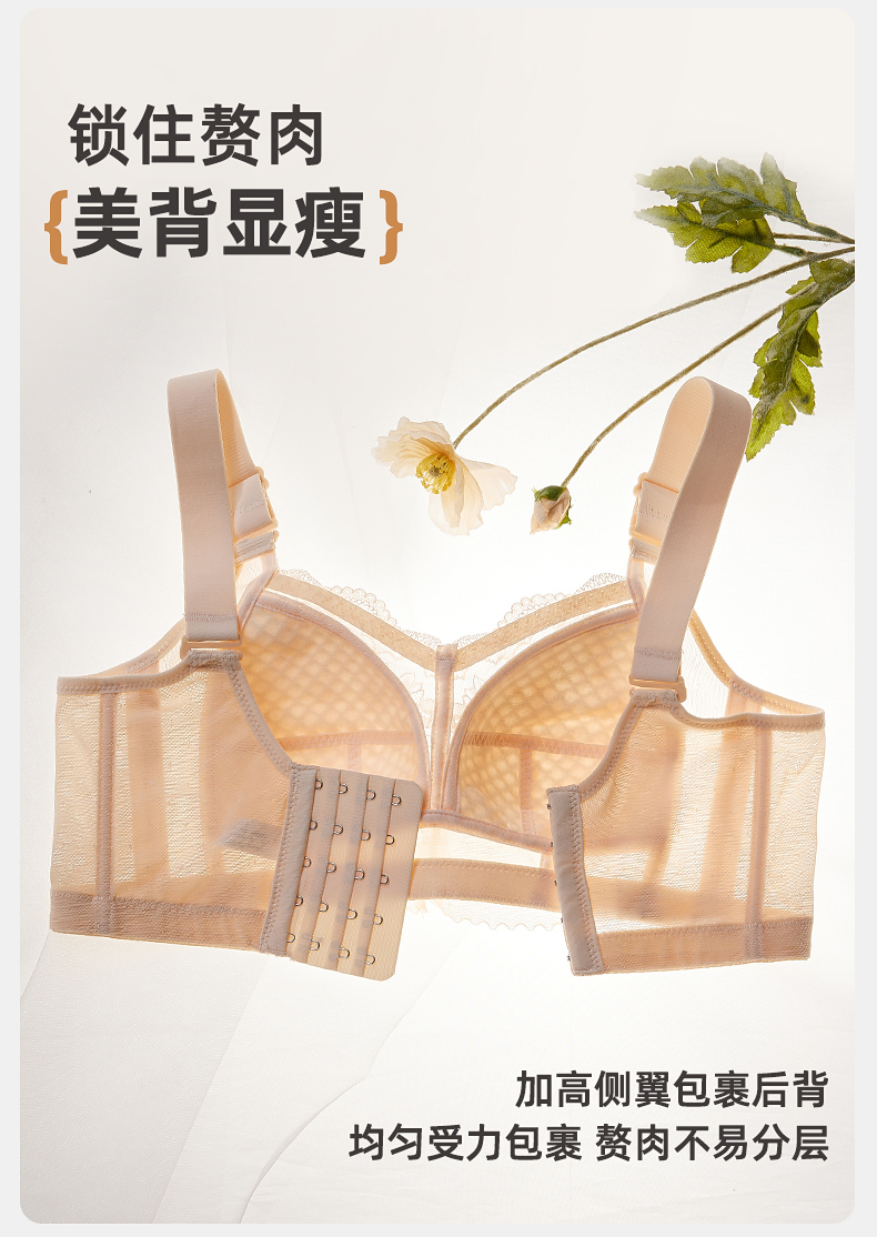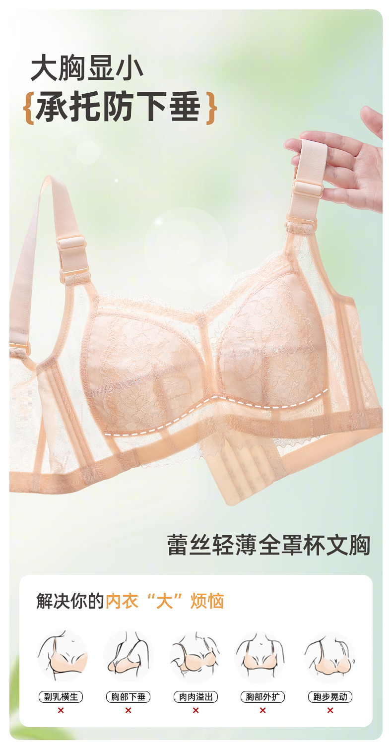 雅黛俪内衣女大胸显小收副乳防下垂性感蕾丝调整型文胸大码全罩杯