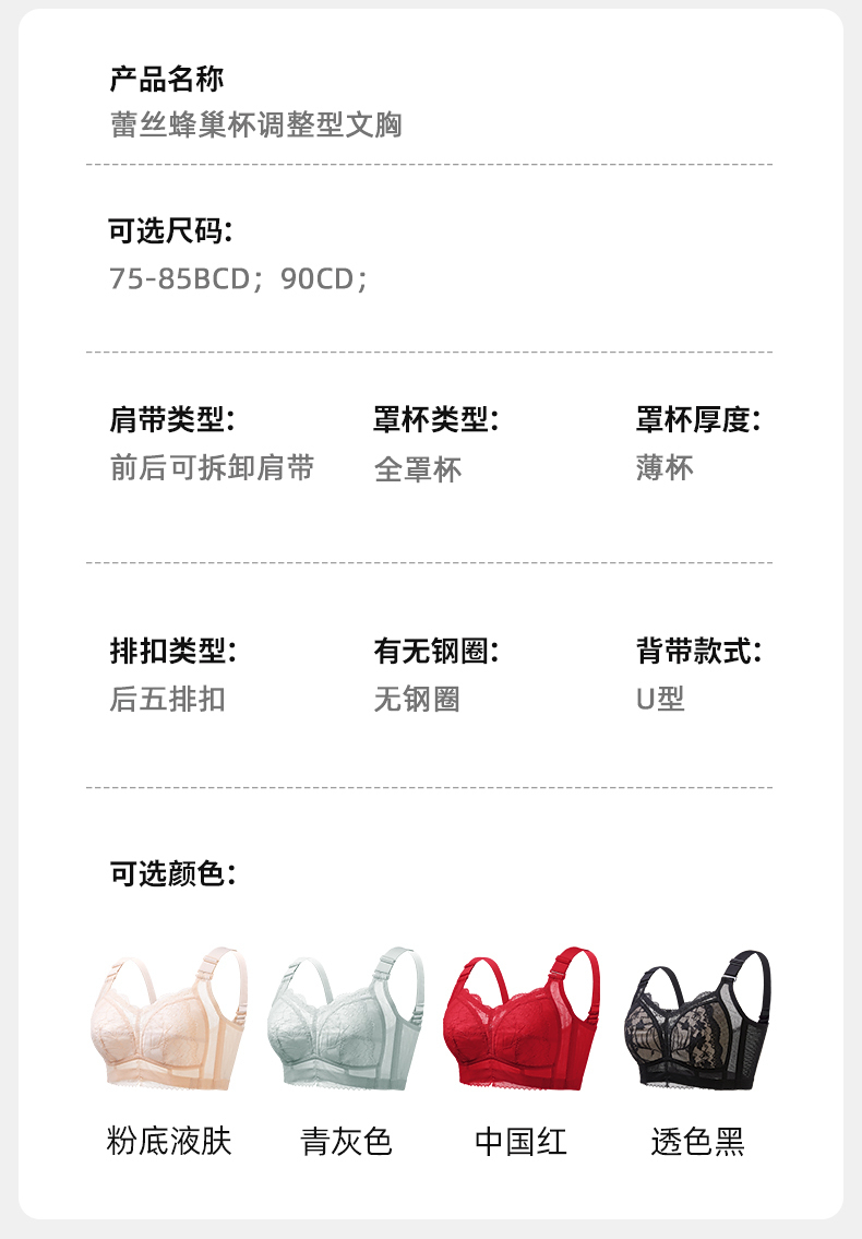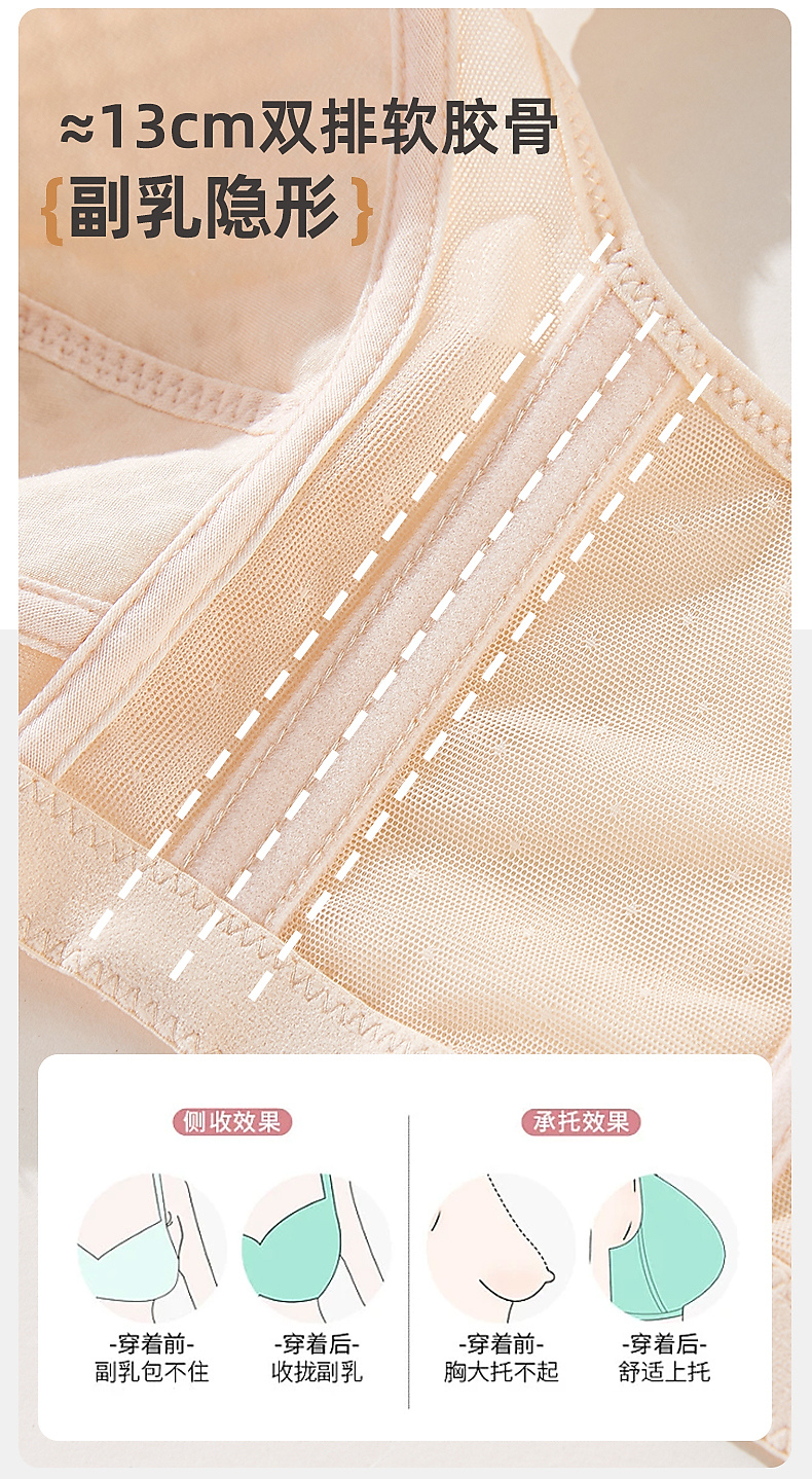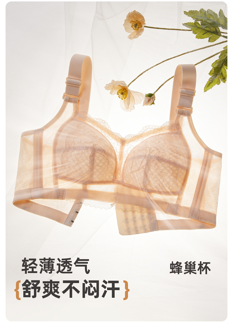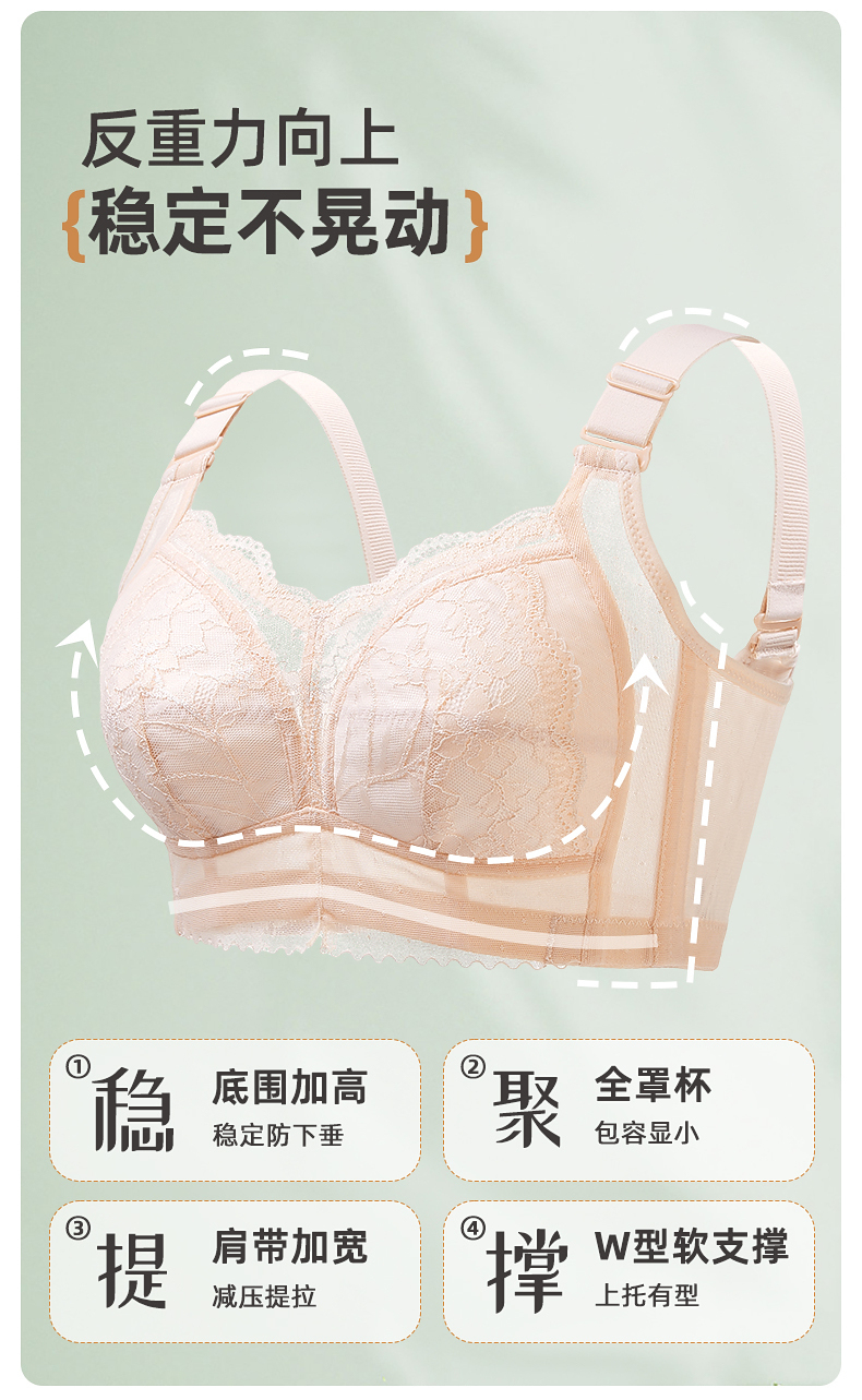 雅黛俪内衣女大胸显小收副乳防下垂性感蕾丝调整型文胸大码全罩杯