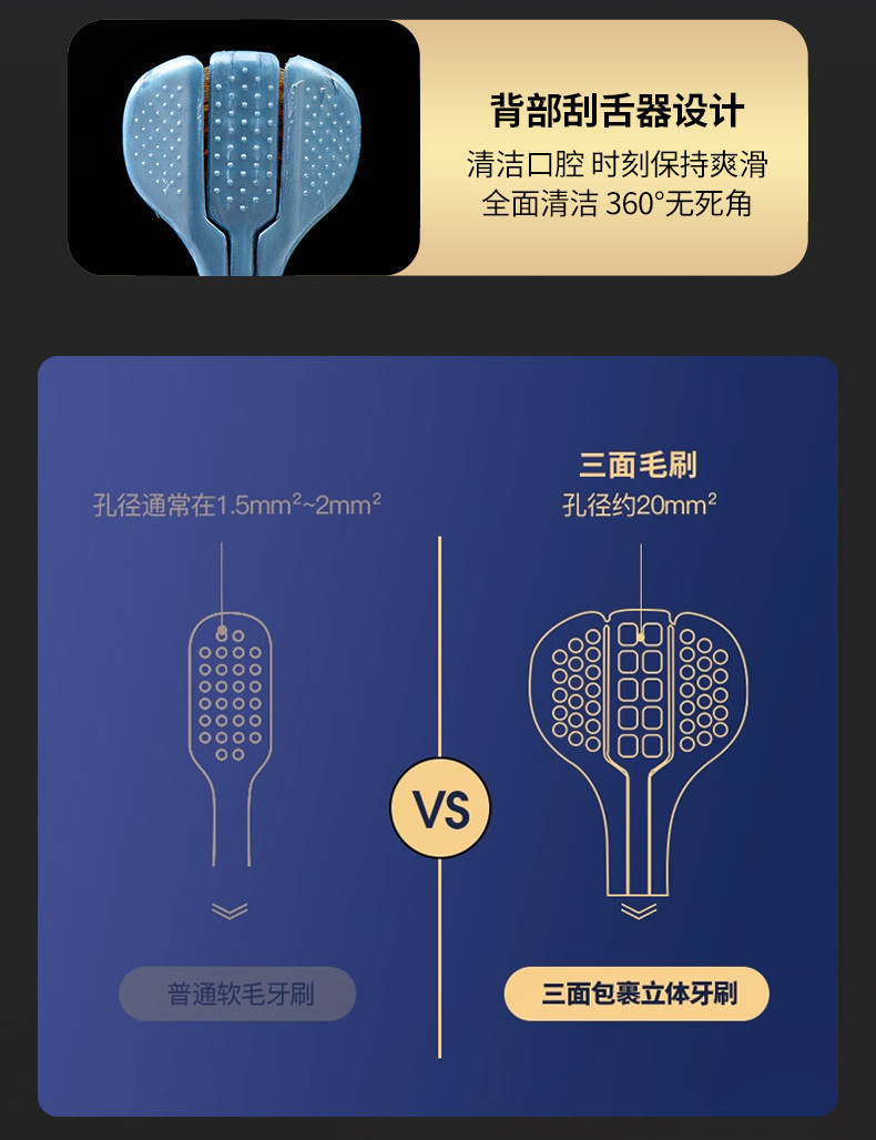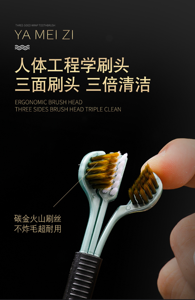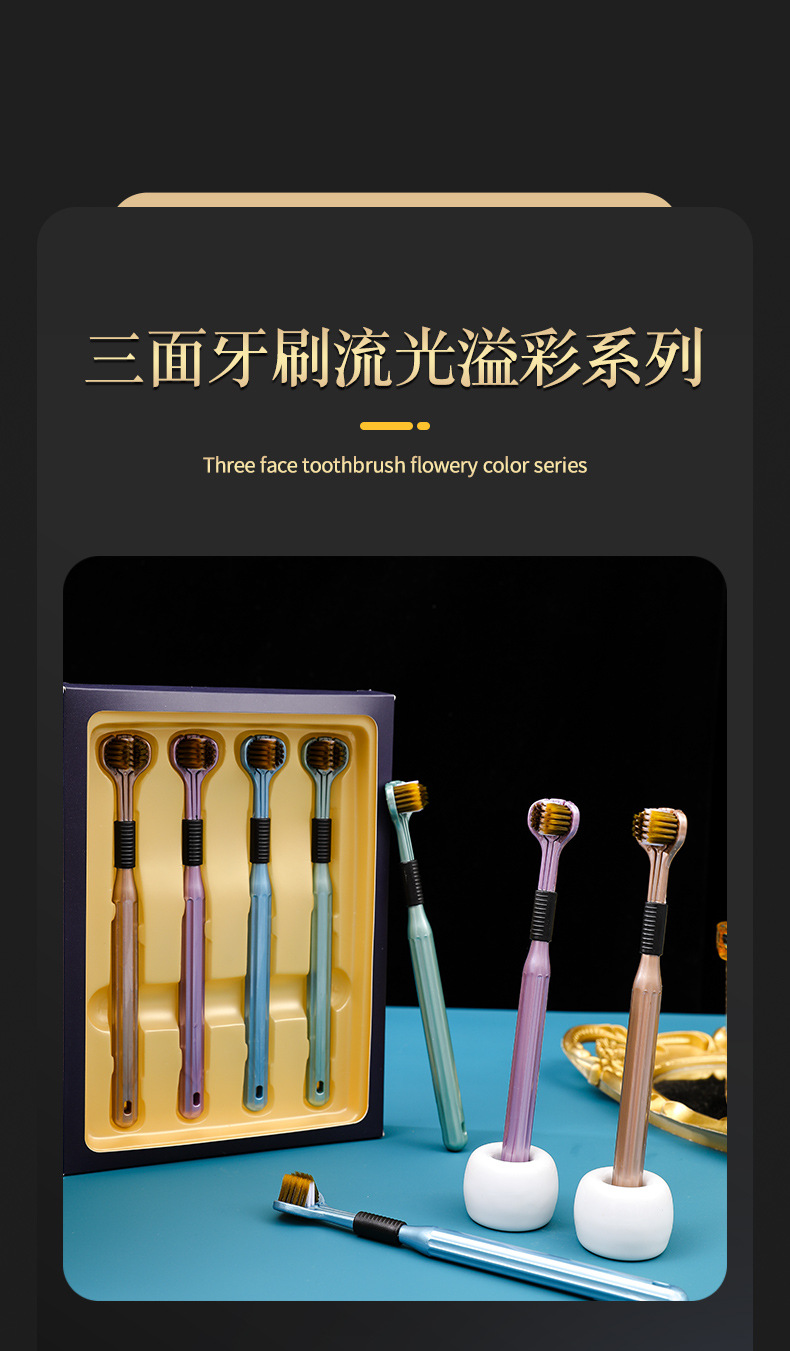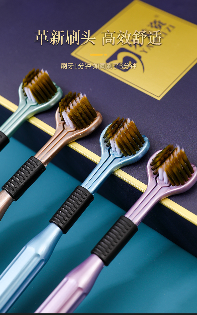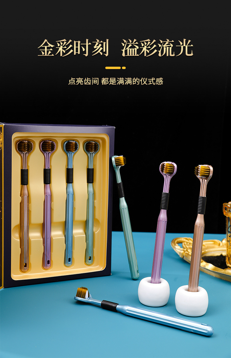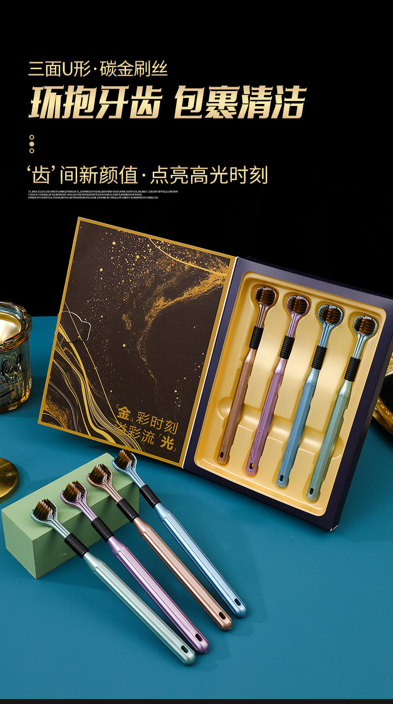【一次刷三面❗️立体呵护牙龈】三面牙刷成人家用清洁护龈,绵柔刷丝 3D立体 科学刷牙,高端礼盒装4支抖音爆款三面立体包裹式牙刷软毛刮舌苔成人家用