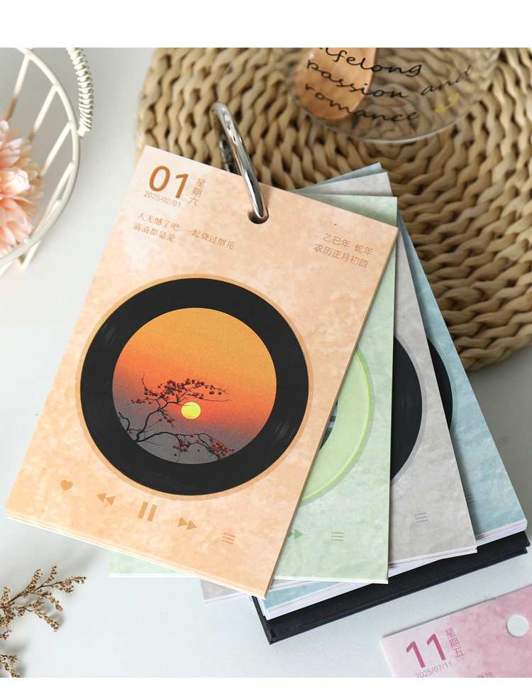 【唱片日历❗️与音乐相伴走过一年四季】带给你每天不一样的视觉新鲜感,加厚纸张 稳固三角底座,一天一页桌面摆件365张唱片歌词日历QQ直播引流品