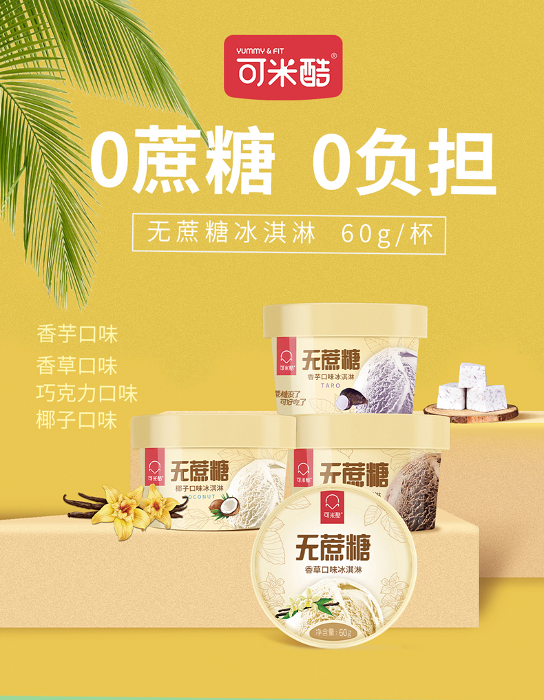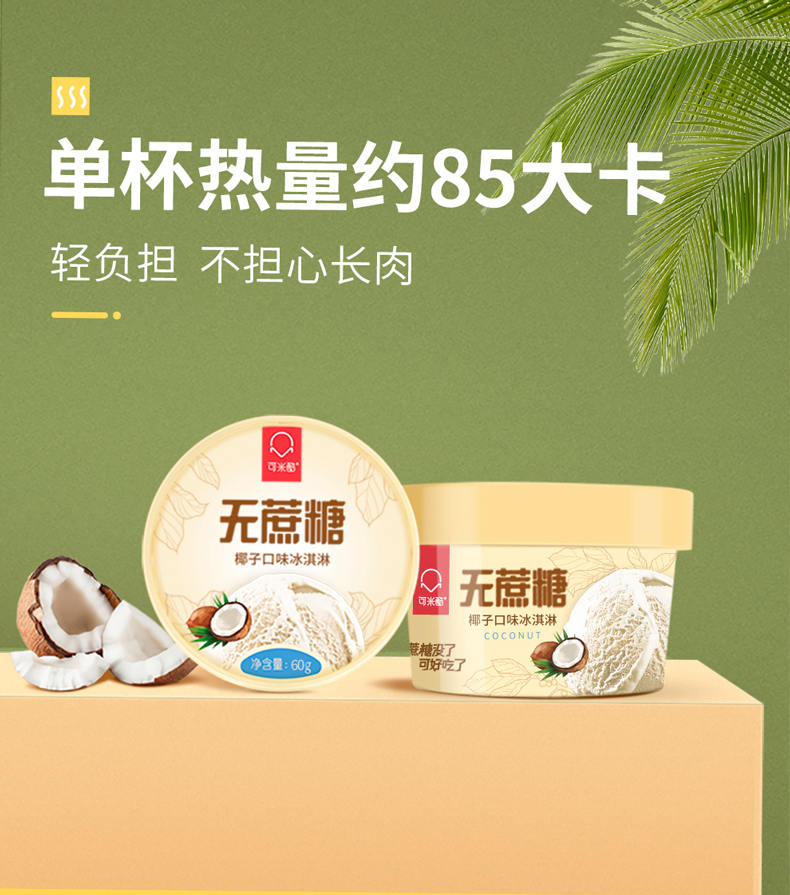 【90g经典杯12杯】可米酷(CAMIC) 0蔗糖冰淇淋12杯巧克味力椰子味无代可可脂冰激凌90g*12杯装