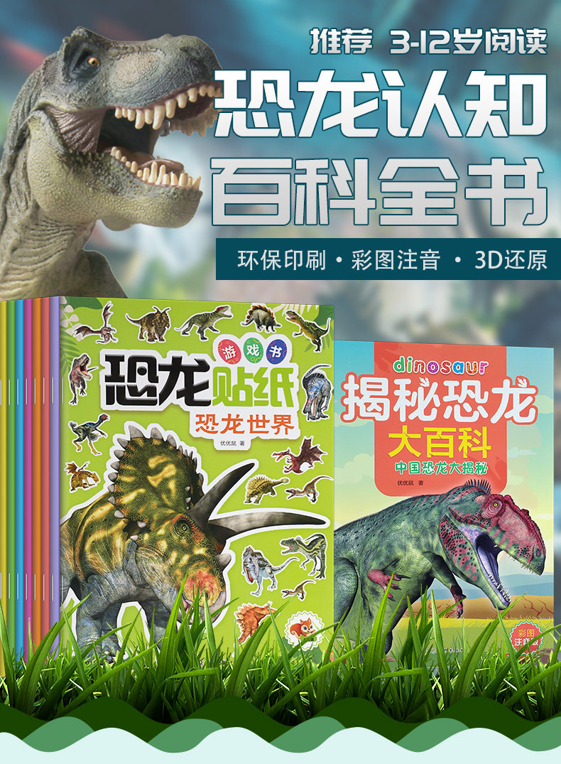 全套18本 揭秘恐龙大百科 恐龙贴纸 儿童左右脑益智力开发趣恐龙贴纸3-6-7-8岁儿童读物故事书恐龙王国星球帝国书籍动物科普小学生