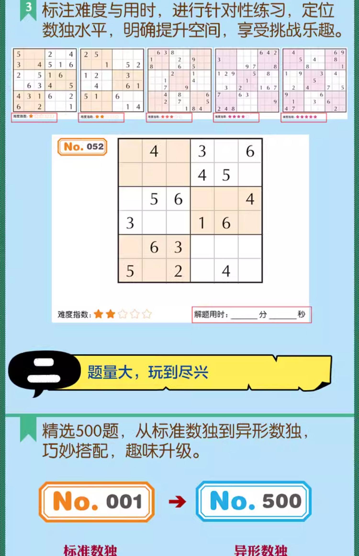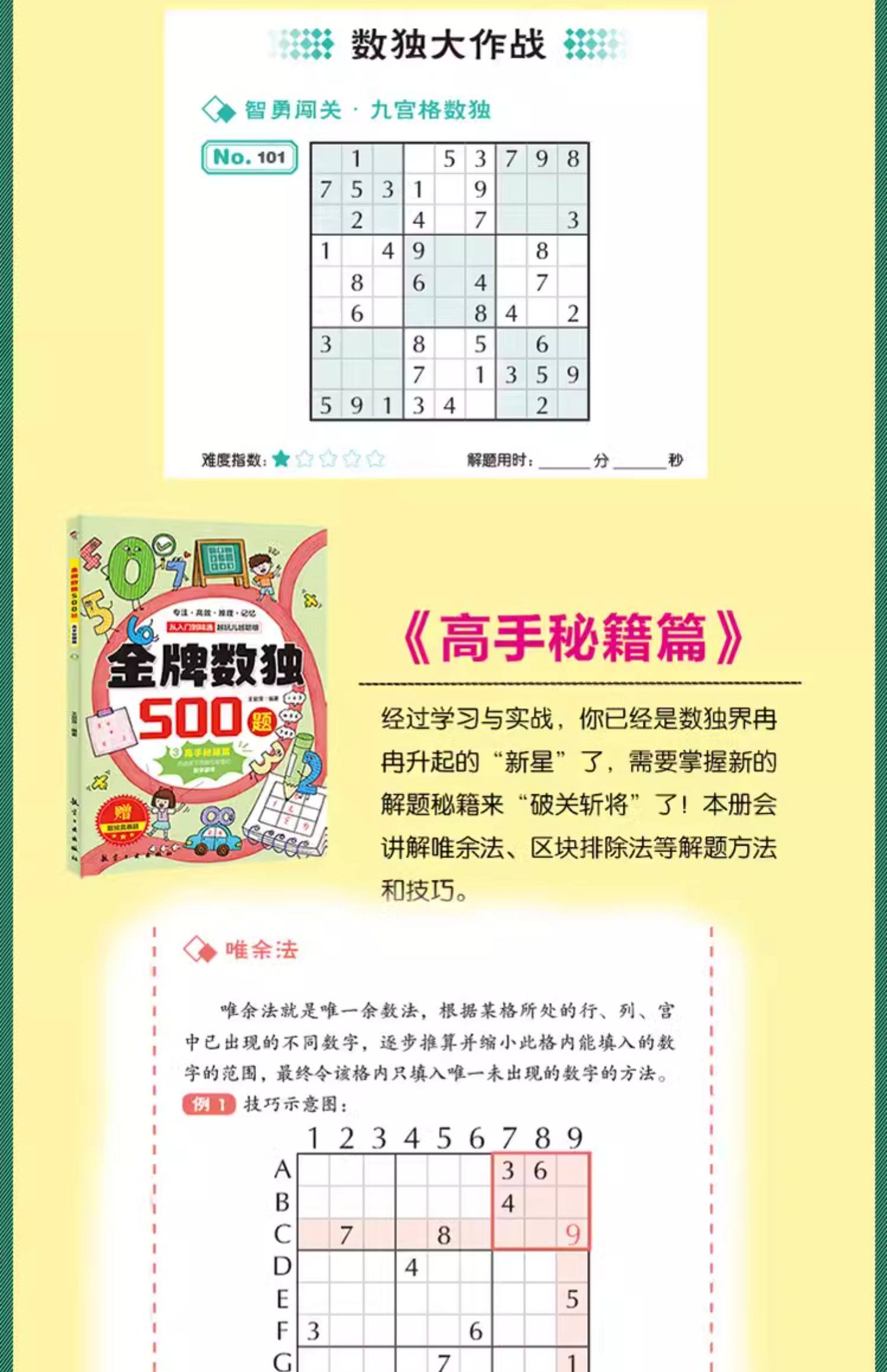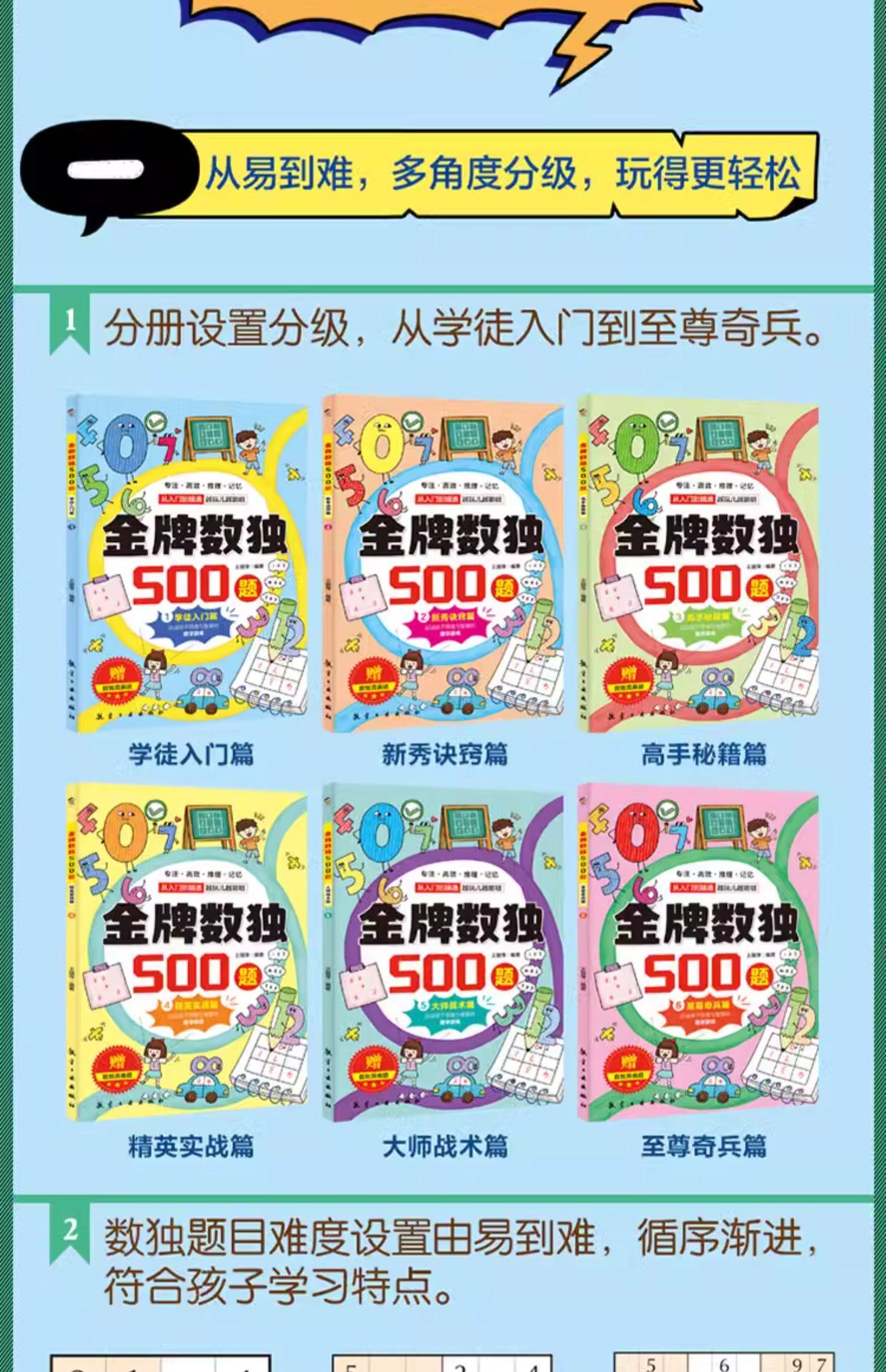 金牌数独500题全套6册JST学徒入门篇新秀诀窍篇高手秘籍篇精英实战篇大师战术篇至尊奇兵篇从入门到精通玩出聪明脑的数字思维游戏