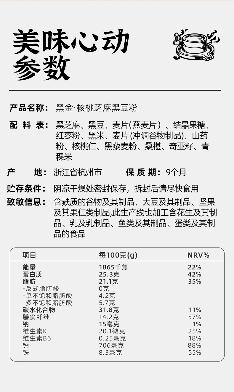 【新鲜日期】老金磨方黑芝麻糊核桃芝麻黑豆粉代餐芝麻粉养发营养早餐