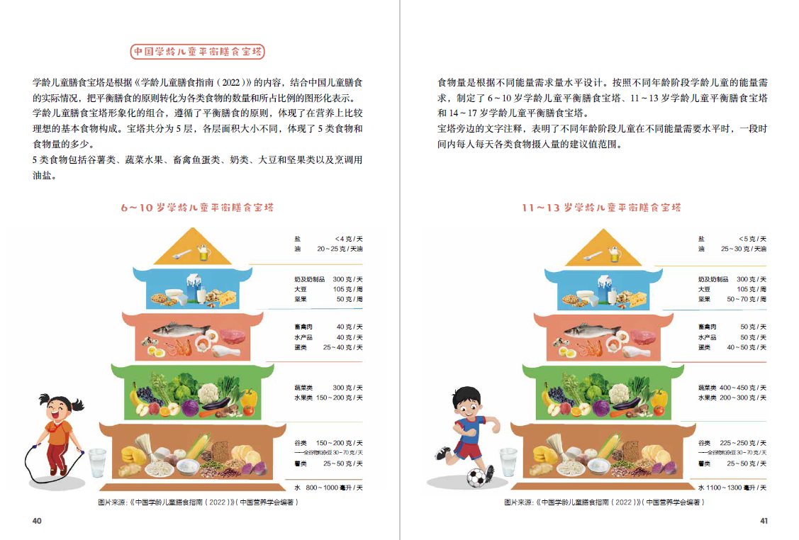 5. 注重营养搭配,收录中国营养学会2022年发布的学龄儿童平衡膳食宝塔、平衡膳食餐盘和平衡膳食算盘,给予孩子科学的饮食营养指导。