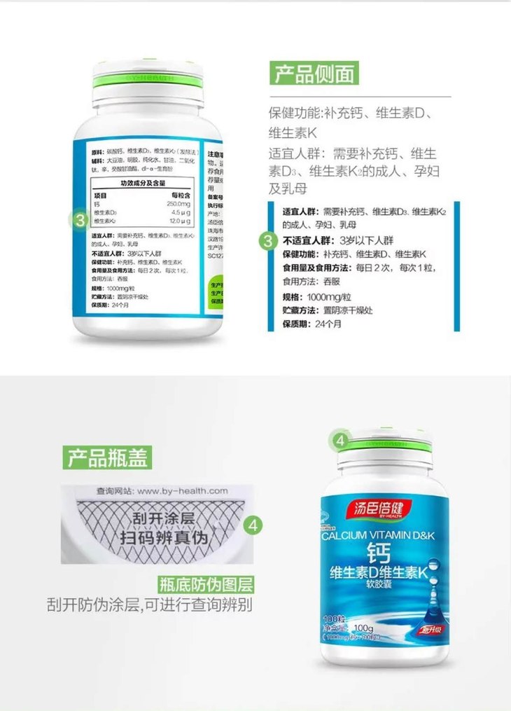 汤臣倍健®钙维生素D维生素K软胶囊 120粒 液体钙新升级